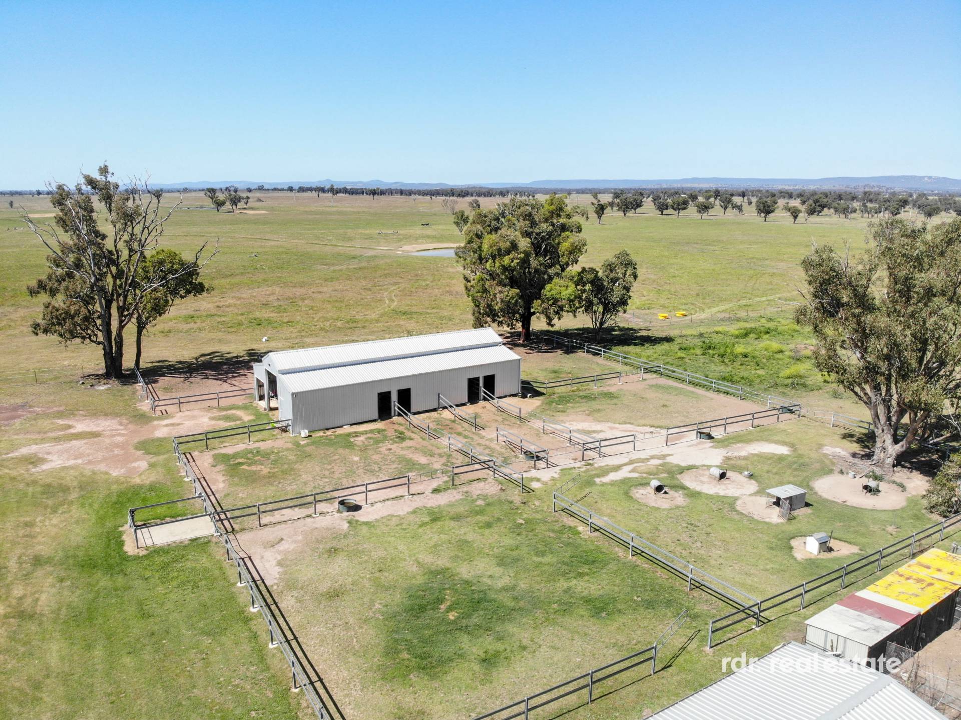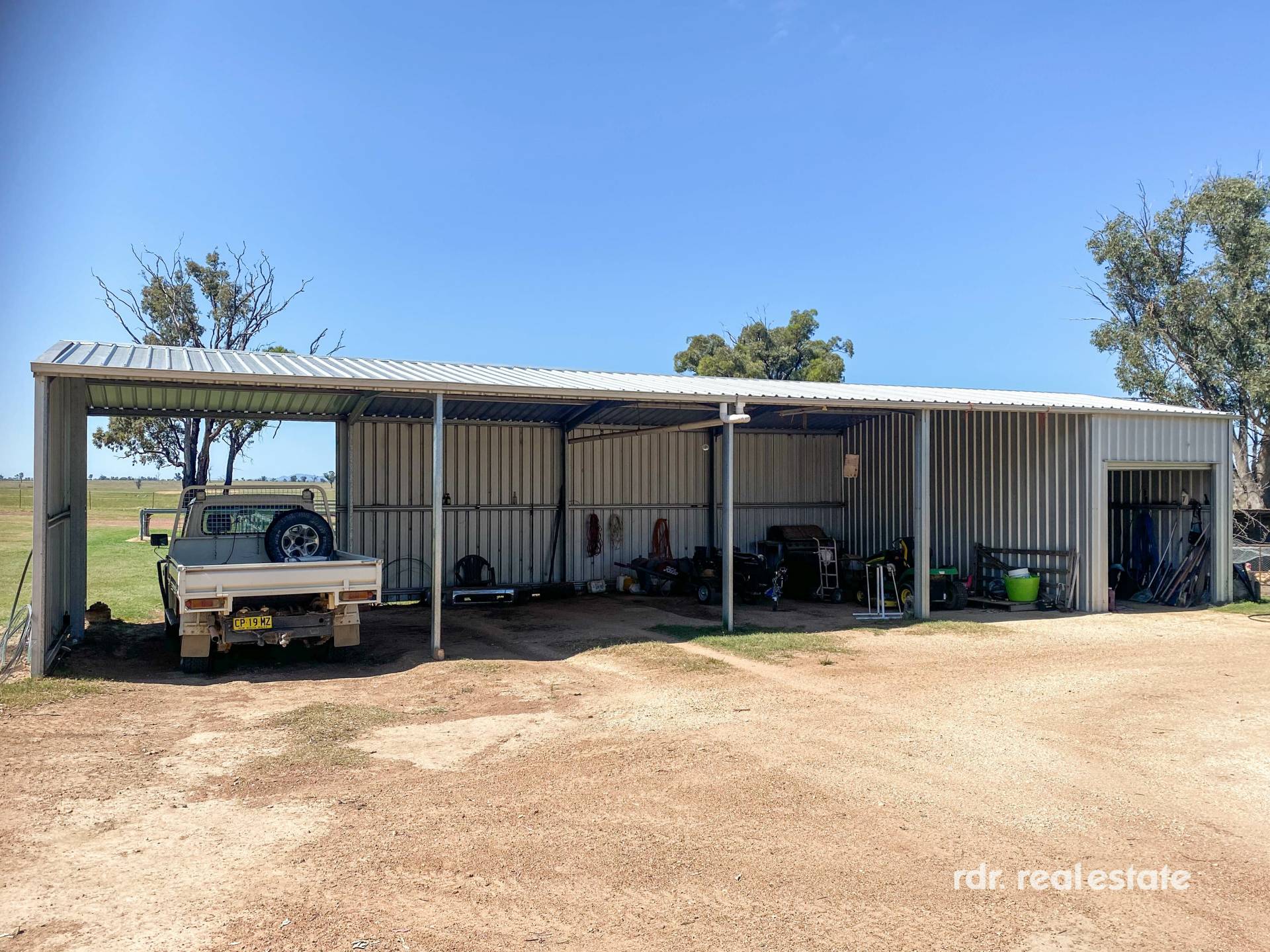 MACHINERY SHED:  12m x 8m lock-up Colourbond shed. 19m x 7m (5 bay) steel shed with lock-up workshop.