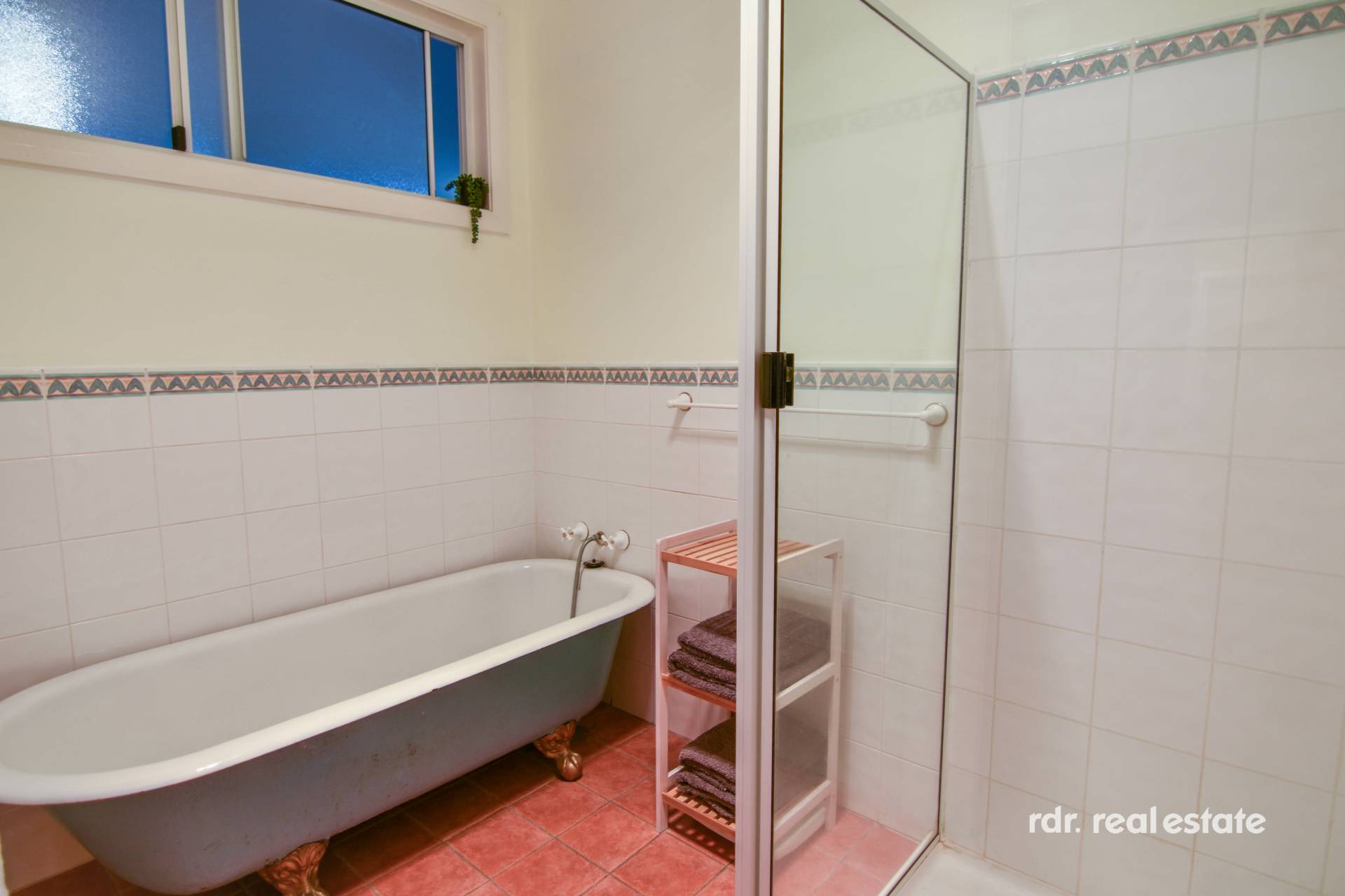 The bathroom contains a claw foot bathtub and shower, a separate toilet and vanity. Second shower and toilet are located in your laundry.