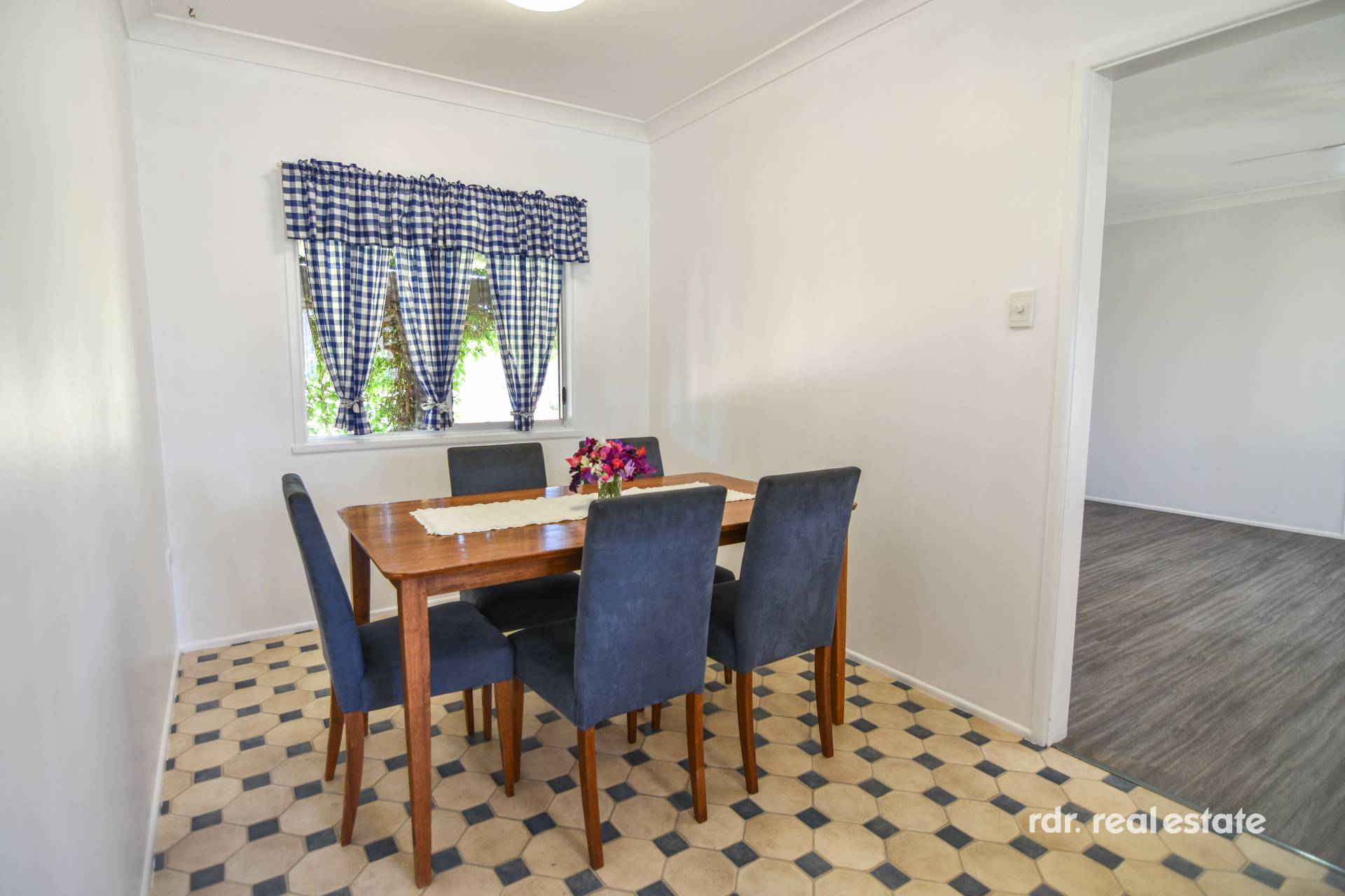 Continue to your right and you’ll find the combined kitchen and dining area. The country-style kitchen has floor and overhead timber cabinetry providing storage, as well as plenty of preparation space.
