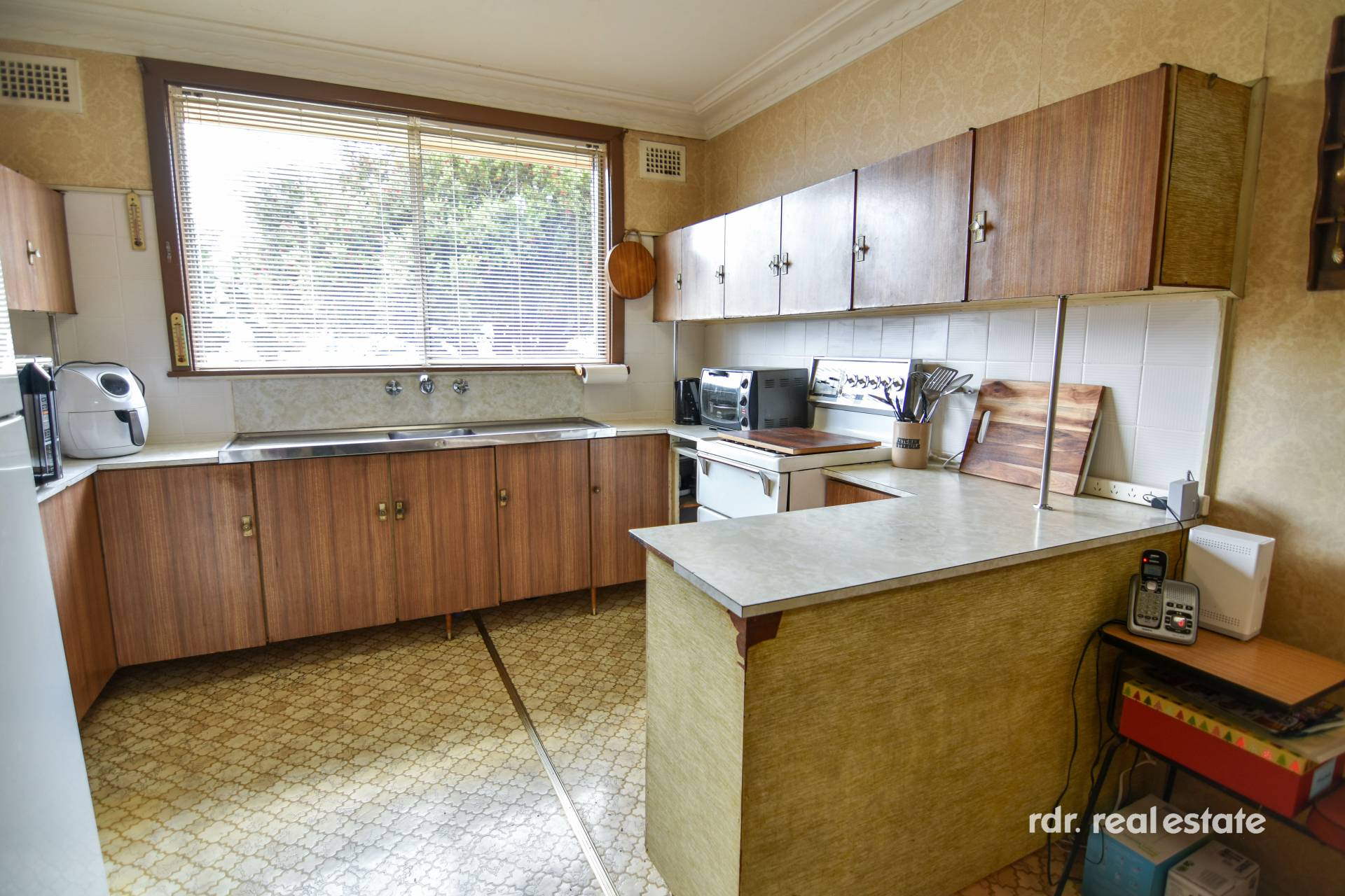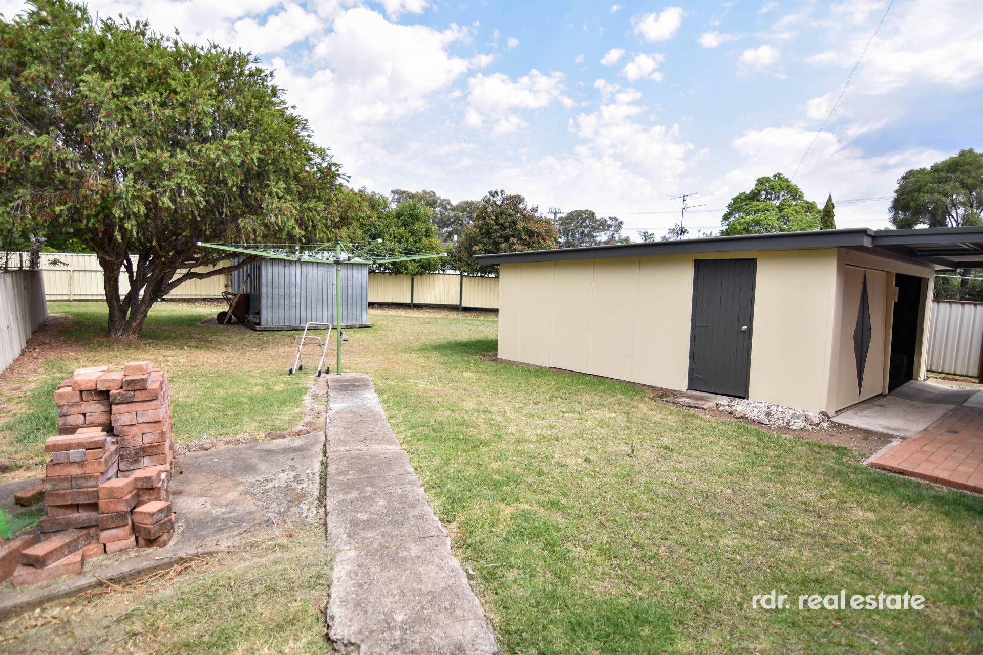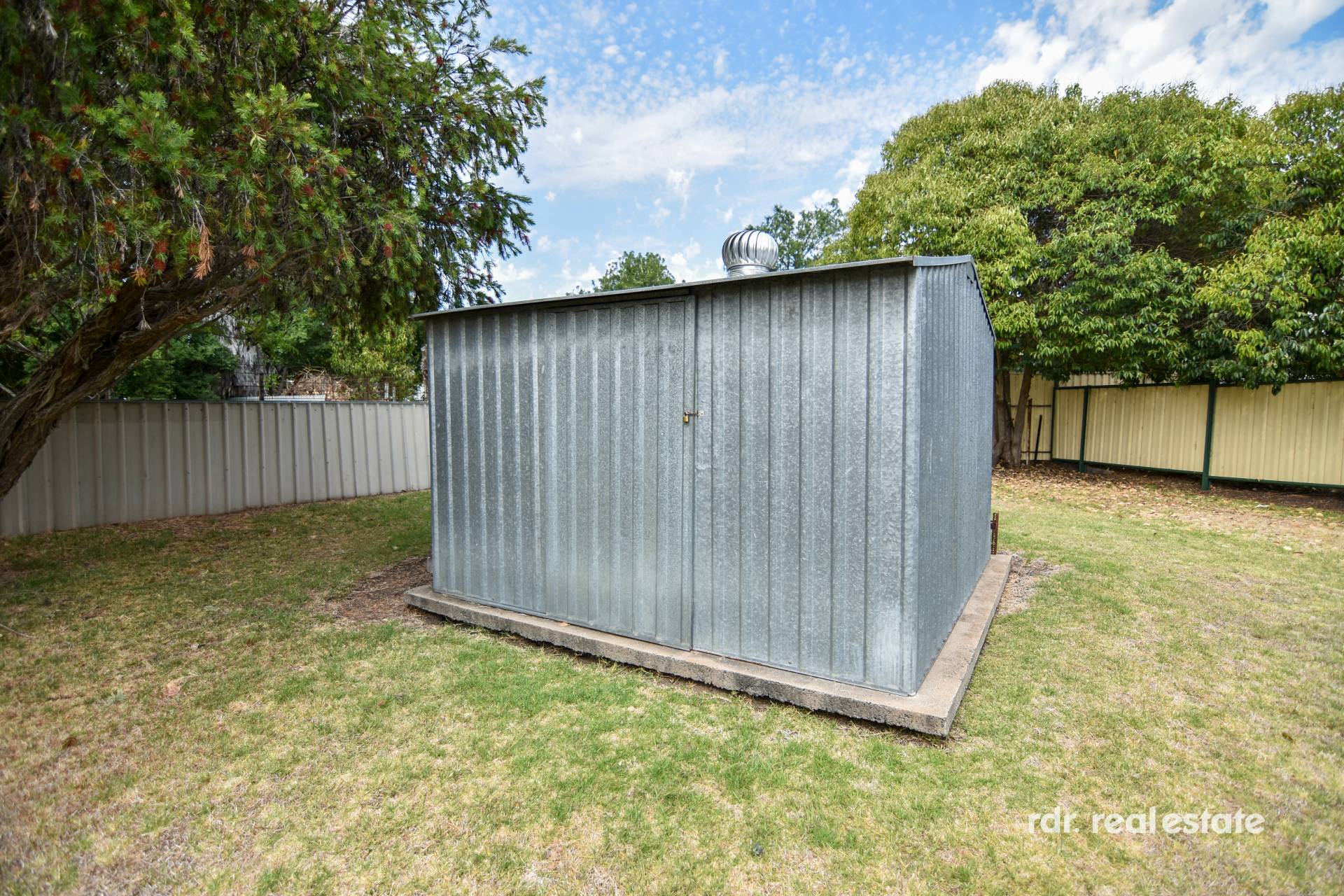The powered double garage with skillion sits at the end of the concrete driveway. Should you need storage for your garden tools and mower, there is also a garden shed on a concrete slab in the back yard.