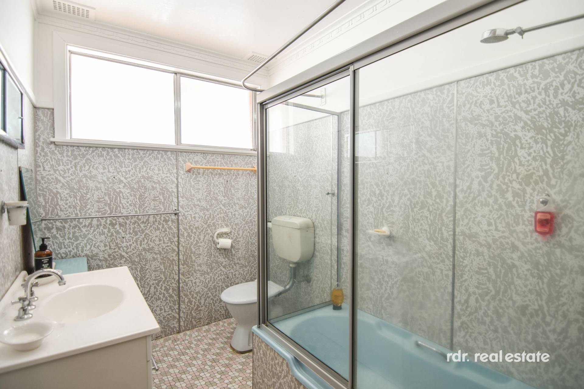 A shared bathroom is an untouched memento of the pasts love affair with colour, and comprises of a shower over a pale blue bathtub, vanity and toilet. The strategically located laundry offers direct access to the backyard, adding to the home's overall practicality.