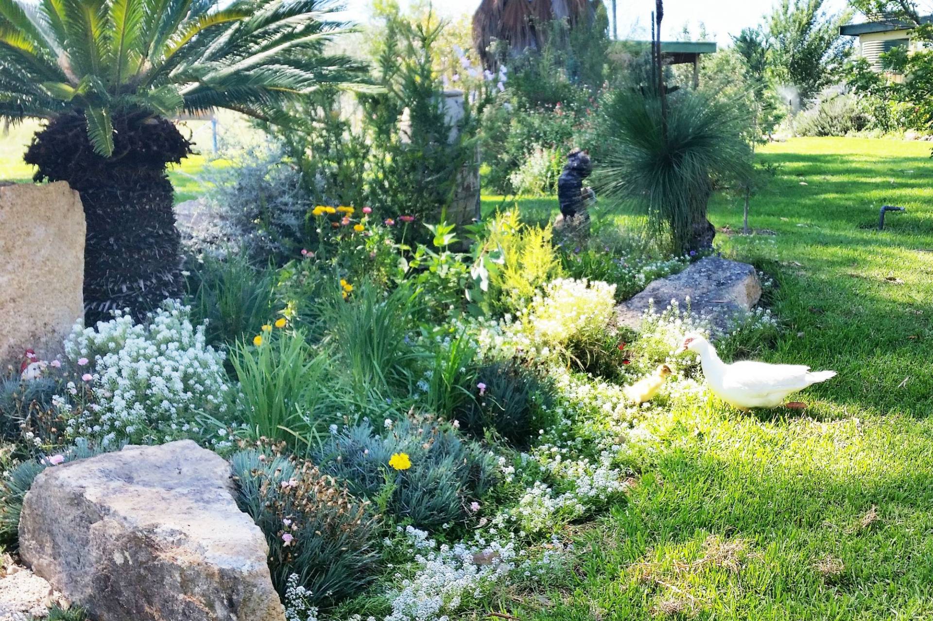 Large gum trees, established gardens, olive grove operated as an additional source of income.