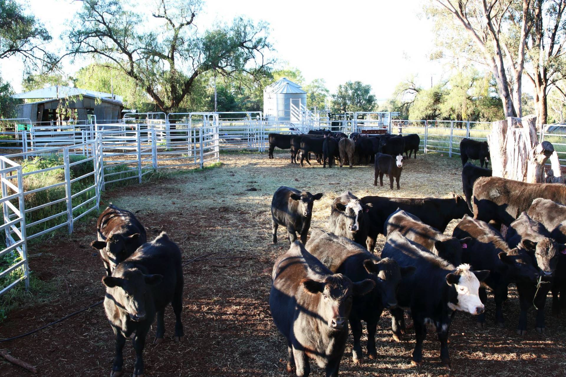 CATTLE YARDS: Wean design steel panel, CIA crush, loading ramp, 8 panel round yard. 200 head cattle capacity.