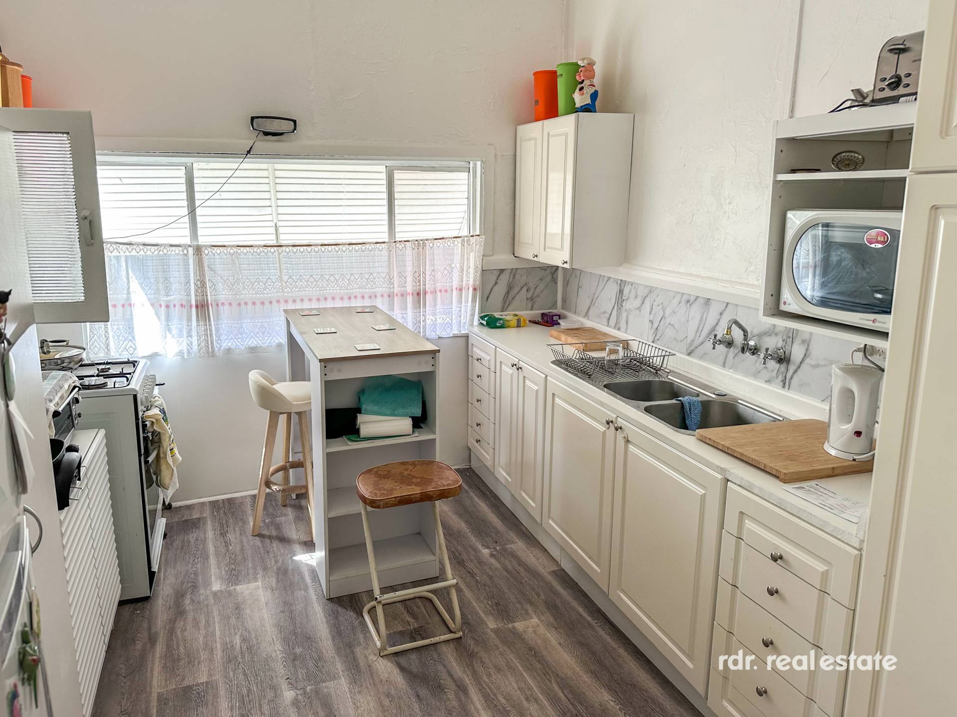 Country-style weatherboard home is partially renovated and comprises of 3 bedrooms, high ceilings typical of a country cottage, kitchen, 2 living rooms, dining area, bathroom with claw-foot bath and vanity, and laundry with shower and toilet. Solar hot water.