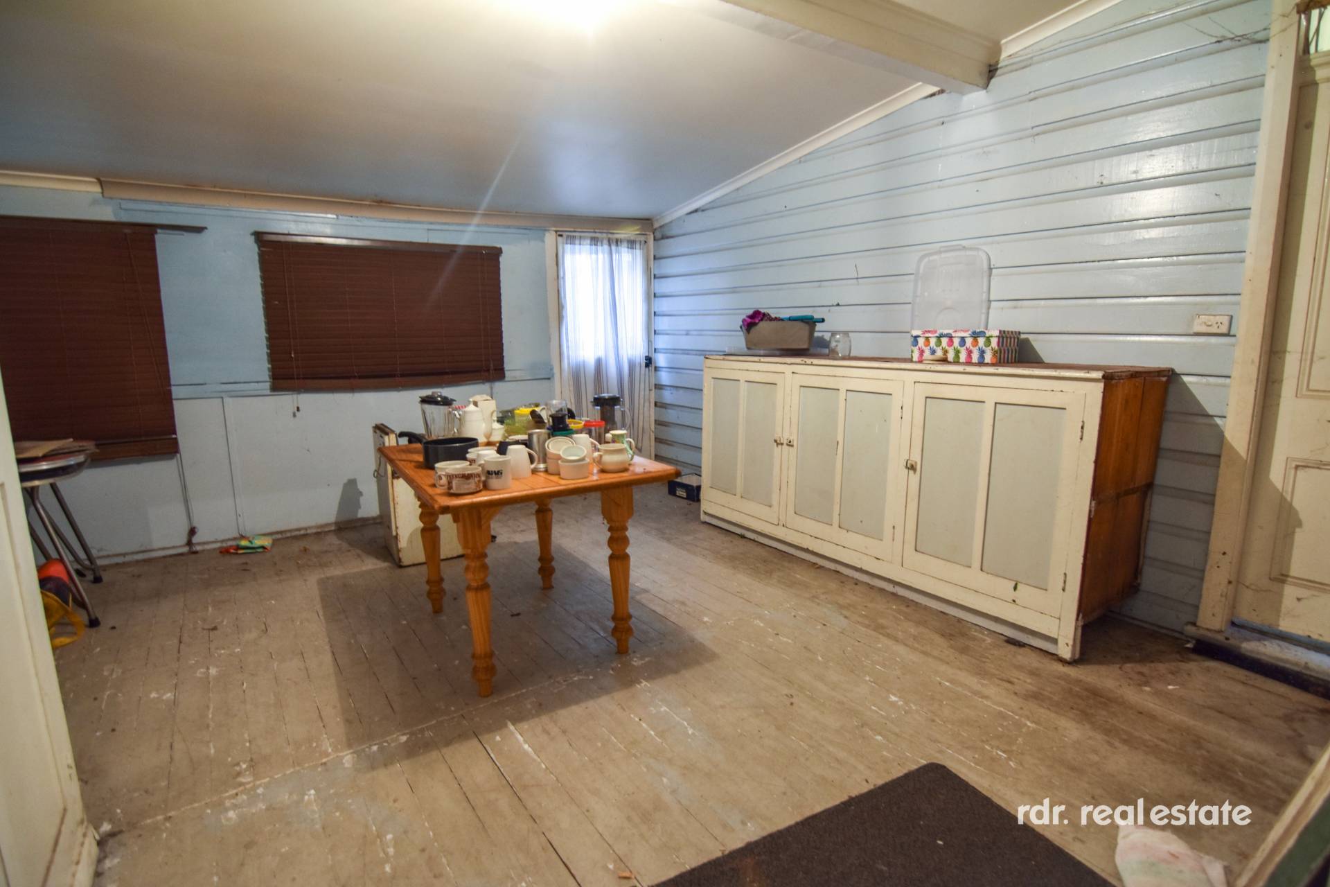 This old weatherboard home includes 2 bedrooms, 1 bathroom, lounge room with wood heater, kitchen, dining, laundry, and wraparound bullnose verandah. Large shed at the rear of the block completes this property.
