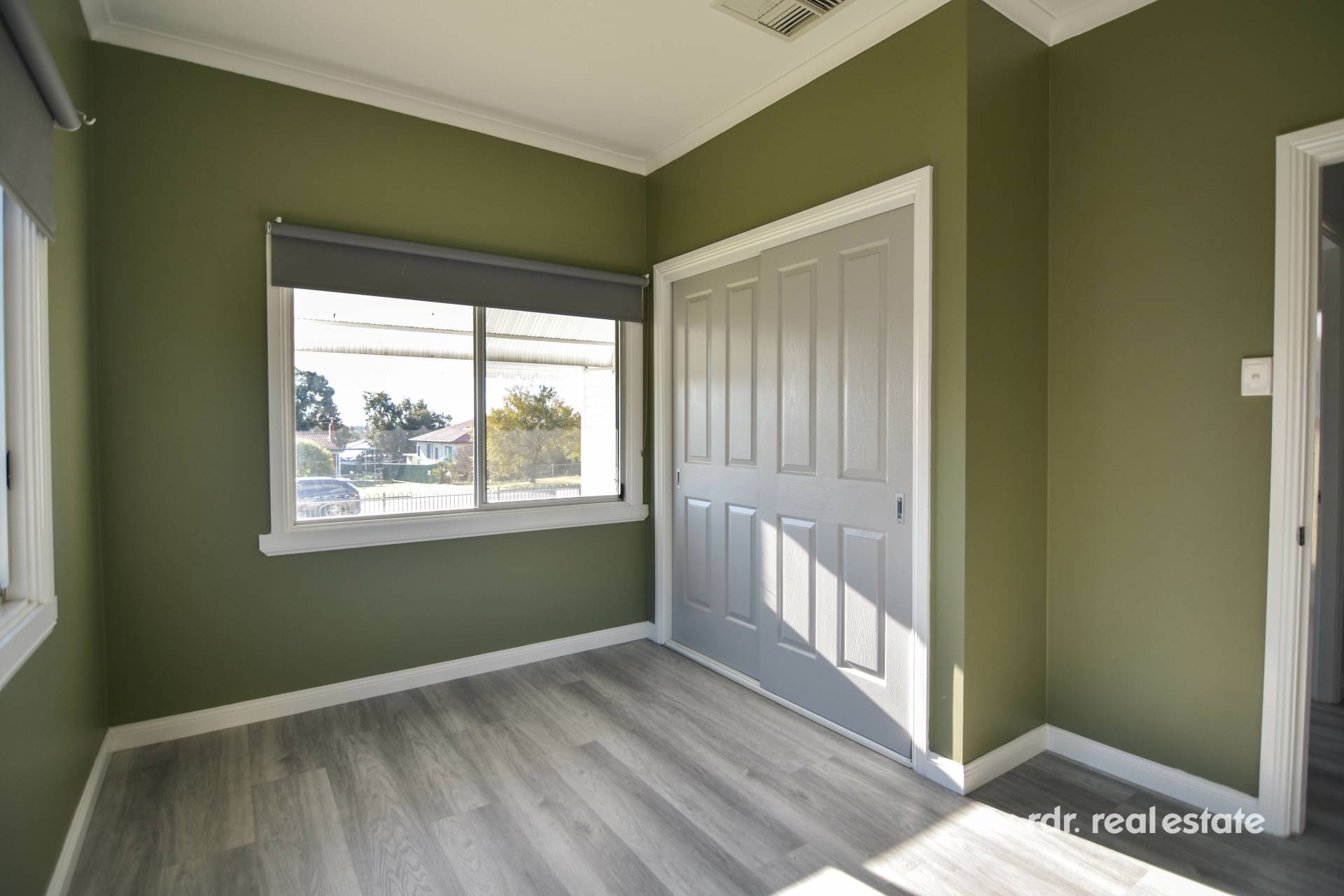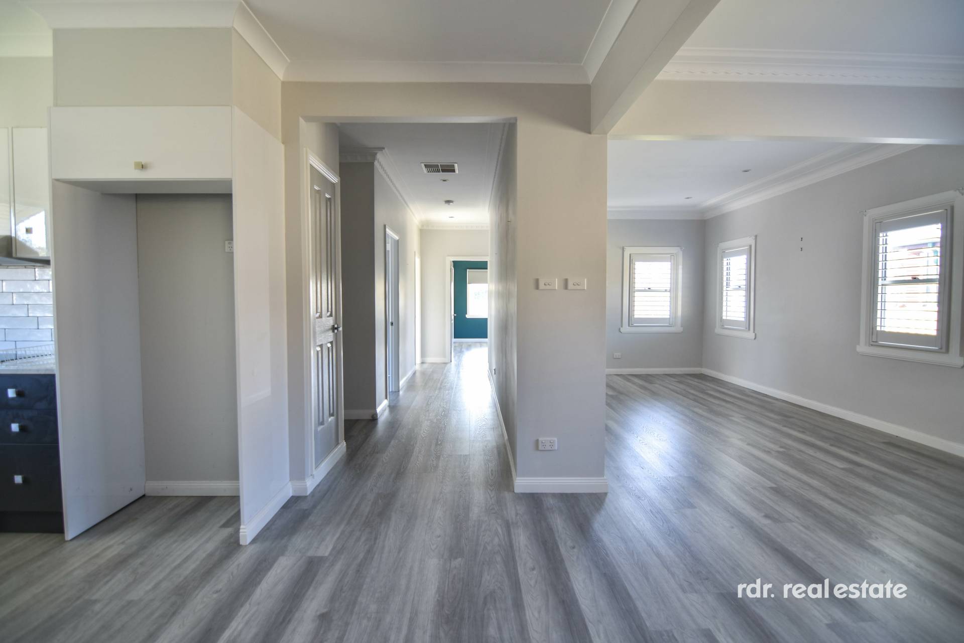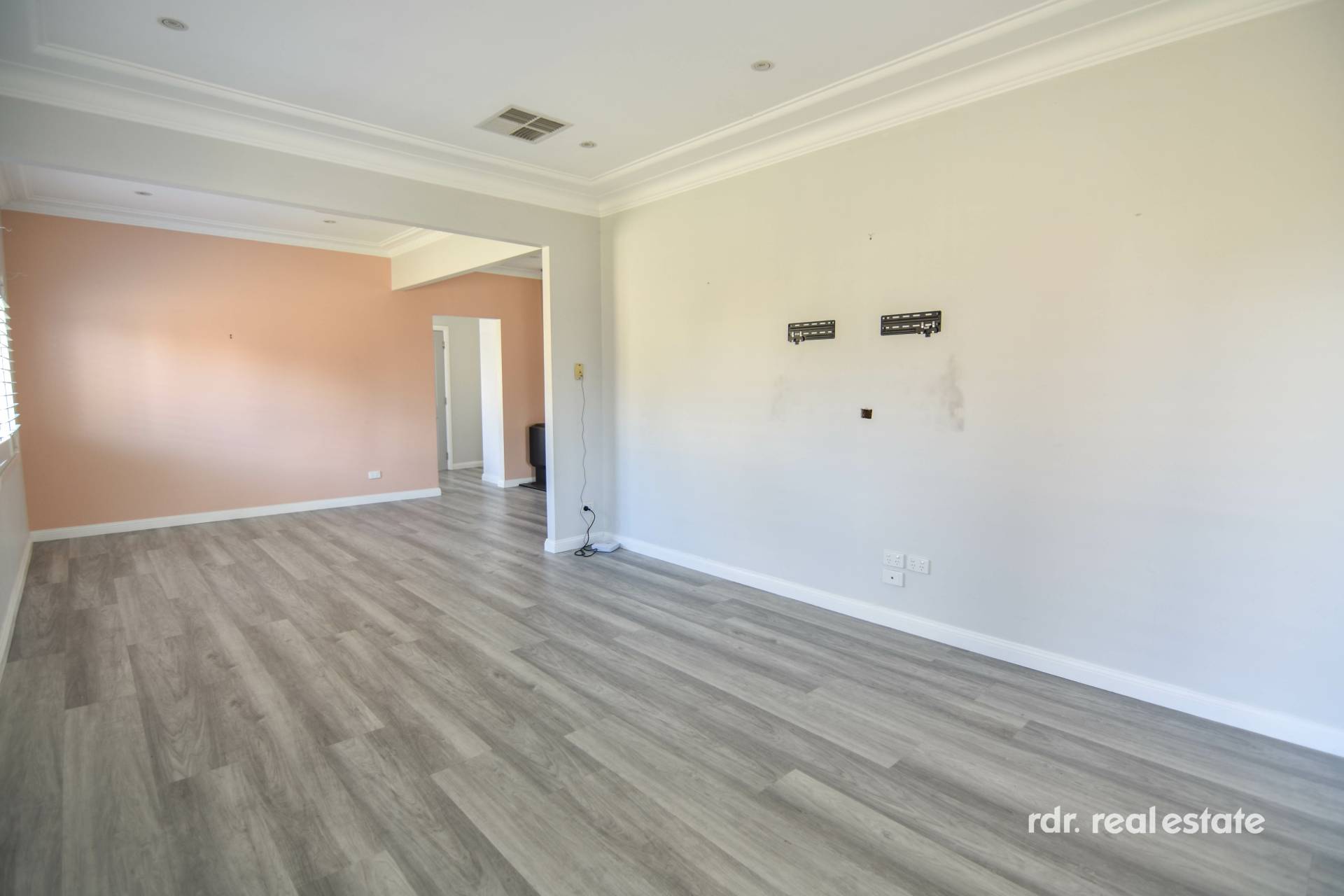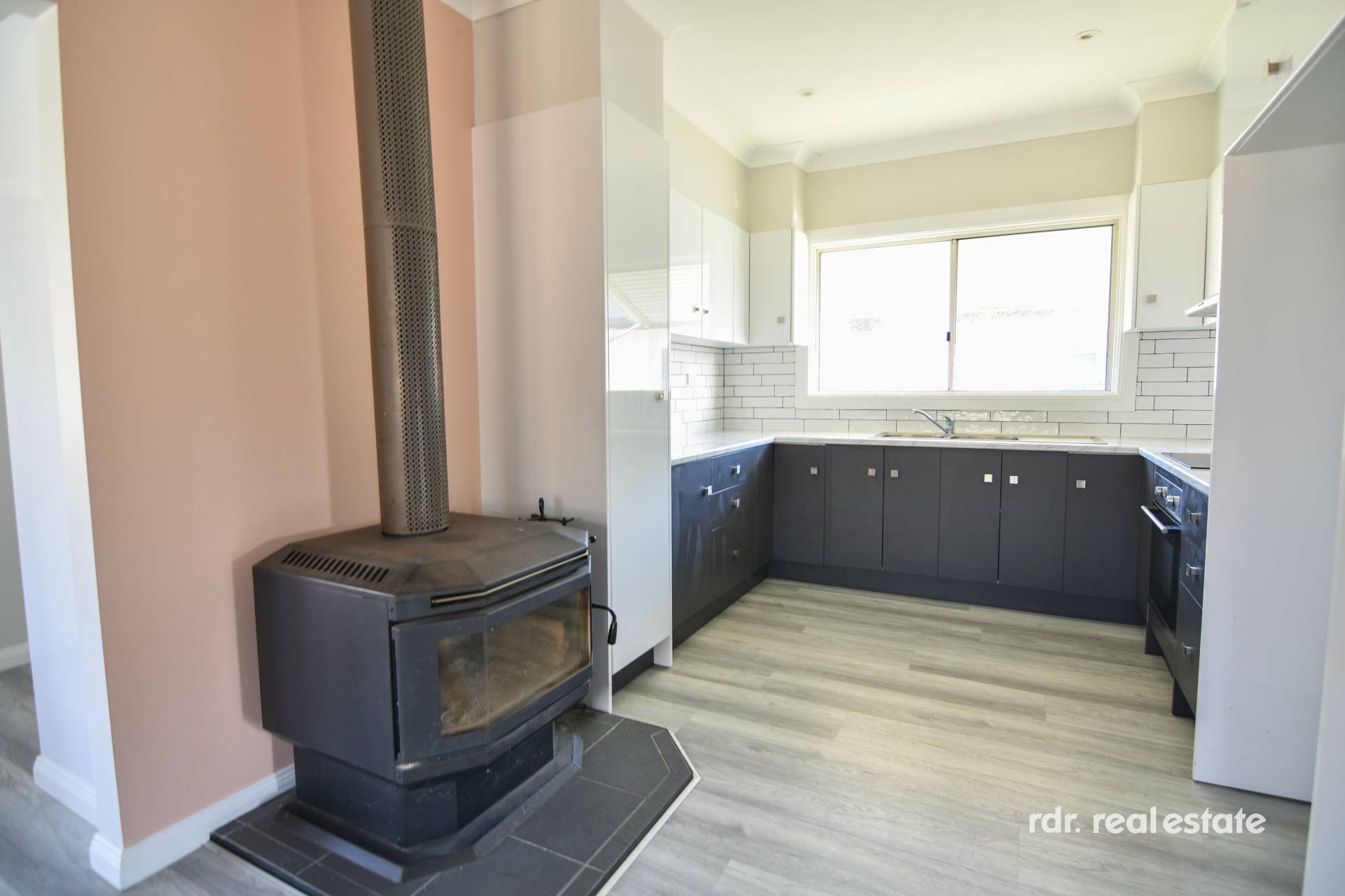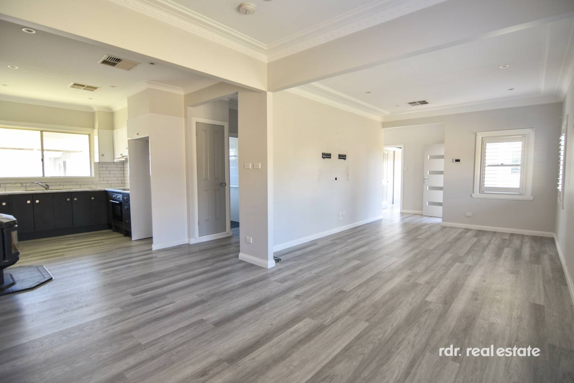 Open plan living area is the heart of the home, seamlessly integrating with the kitchen and dining areas. Stay comfortable year round with the wood heater and evaporative cooling, and enjoy the practicality of vinyl planks flooring throughout. Plantation shutters in the living room allow natural light to filter in.