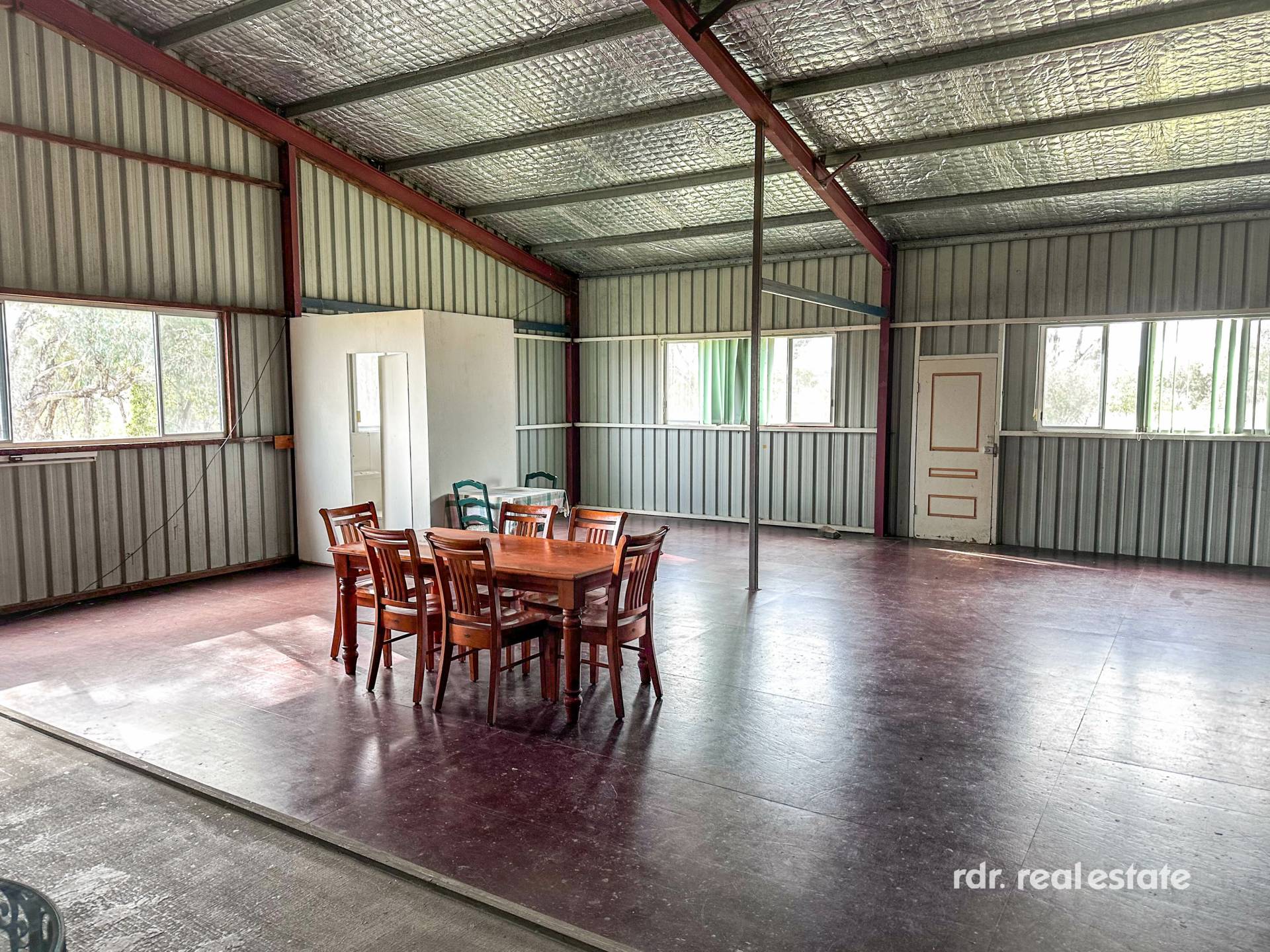 The large 19m x 15m shed has power, a raised floor, toilet and an attached 19m x 9m skillion.