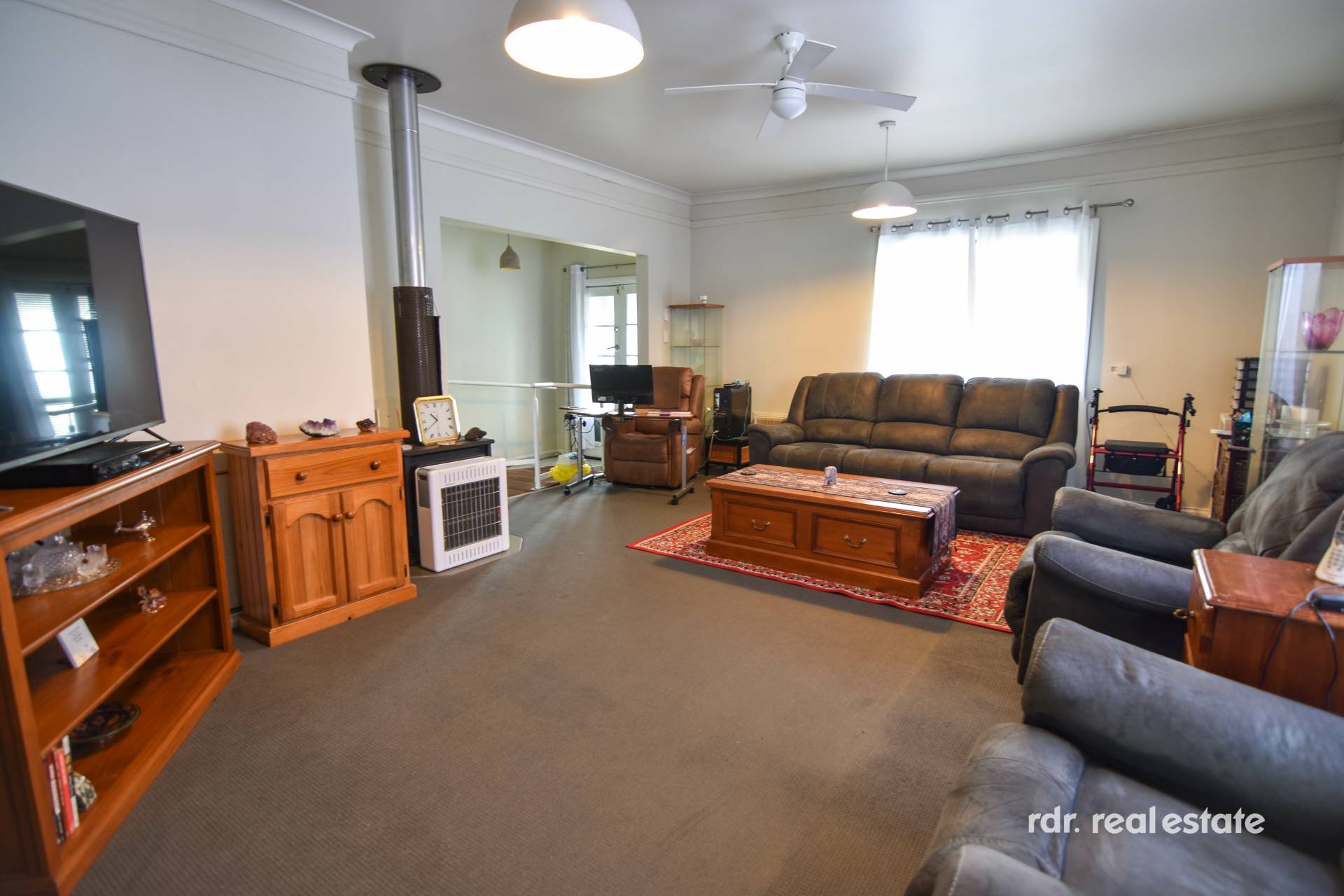 Multiple living areas ensure there is somewhere for each member of the family to relax. The front lounge room is perfect for sitting by the warmth of the wood heater and catching up on your favourite shows. Second living room offers plenty of space to settle in and spread out, and has a built-in desk for a home office area, craft space or homework zone.
