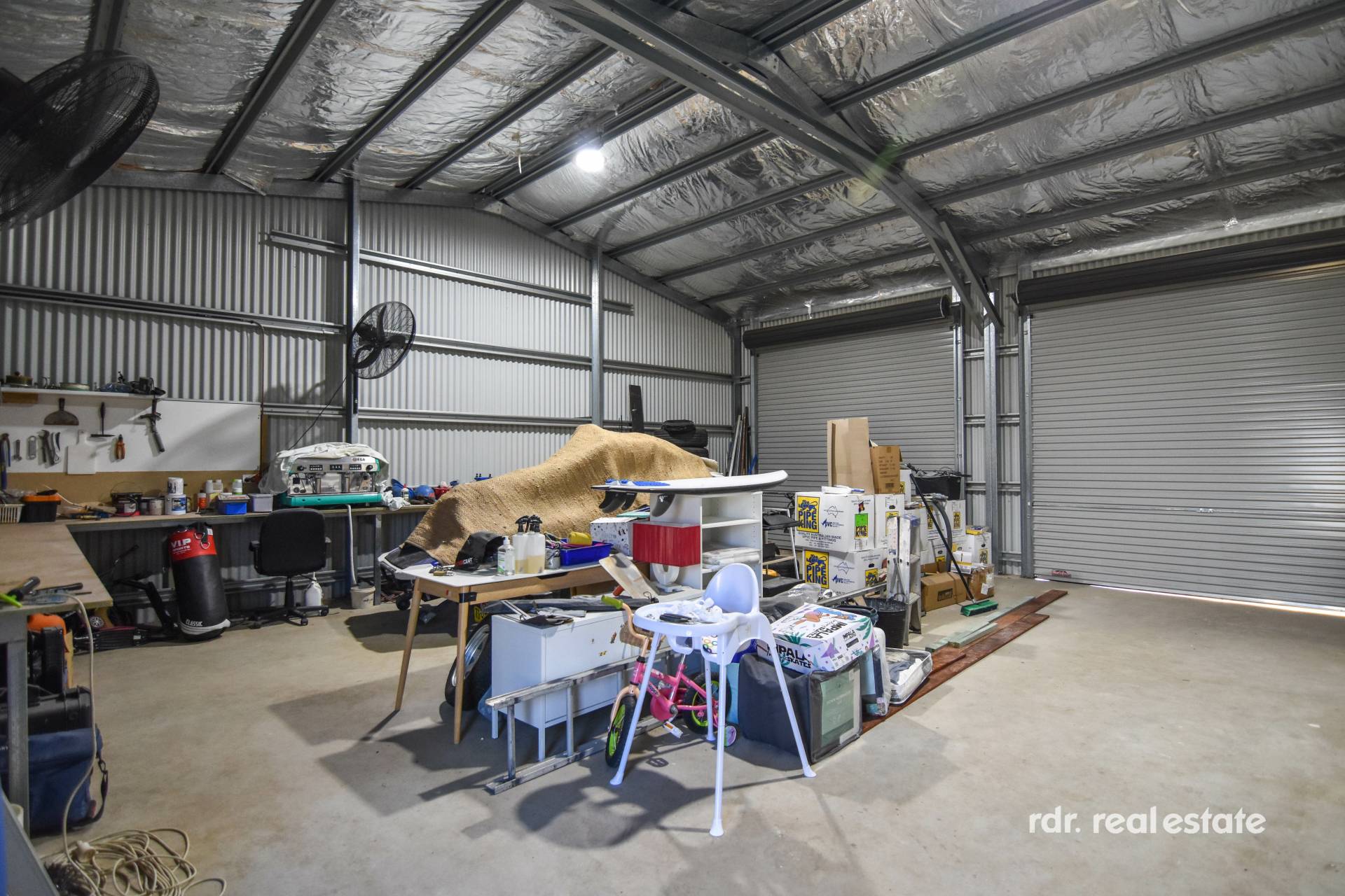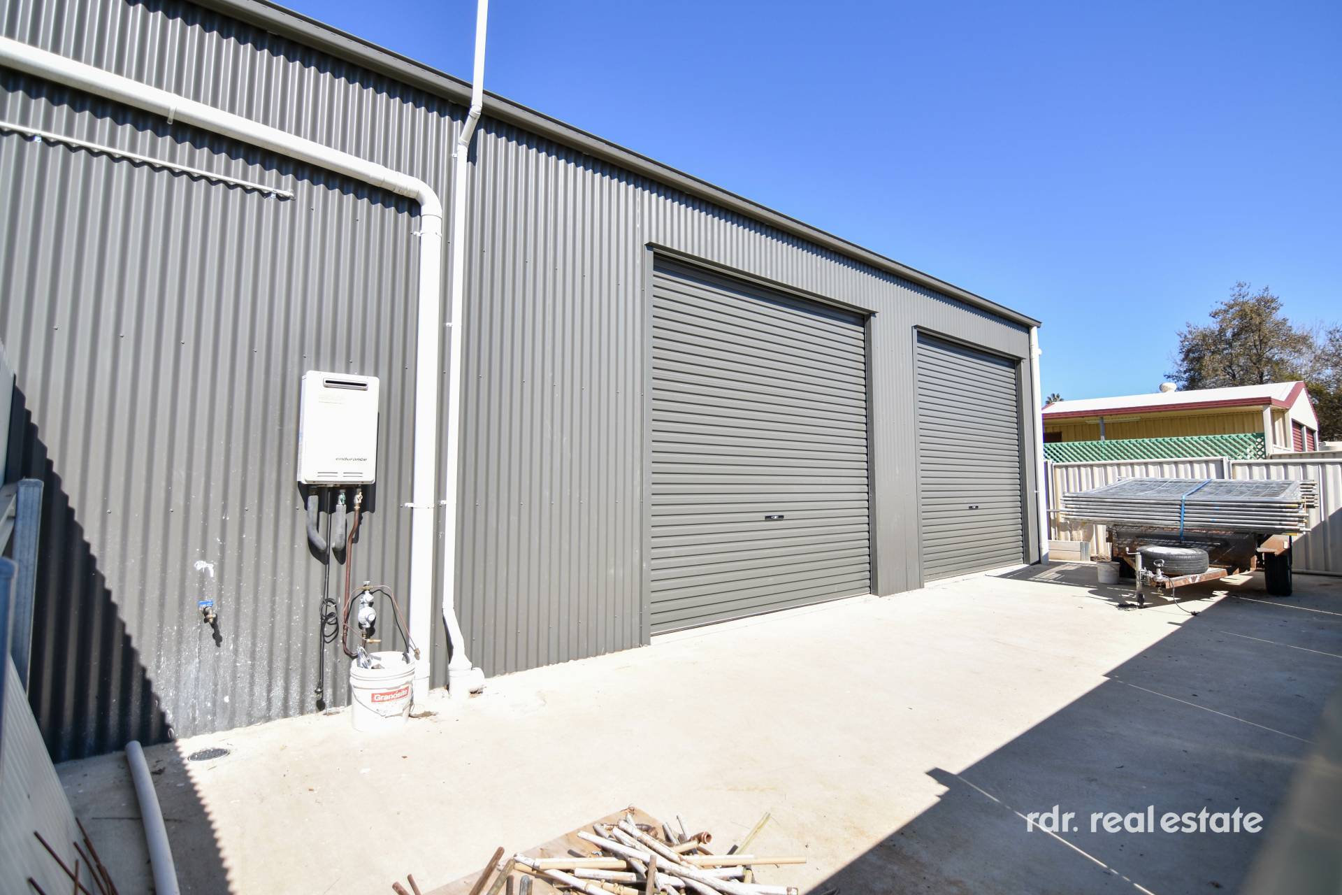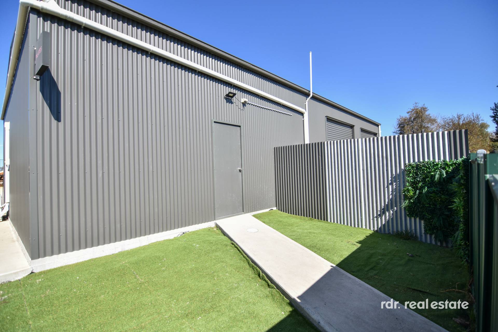 • Powered Colourbond shed (approx. 16m x 9m x 3.1m) with concrete flooring, 2 high clearance roller doors, 2nd bathroom, air conditioning, mezzanine floor storage, work benches and rear lane access.
