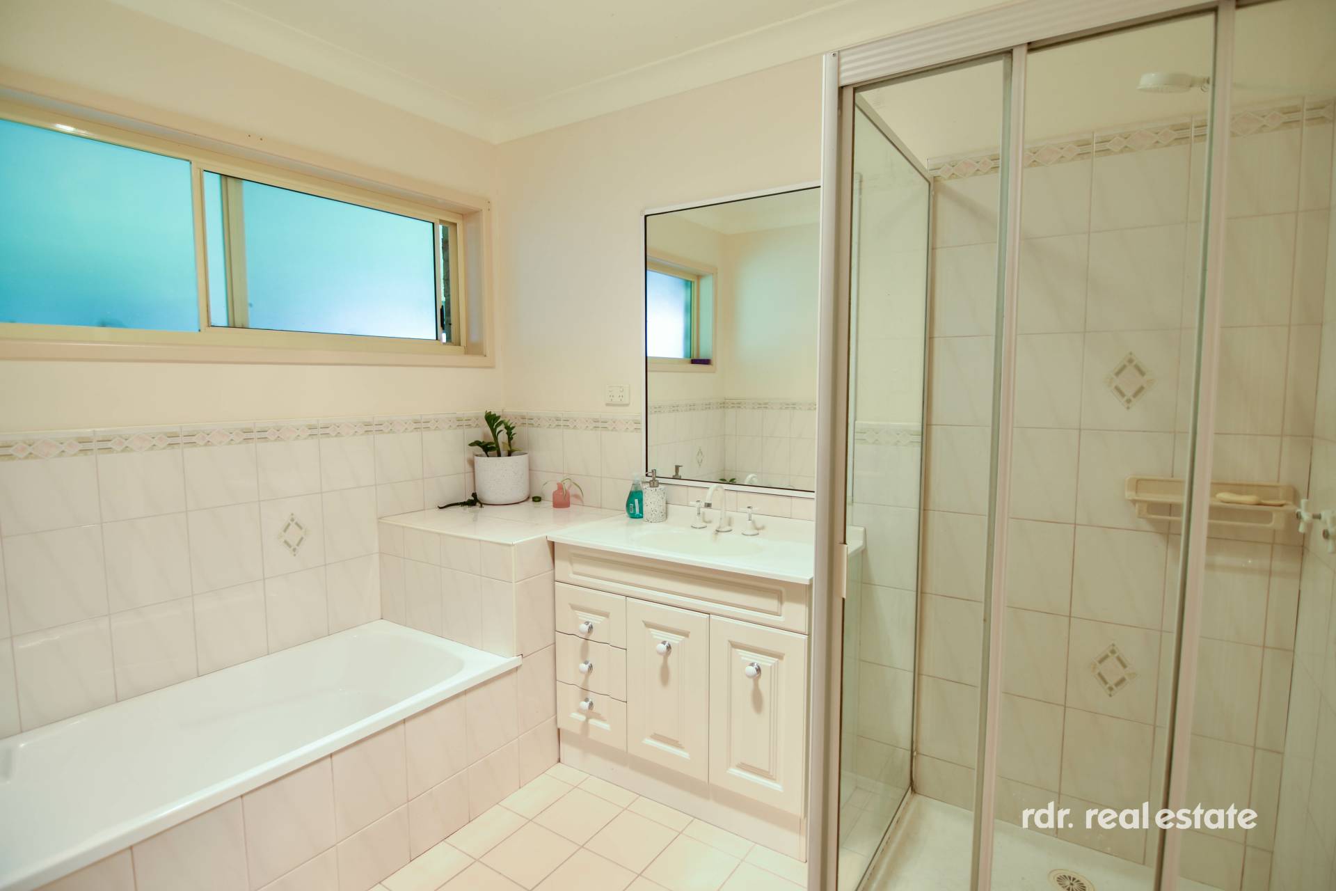 The 3 bedrooms are all a generous size, including built-in wardrobes and ceiling fans, while the main bedroom includes an ensuite and walk-in wardrobe. The main bathroom is designed for family living and relaxation, with a shower, bathtub, vanity and separate toilet.