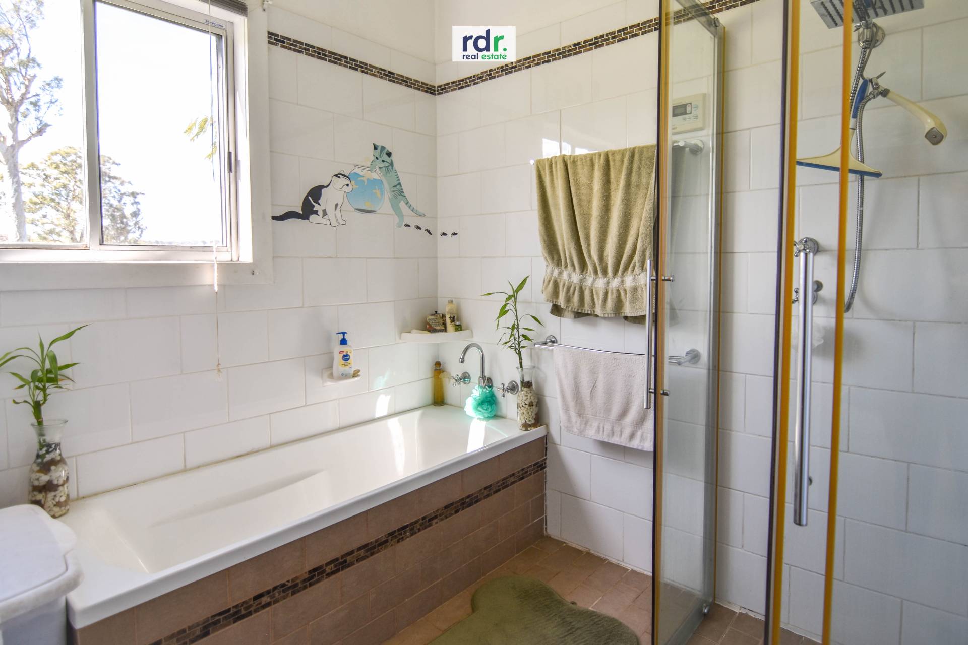 Three-way bathroom contains gas hot water, shower, bathtub, separate timber vanity/powder room and a separate toilet.