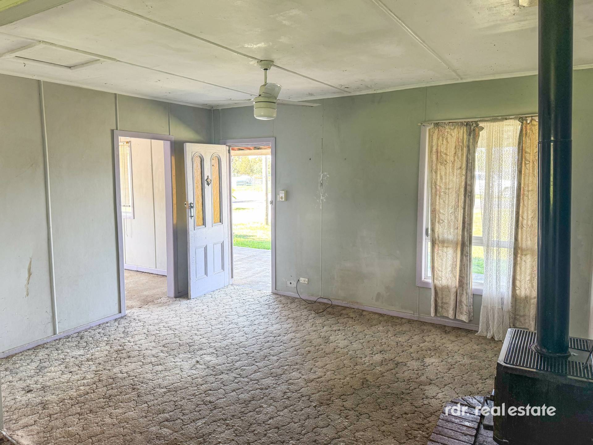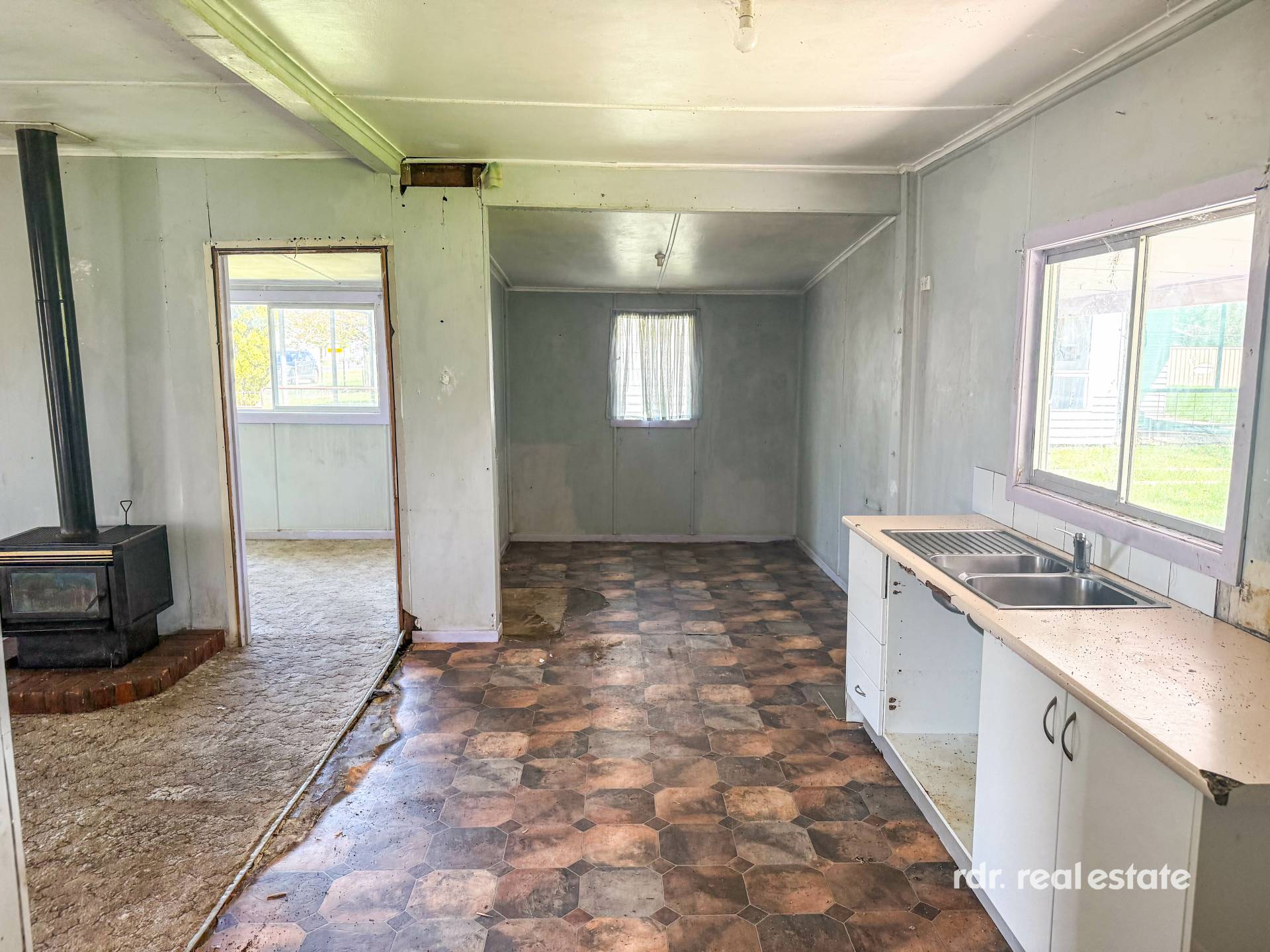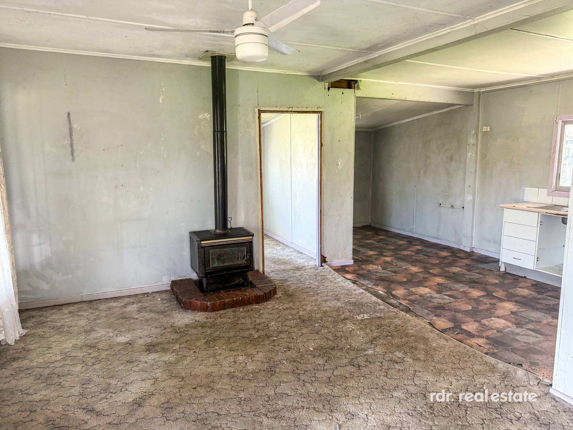 The existing weatherboard cottage comprises of lounge room with ceiling fan and wood heater, kitchen and dining area, 3 bedrooms, and a bathroom/laundry.