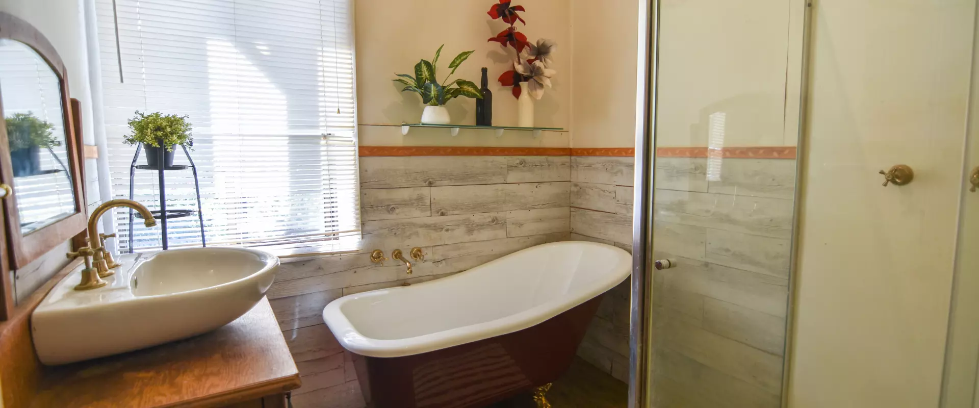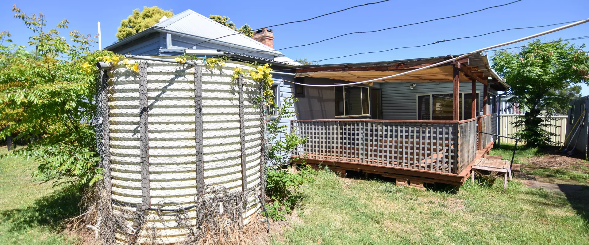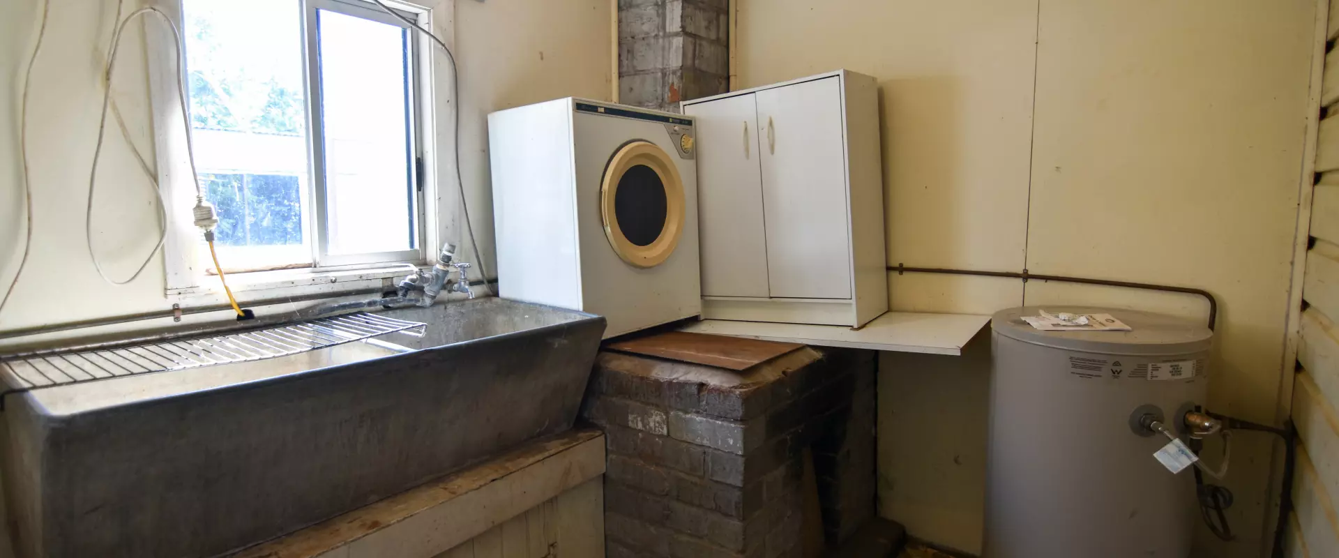 The claw-foot bathtub is a feature of the bathroom, and is complemented by gold tapware, a timber and ceramic vanity, and a glass shower. A separate toilet with basin and a laundry with traditional double concrete trough complete the internal layout.
