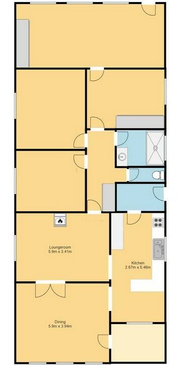 Lounge with Wood Fire Heater, timber folding double doors & ceiling fans