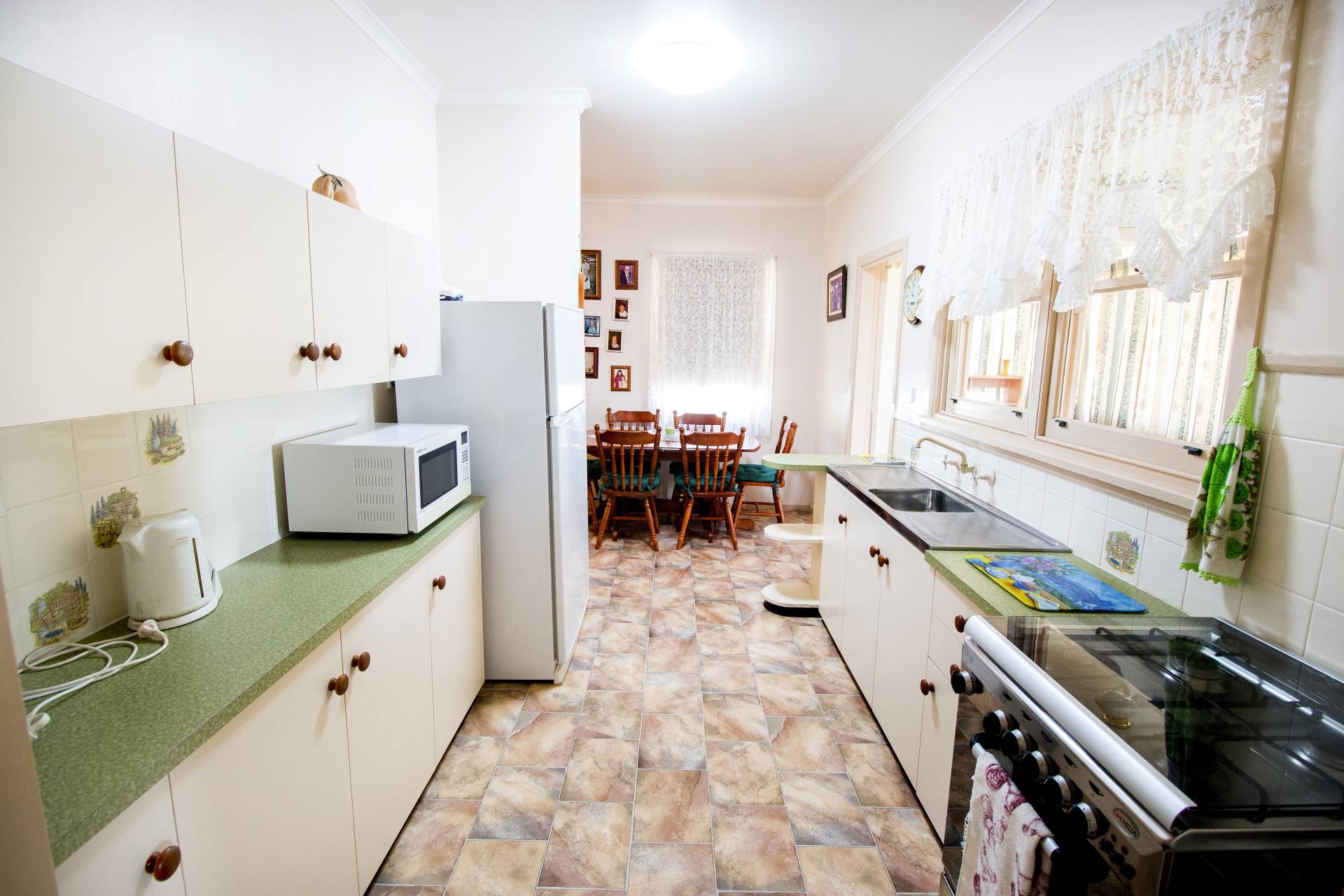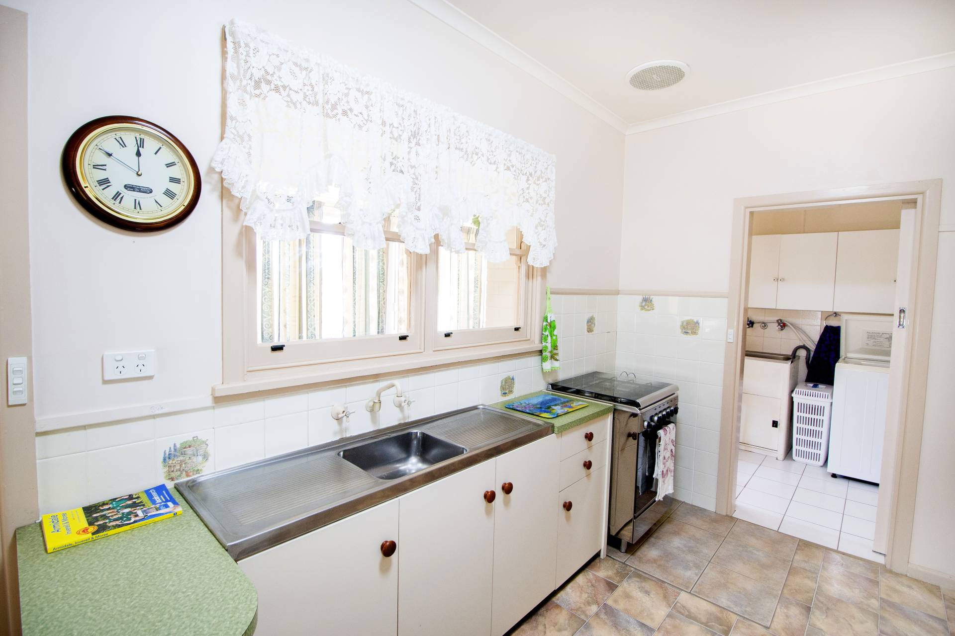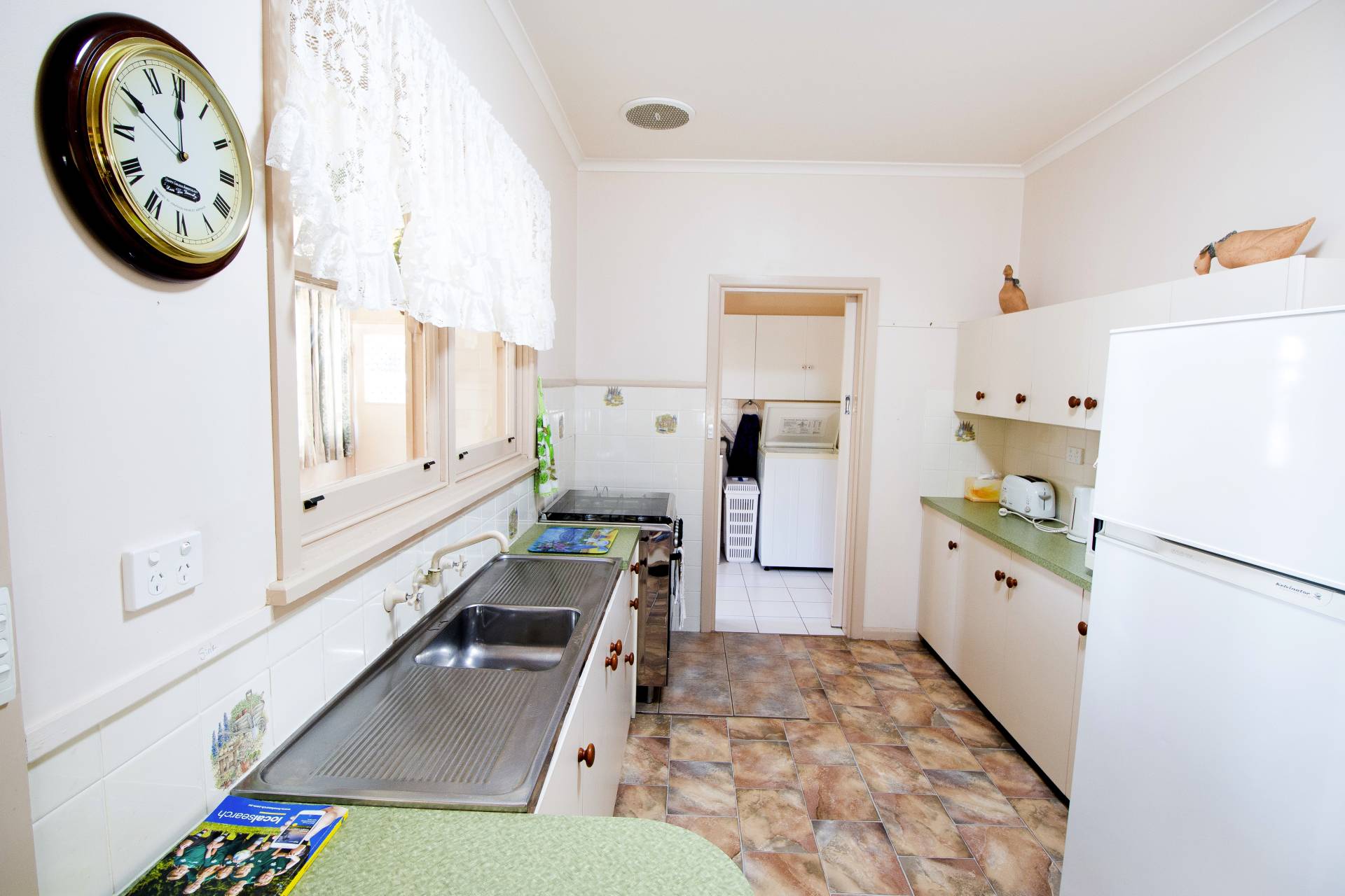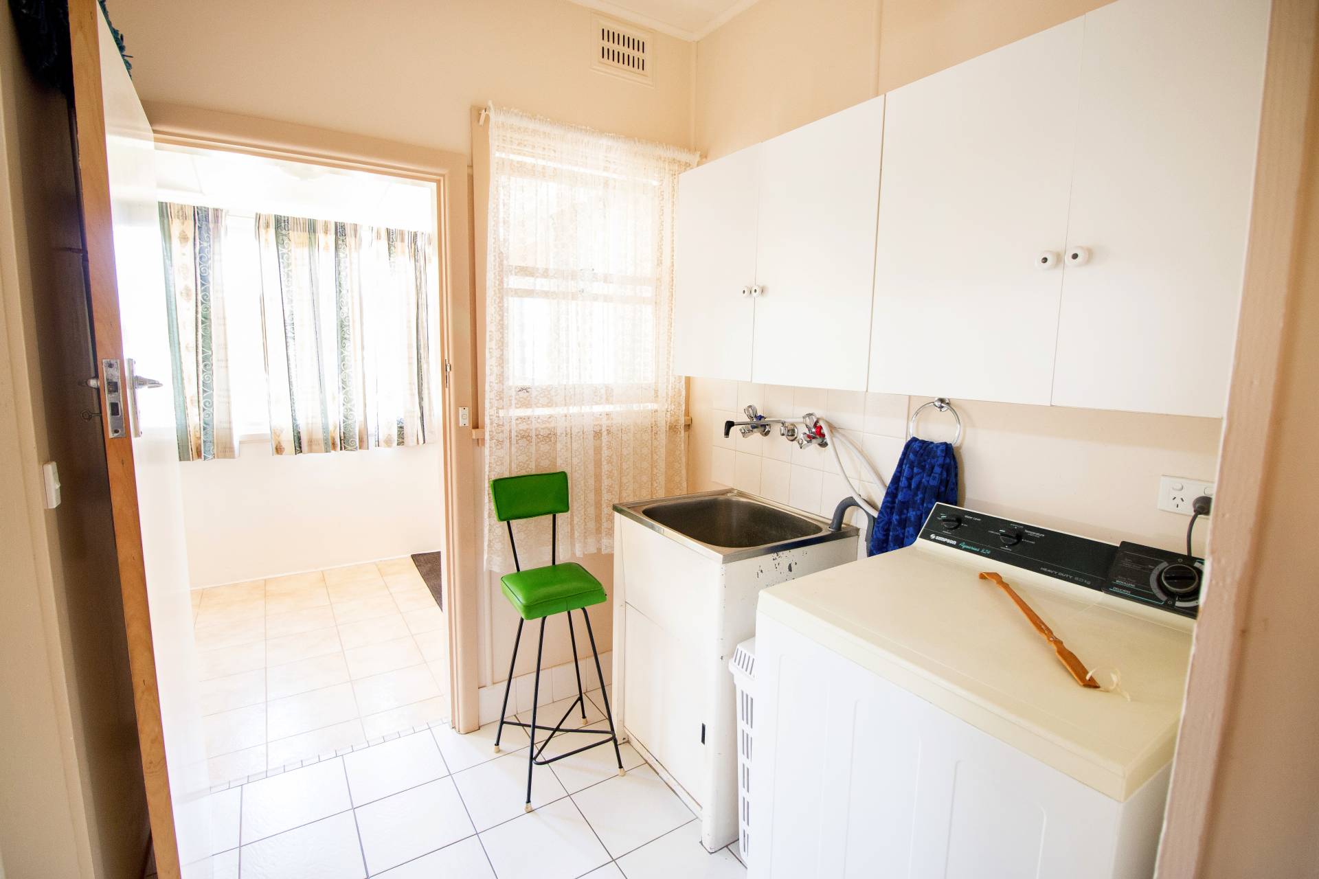 * Tiled laundry situated off the kitchen, complete with: built-in laundry tub & overhead cupboards.