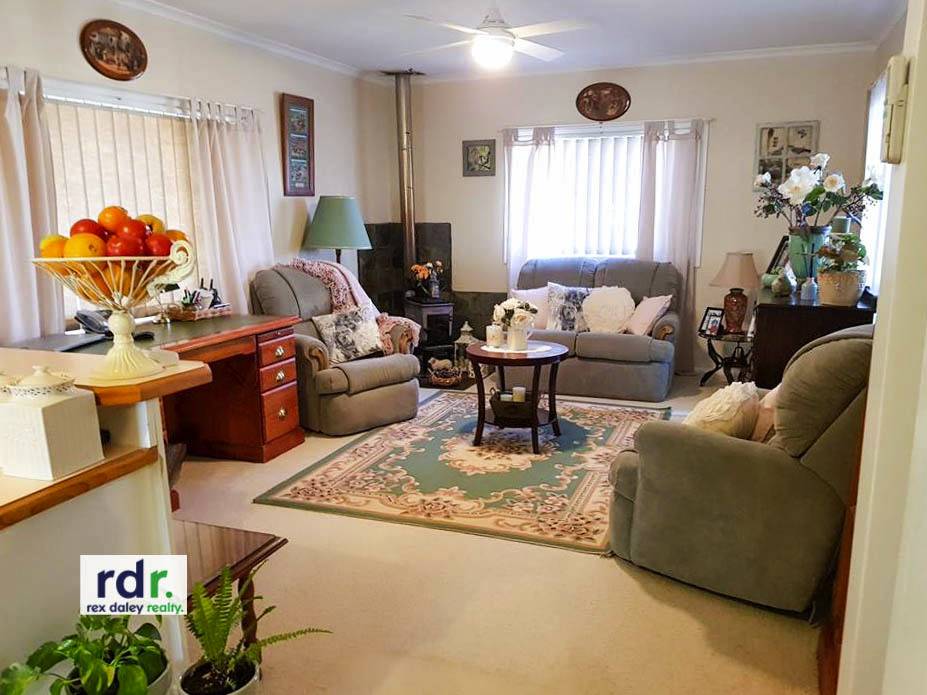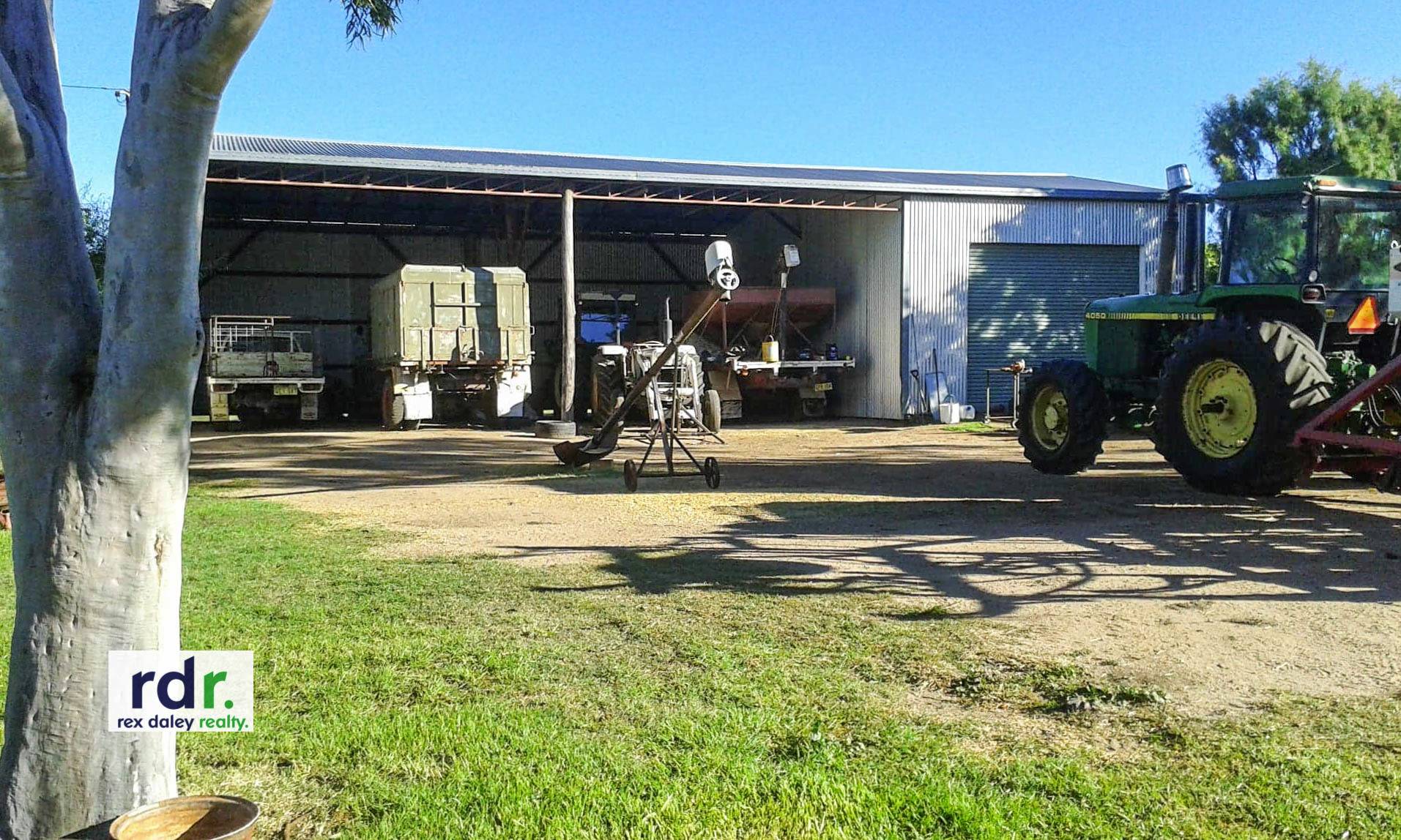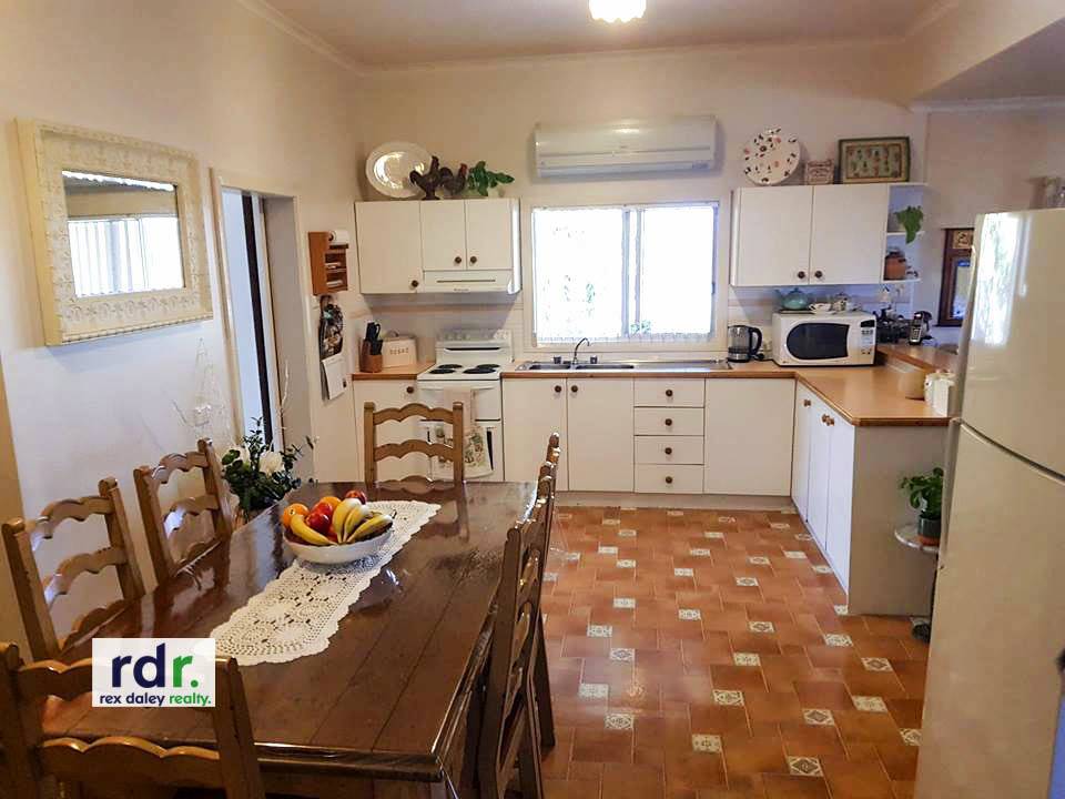 IMPROVEMENTS:  Well-maintained 3 bedroom weatherboard home with open plan lounge, dining and kitchen. Kitchen comprising of electric stove, double stainless steel sink, ample storage and reverse cycle air conditioning. Lounge room contains ceiling fan and wood heater. Terrace. Double garage and 9 carports. Established cottage-style gardens.