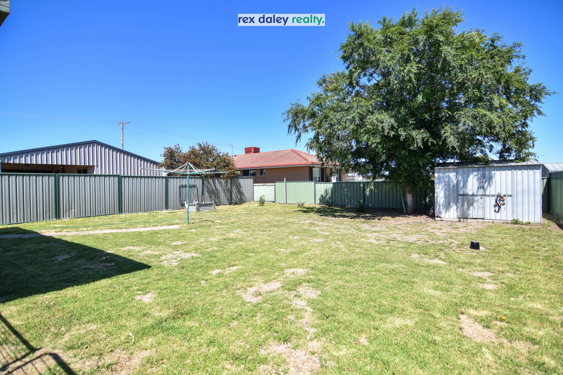 Fully fenced backyard with garden shed is where your kids and pets can play.