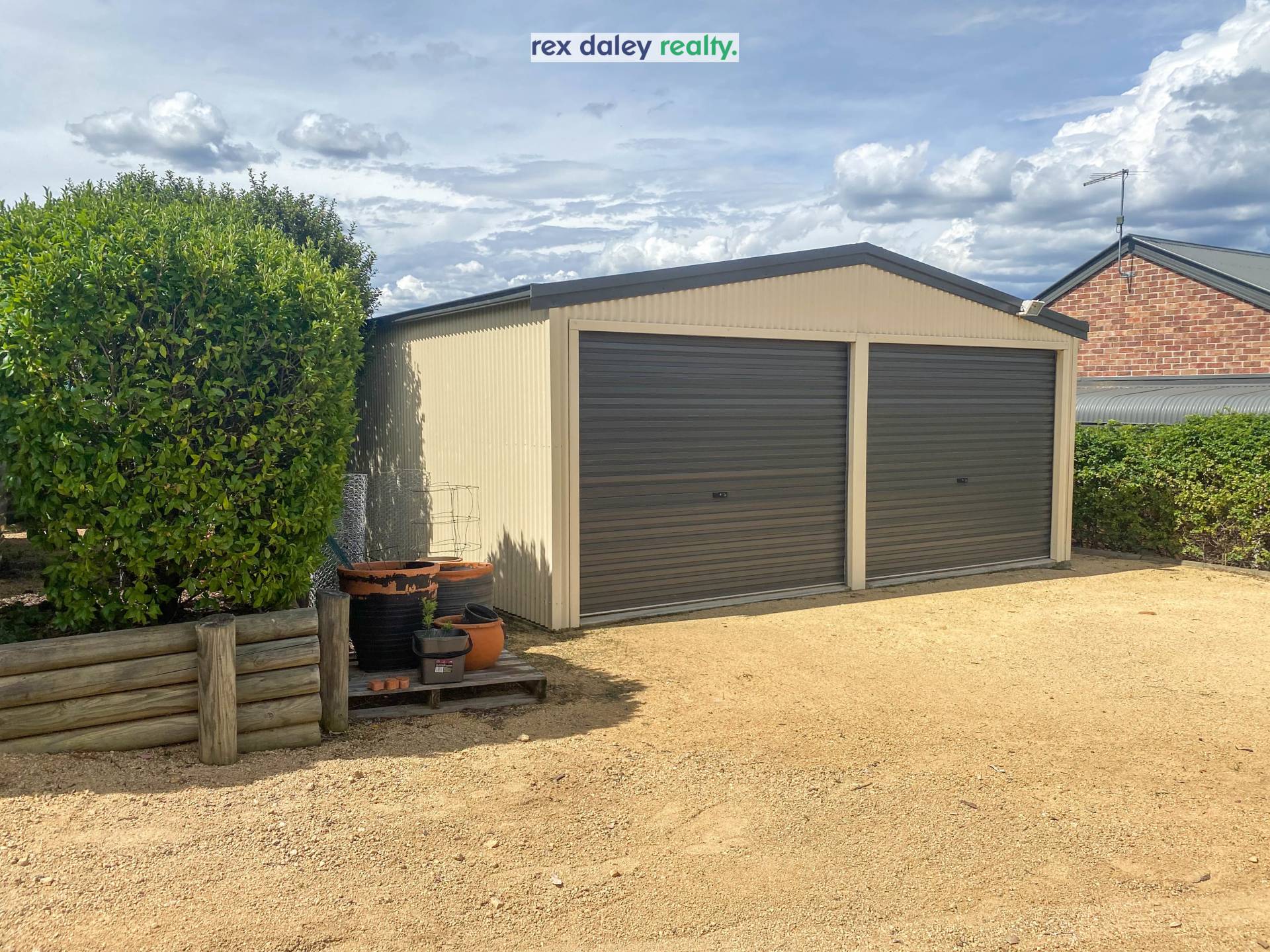There is plenty of parking and storage in the double garage with workshop and two bay shed.
