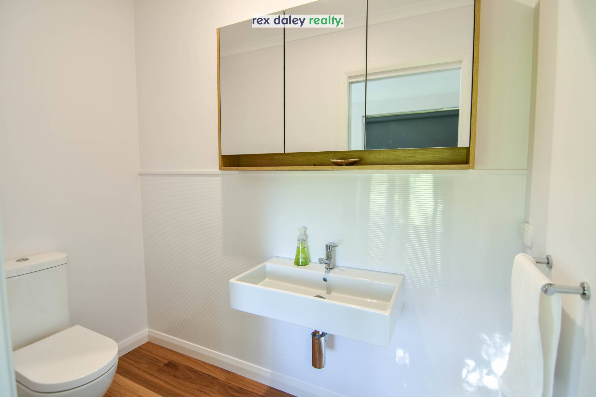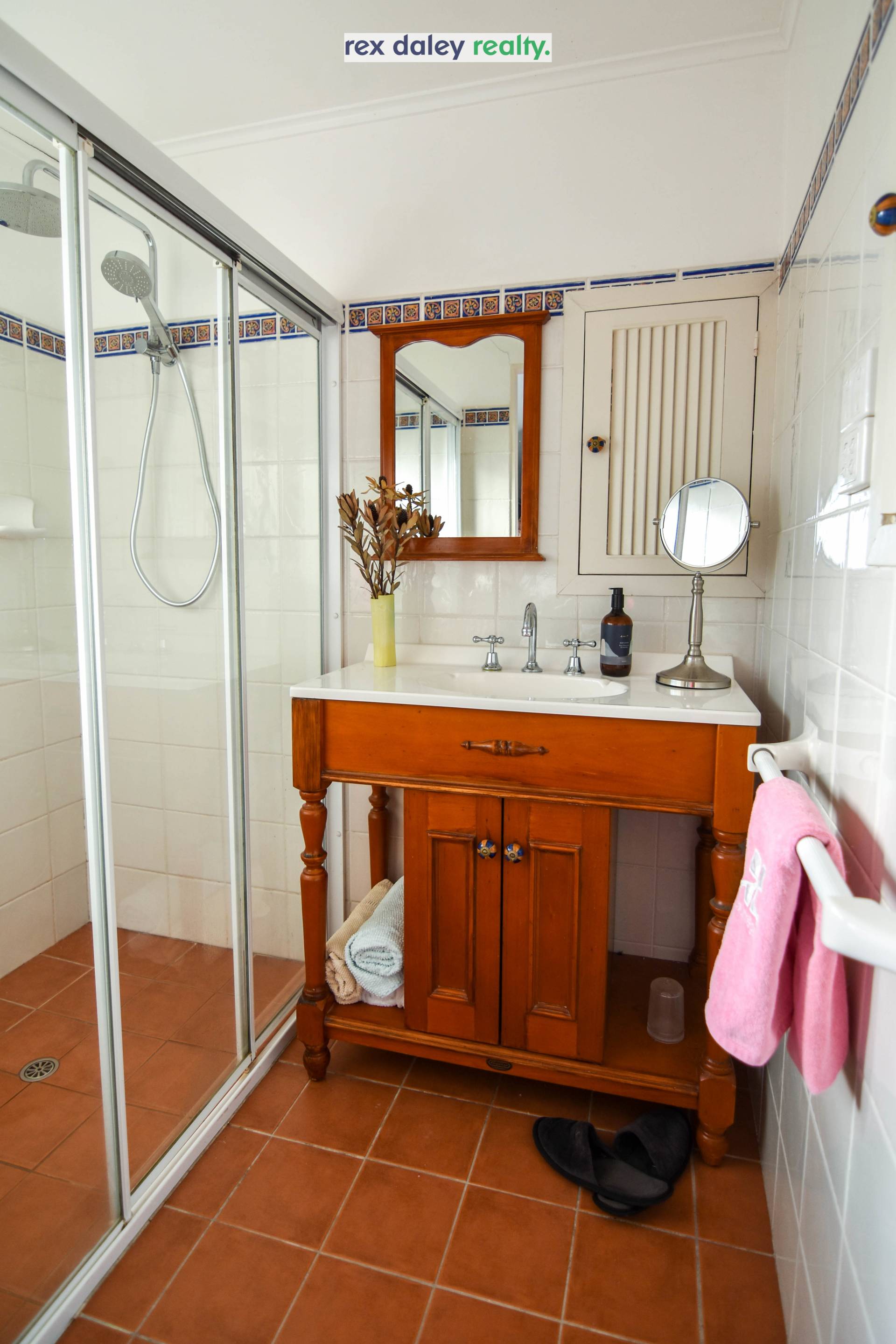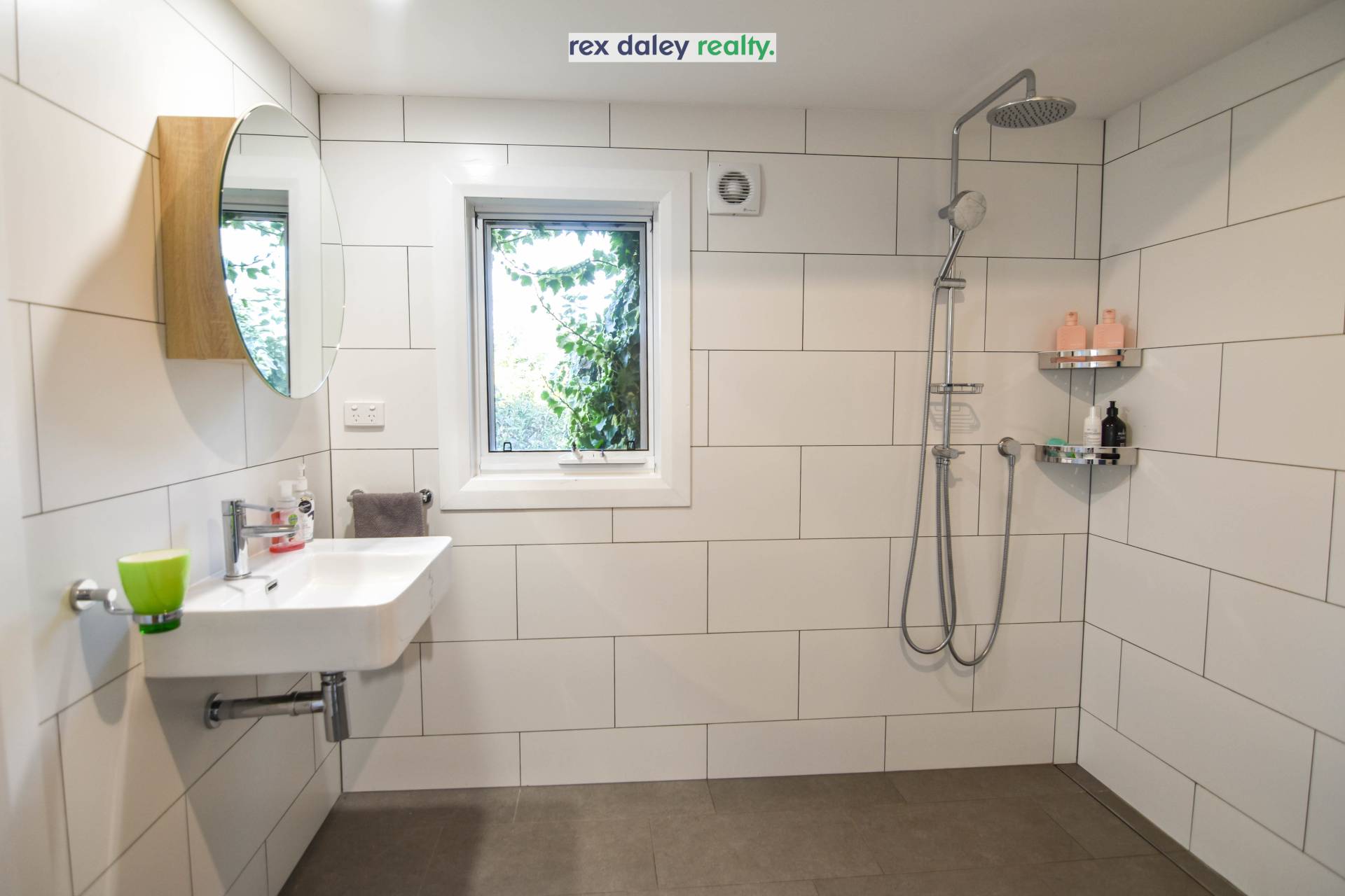 Country-style bathroom comprises shower, timber vanity and new separate powder room. New 2nd bathroom is wheel-chair friendly and has been carefully designed to complement the character of the home.