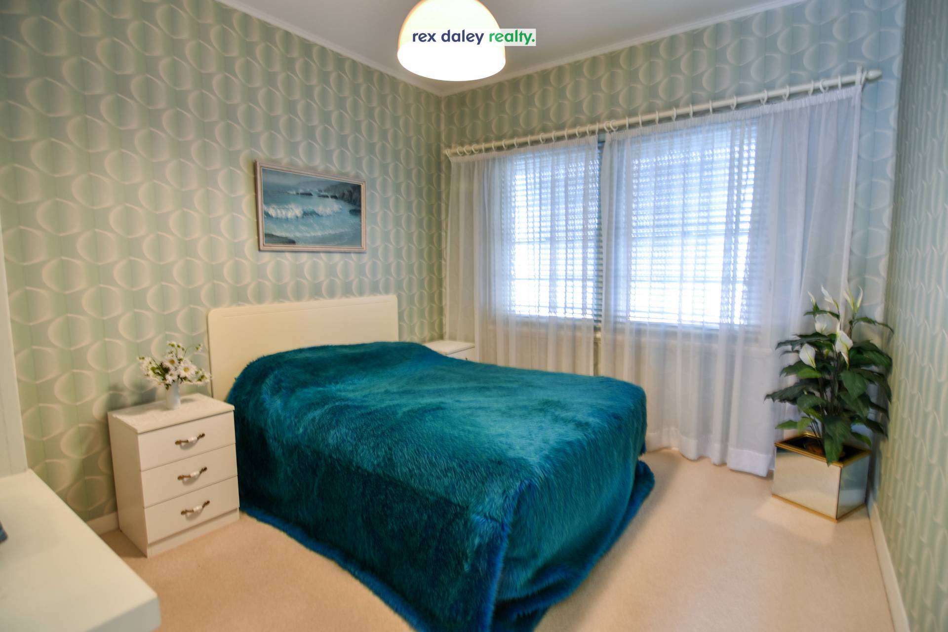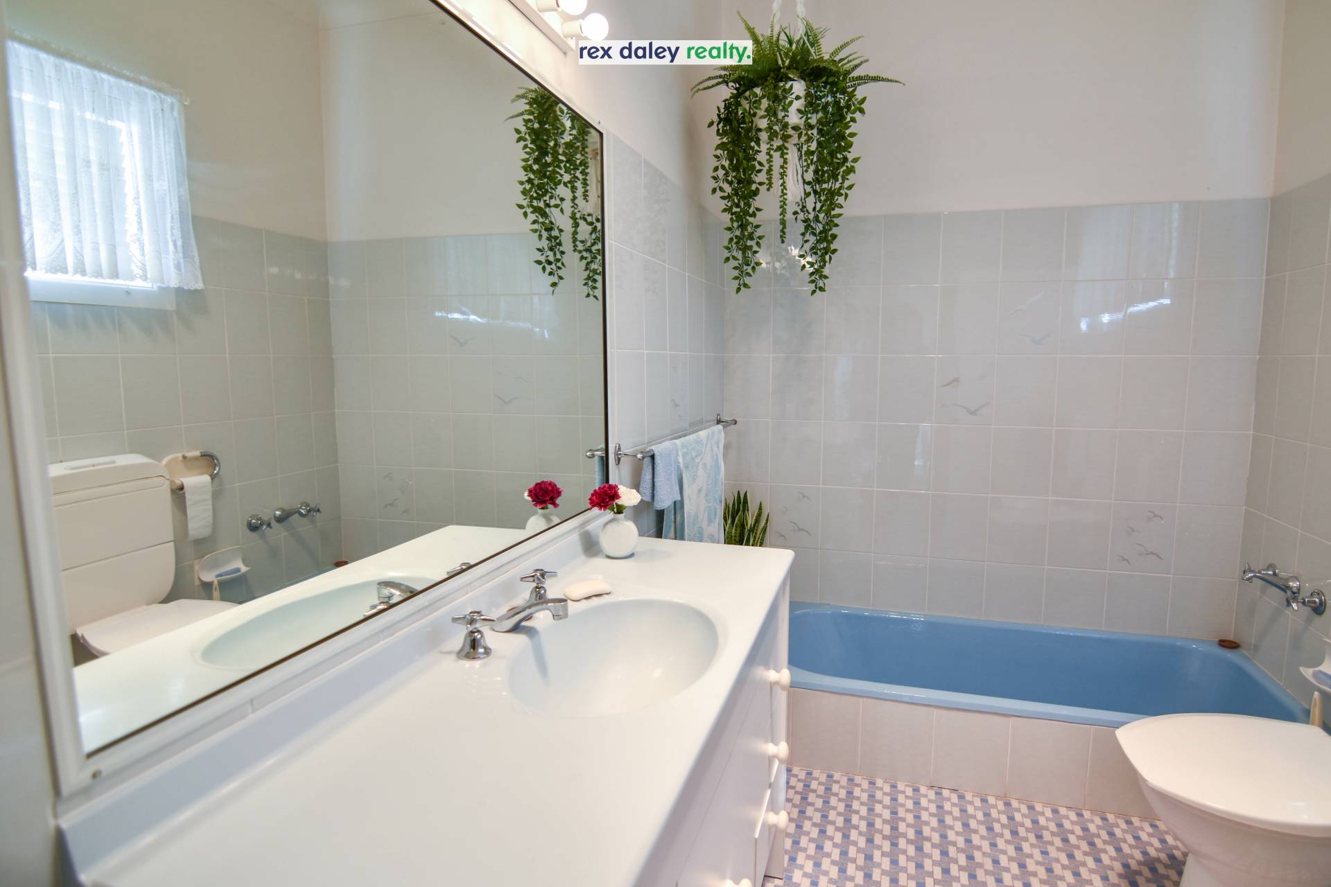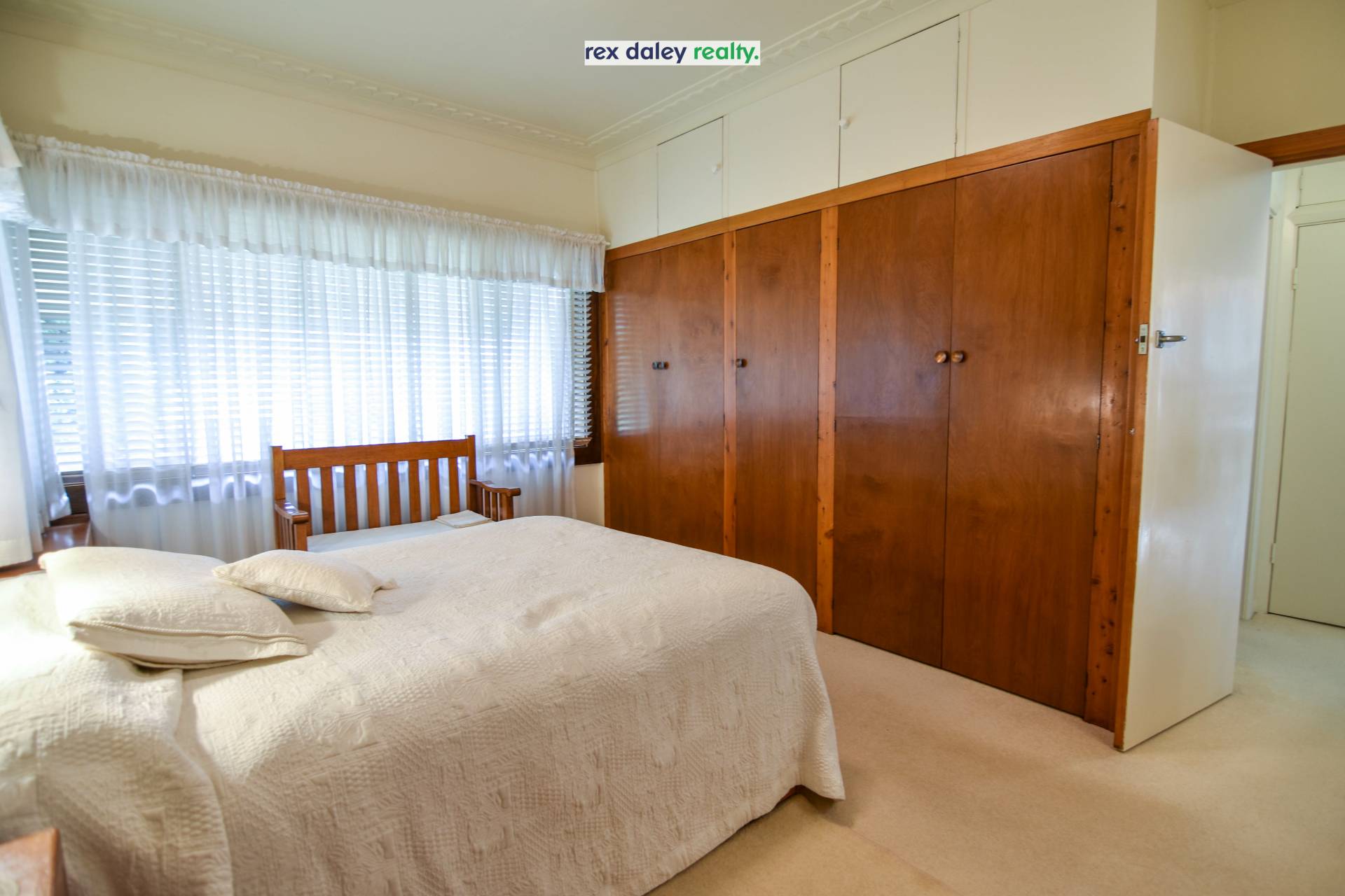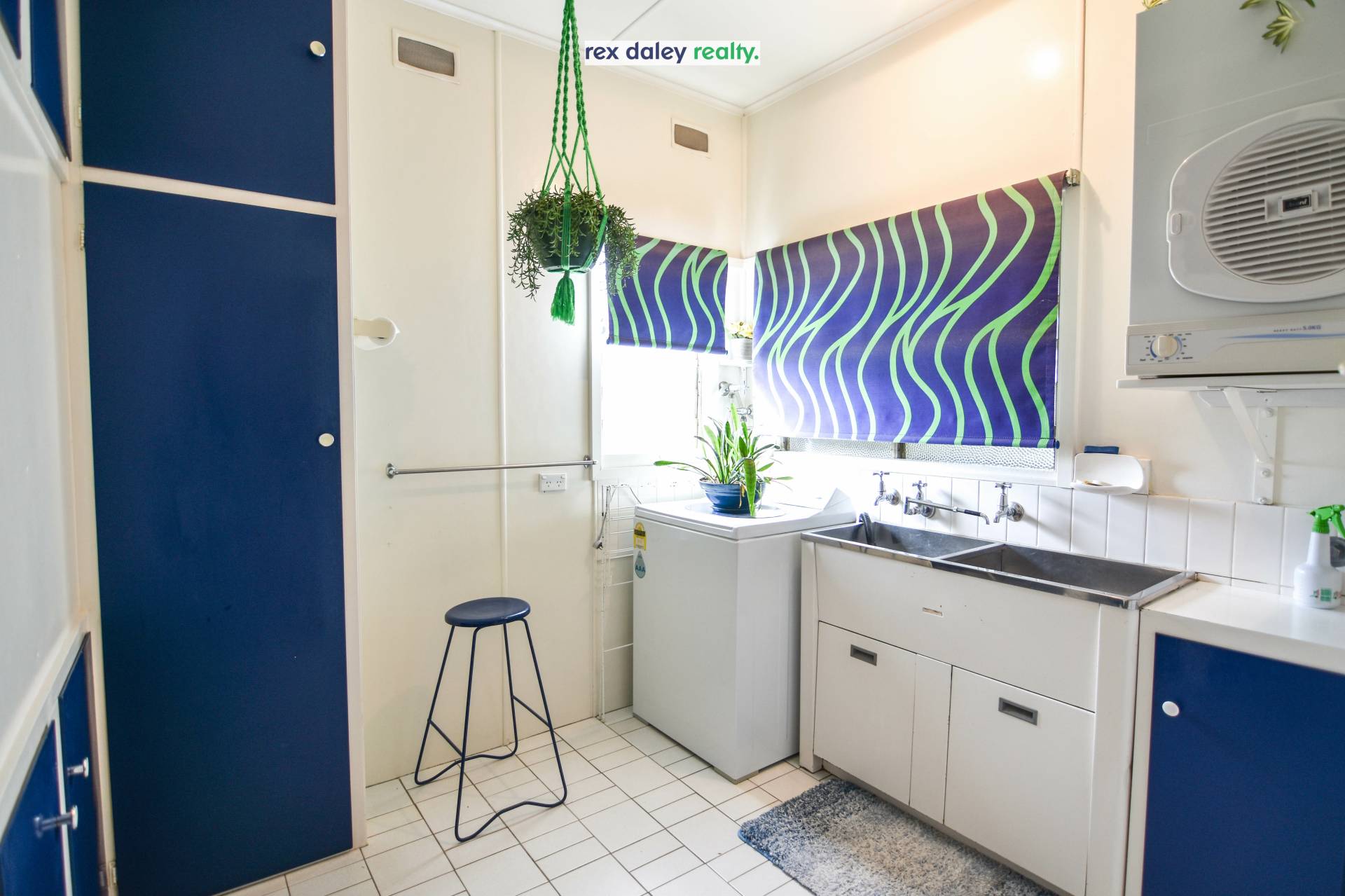 Sitting on a fully fenced 1,022sqm block with rear lane access, single weatherboard garage and low-maintenance lawns and established trees and bushes.