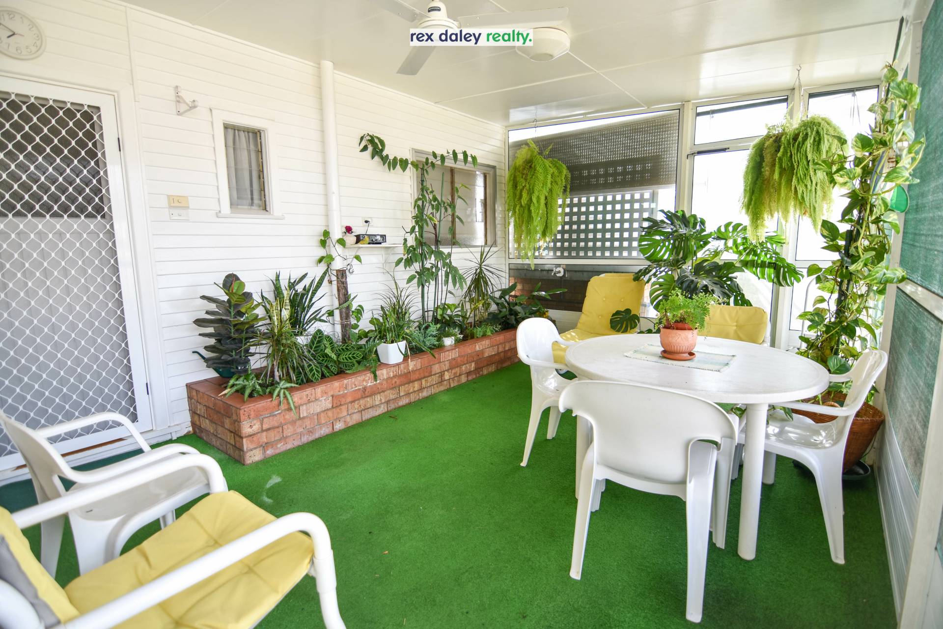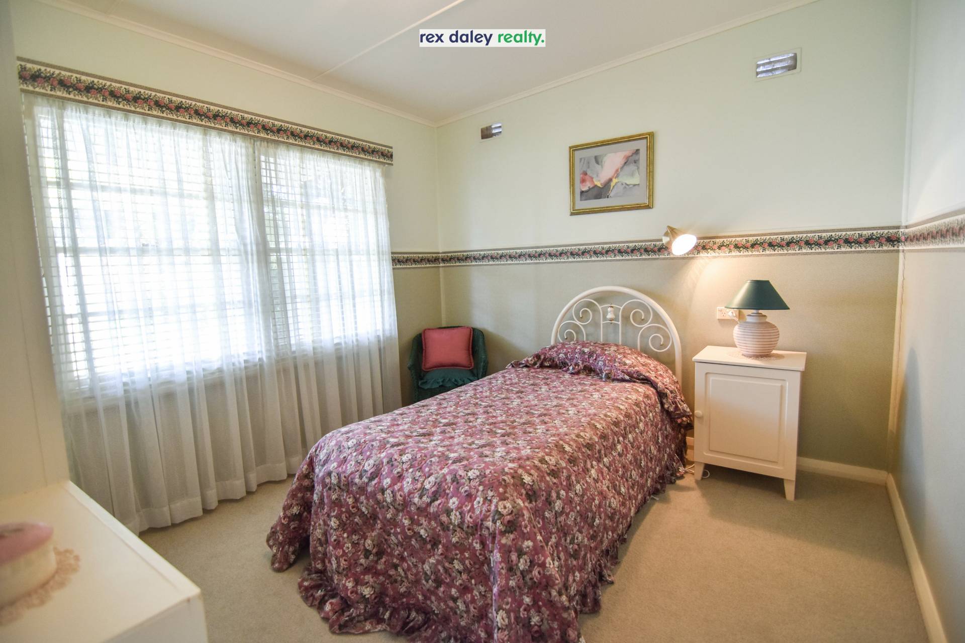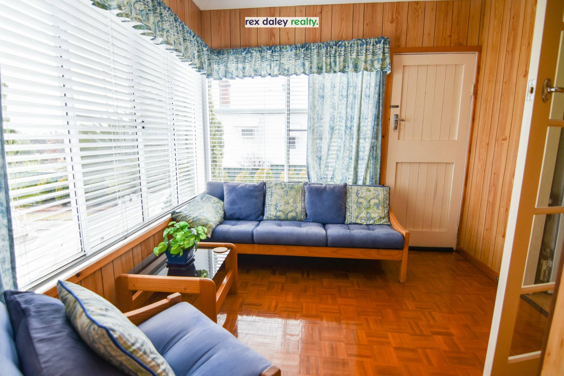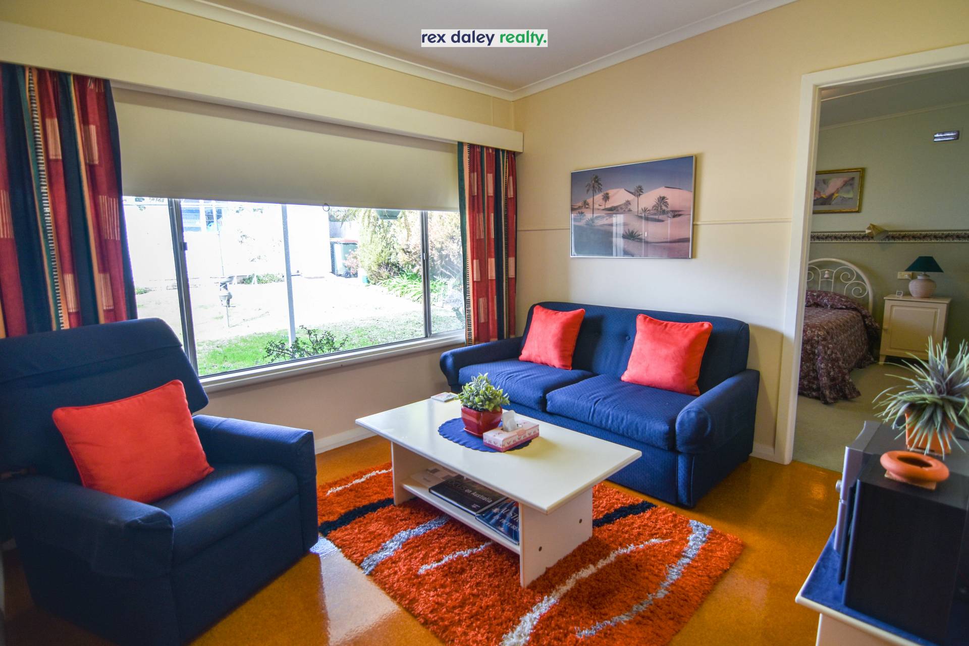 Sitting on a fully fenced 1,022sqm block with rear lane access, single weatherboard garage and low-maintenance lawns and established trees and bushes.