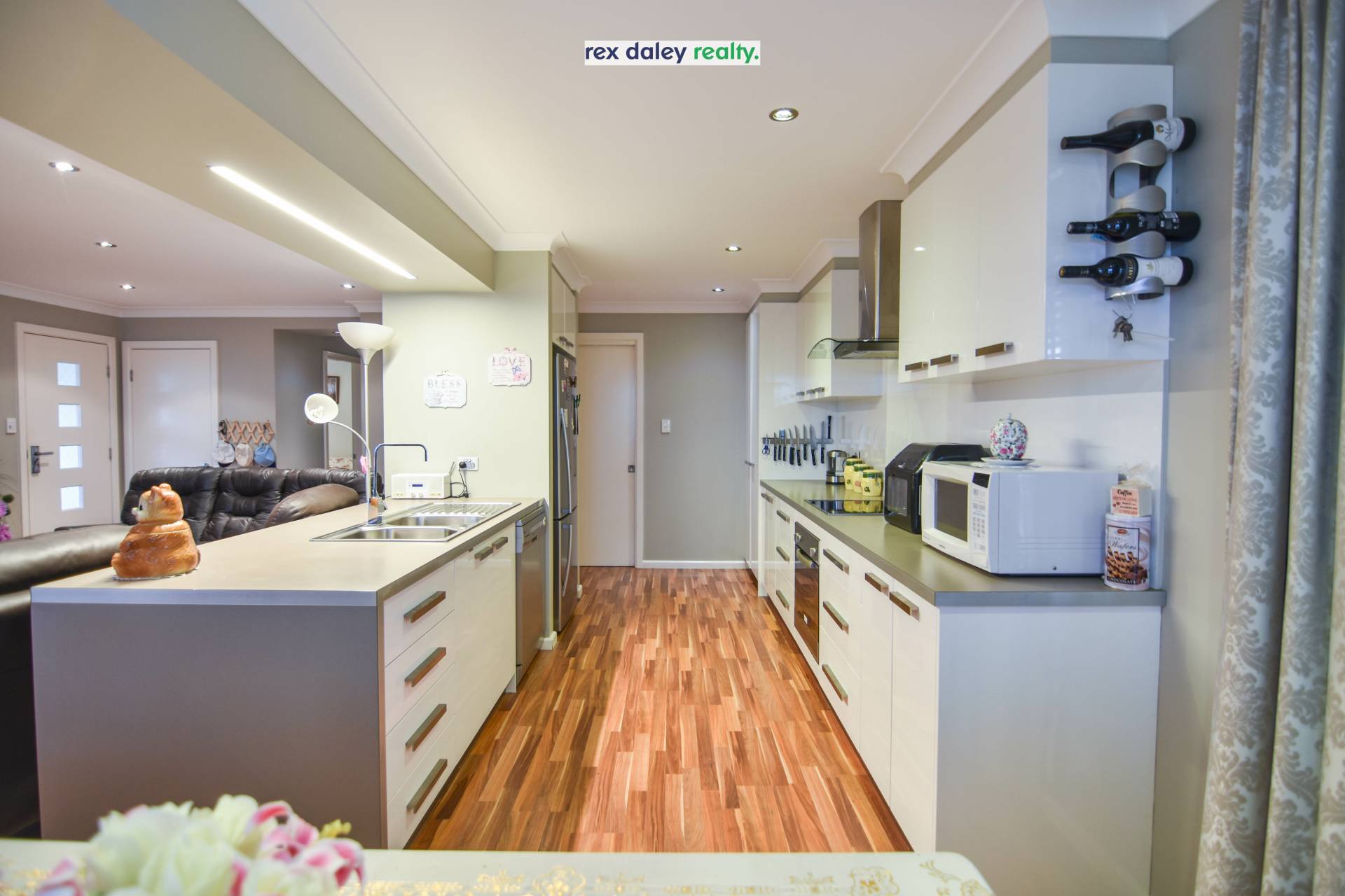 This modern kitchen has an abundance of cupboards, dishwasher, plenty of bench space and has been designed for ease of use.