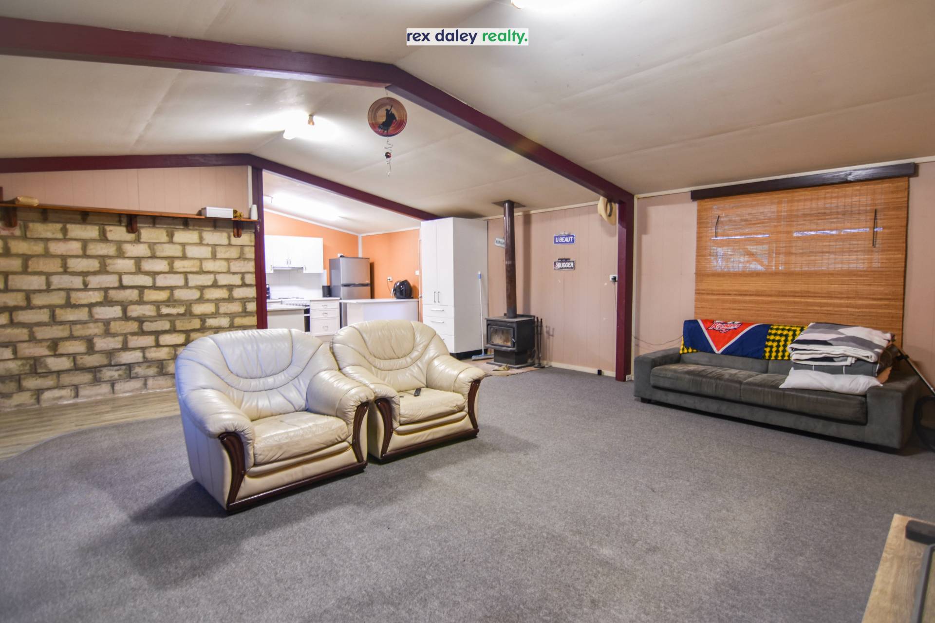 -  2 bedroom Colourbond cottage with open lounge and dining with wood heater, country-style kitchen, bathroom combined laundry
