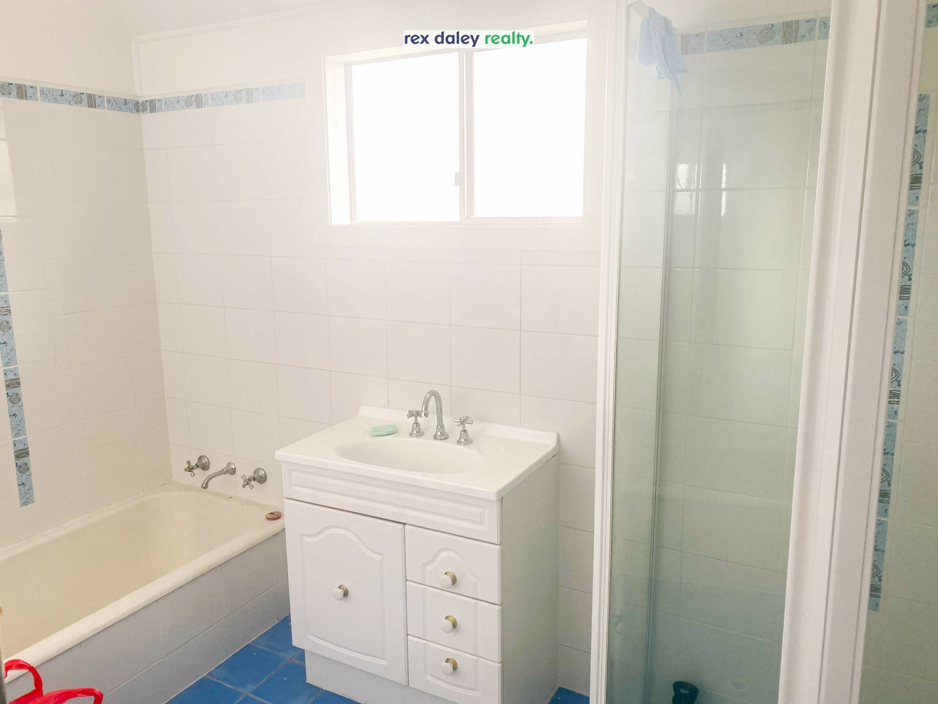 Main bathroom comprises of bathtub, shower, vanity and separate toilet. Second shower and toilet are in the renovated laundry.
