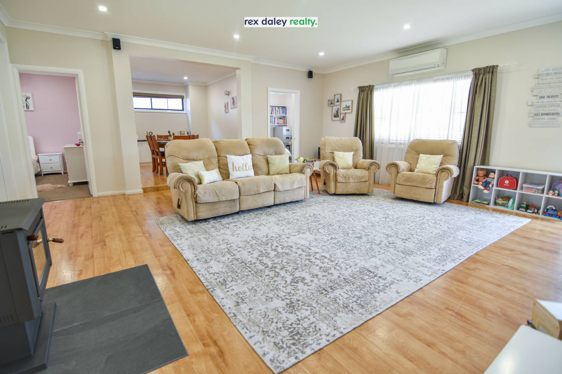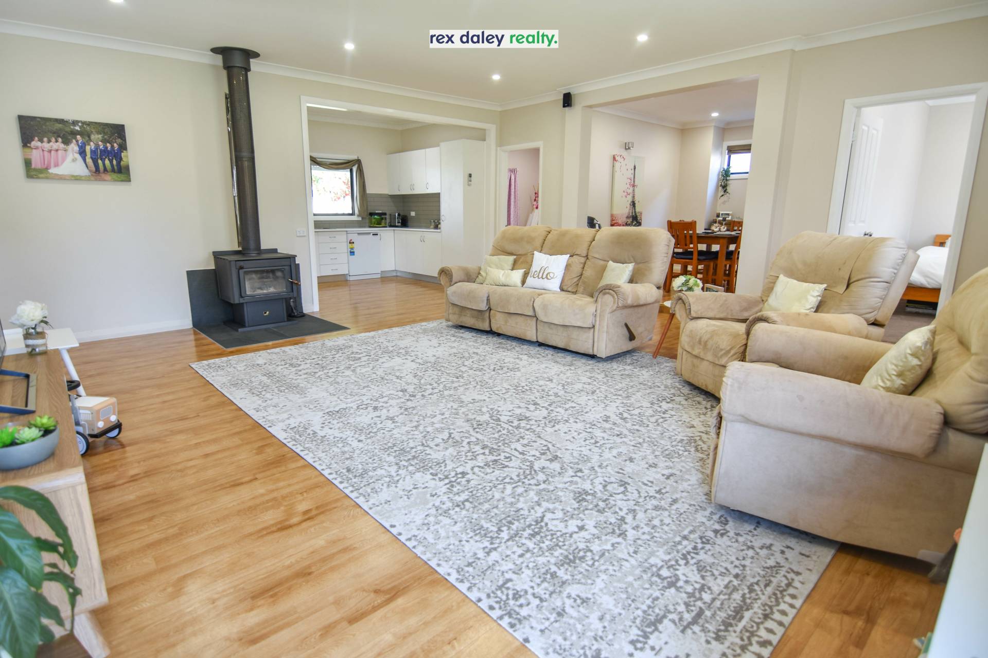 Light-filled open plan lounge, dining and kitchen is the heart of this home, kept comfortable year round by reverse cycle air conditioner and wood heater.