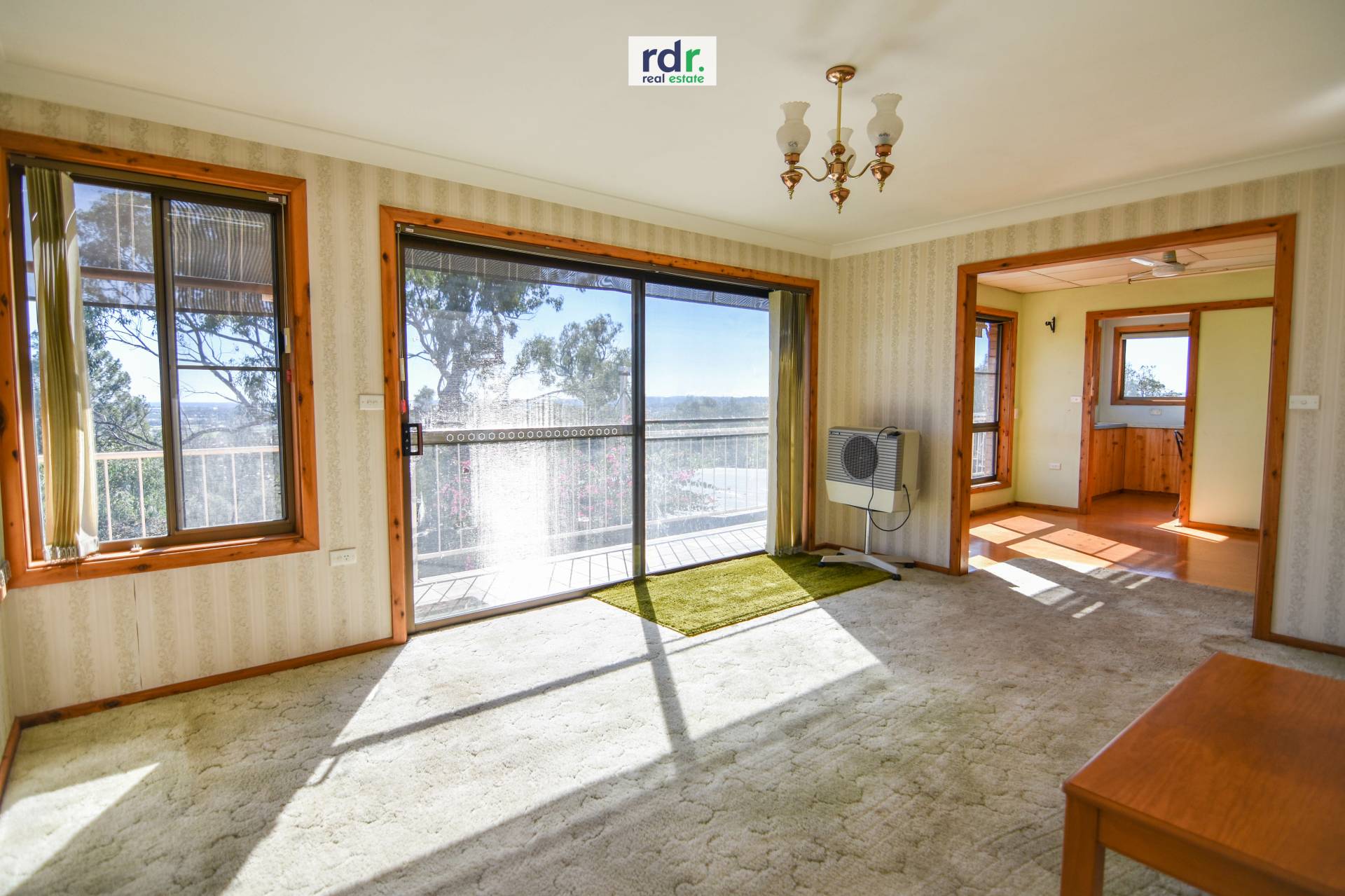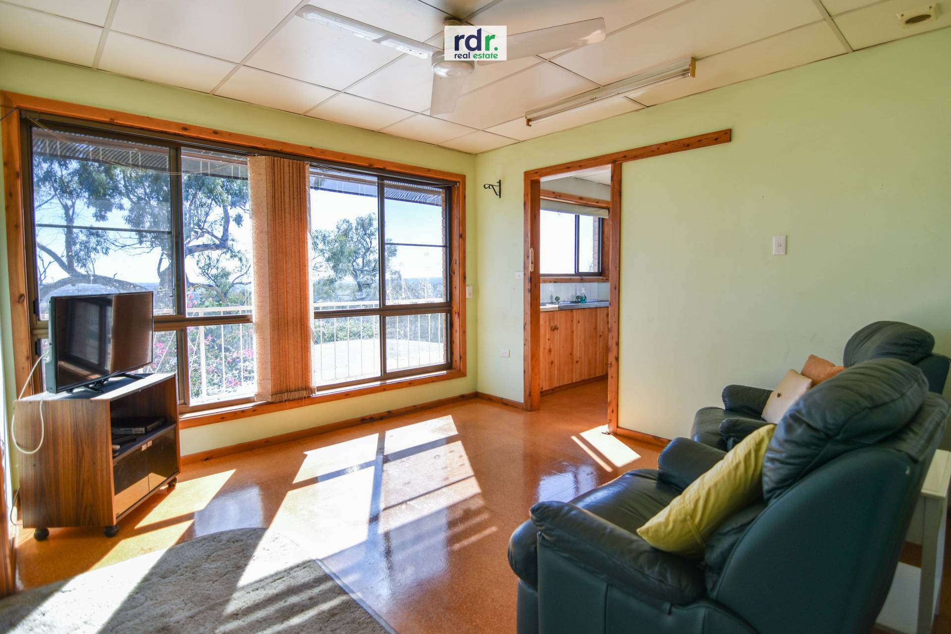 Glass sliding door opens the lounge room to the wraparound balcony and north-facing entertainment area.