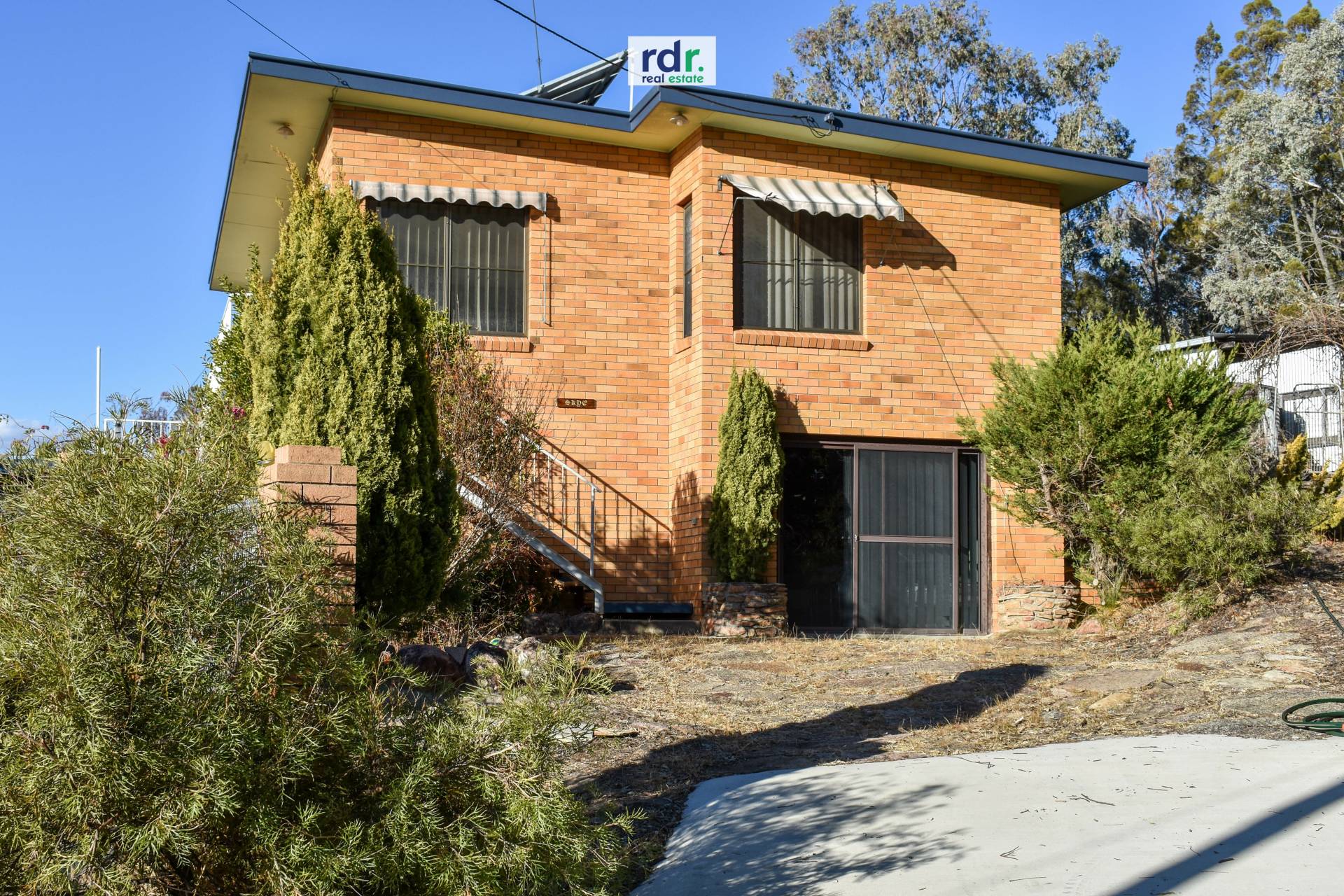 Nestled at the top of the property and hidden from the road, this brick home with a natural backdrop of native flora welcomes you.