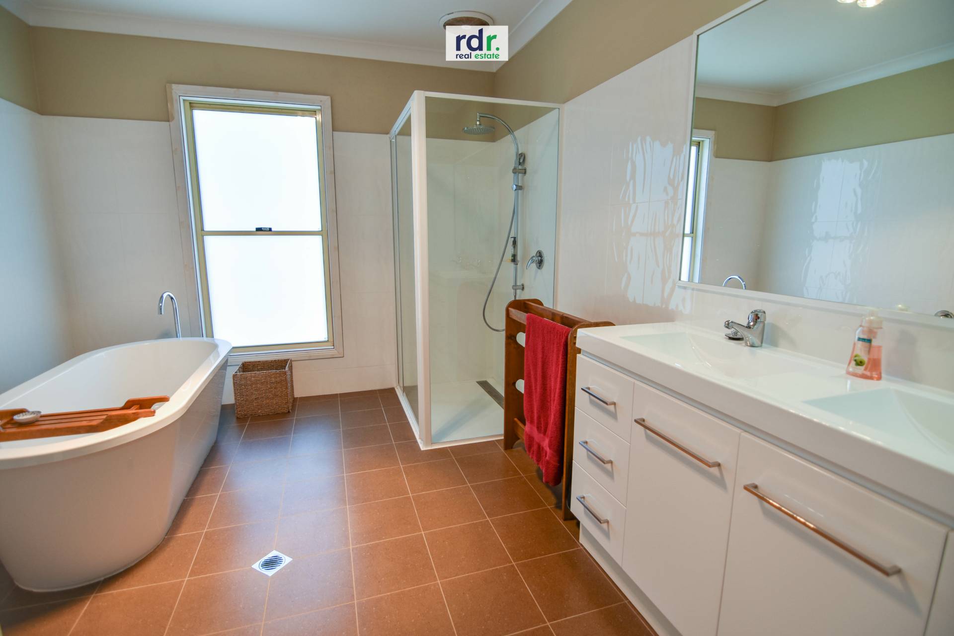 5 large bedrooms, each with walk-in robes. Deluxe ensuite adjoins the master bedroom and contains bathtub, shower, double vanity and toilet.