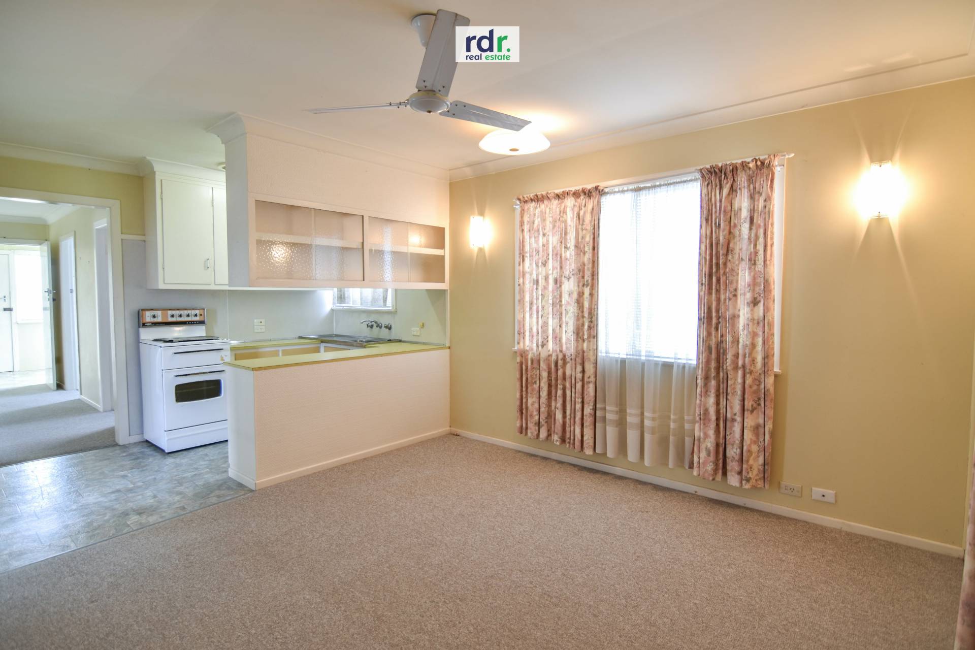 Making a welcoming first impression, the main home is set at the front of the property. Generous lounge room with reverse cycle air conditioner and built-in heater flows to the original kitchen, fitted with an abundance of cupboards and ceiling fan.