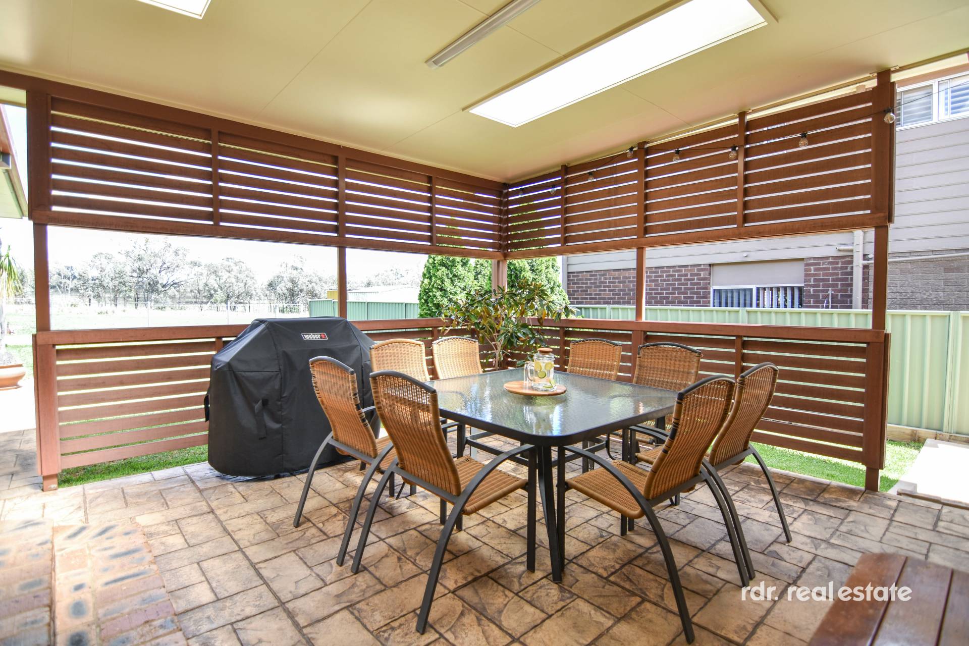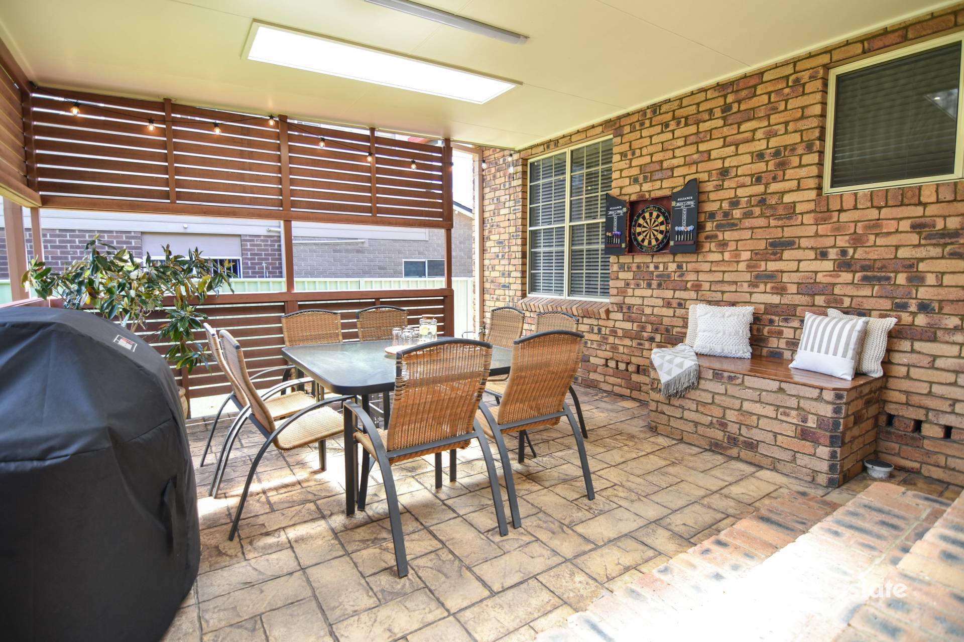 Step out onto the covered alfresco area, extending your living space into the backyard; a perfect setting for family gatherings and enjoying the outdoors against the backdrop of easy-care gardens and lawn, with pop-up sprinklers in the front lawn.