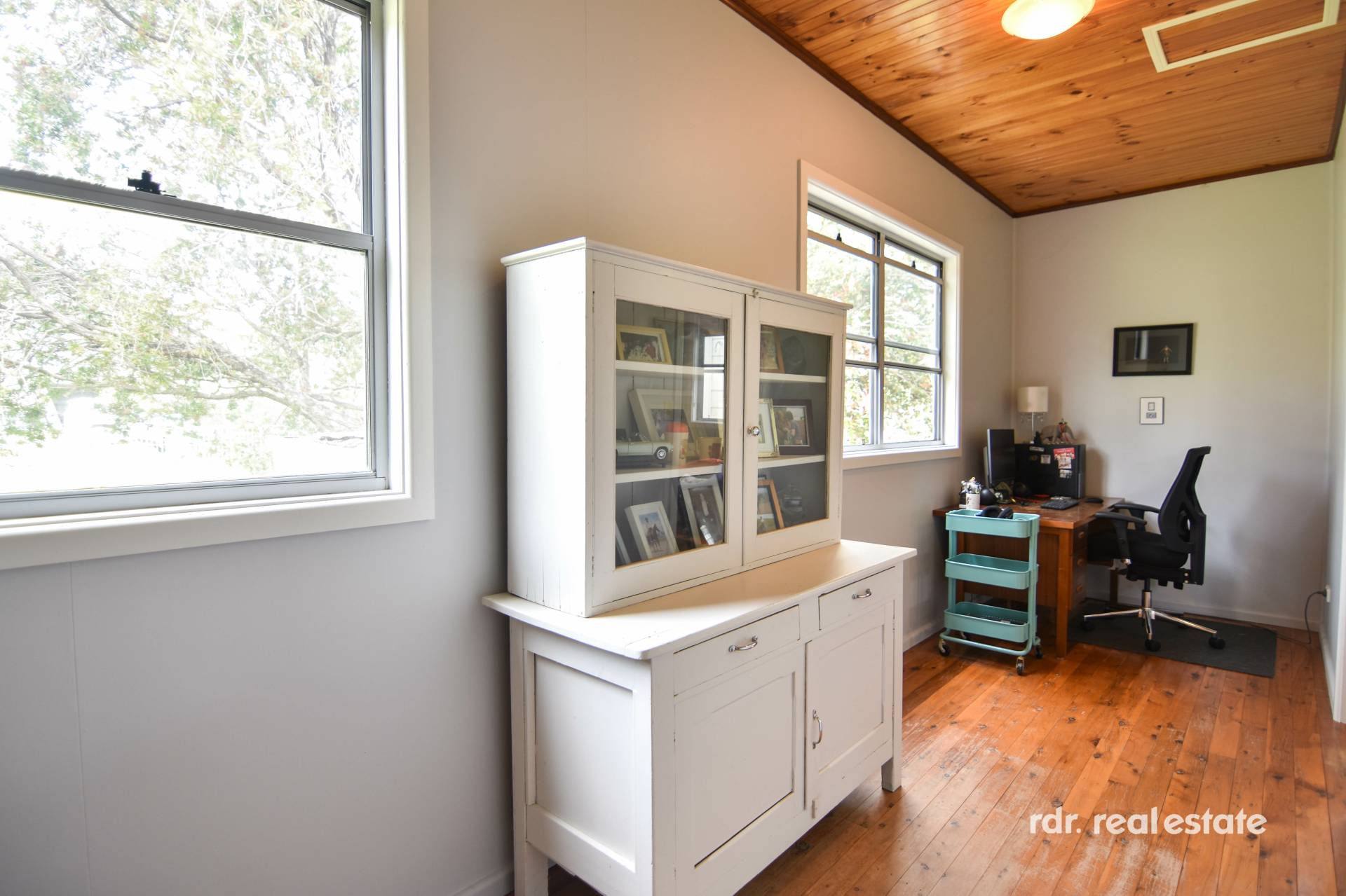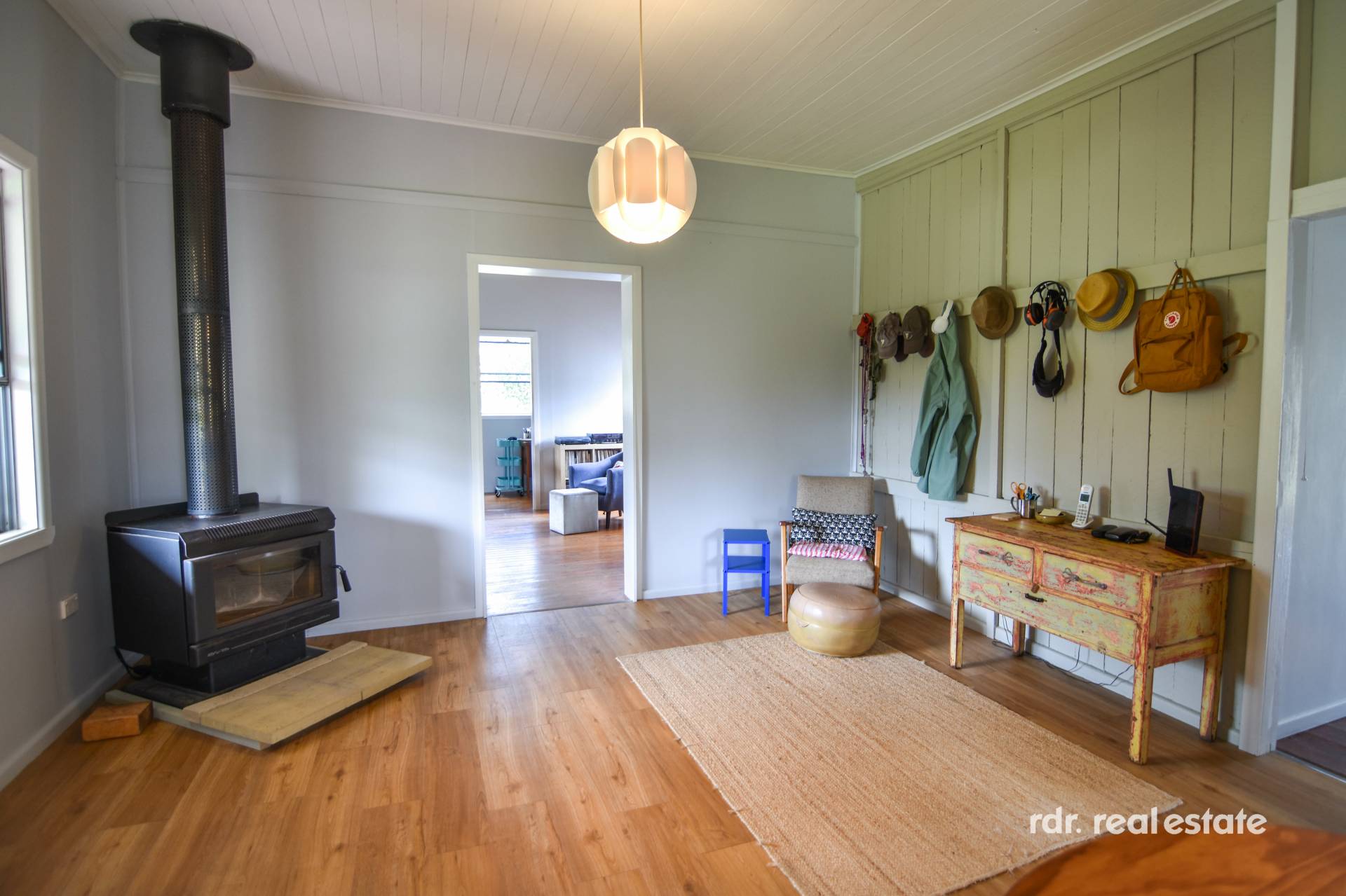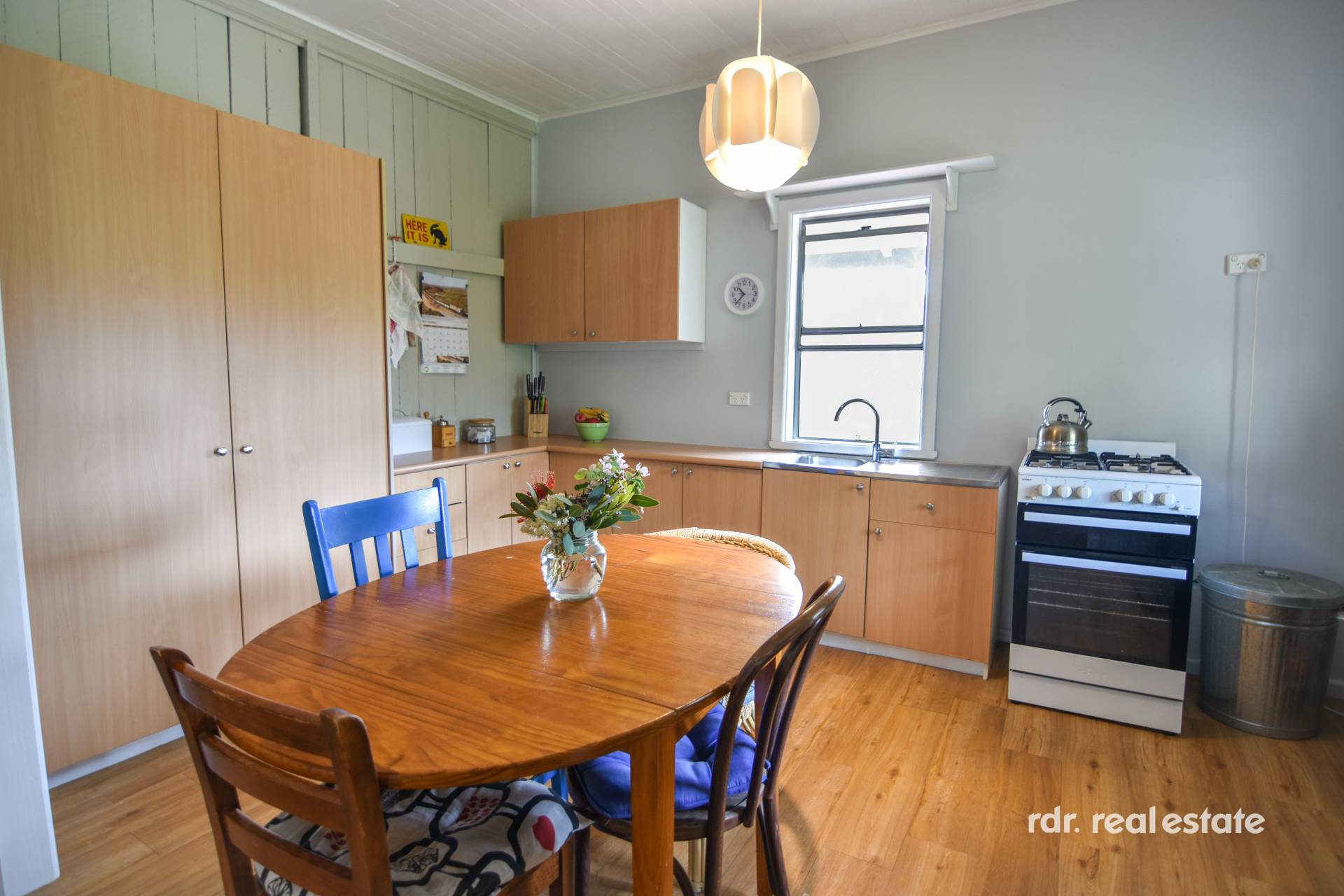 This charming cottage radiates warmth and comfort. The layout includes a lounge room, foyer/dining with wood heater, kitchen, 3 bedrooms, an office, 1 bathroom, and evaporative cooling. Lie in the claw foot bathtub and soak in the ambiance of this rural location, listening to the peaceful sounds of nature.
