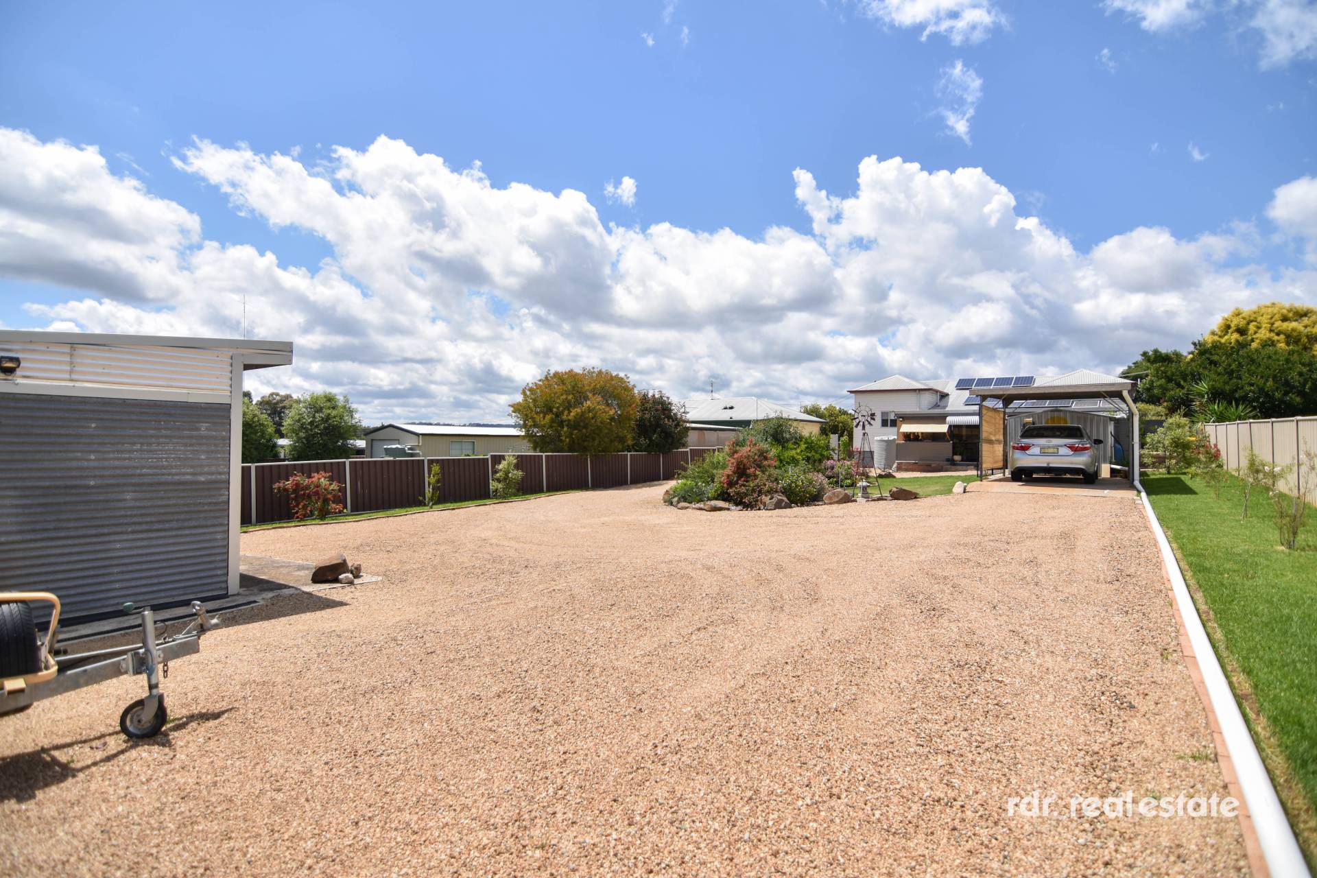 This fully fenced 1,080sm block has a garden shed, single carport and single shed on a concrete slab, with access from the extra-wide gate in the back fence, giving you rear lane access.