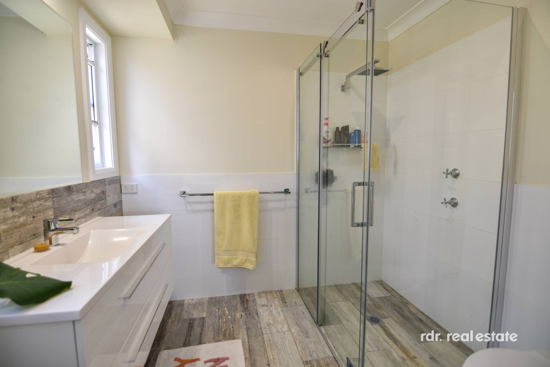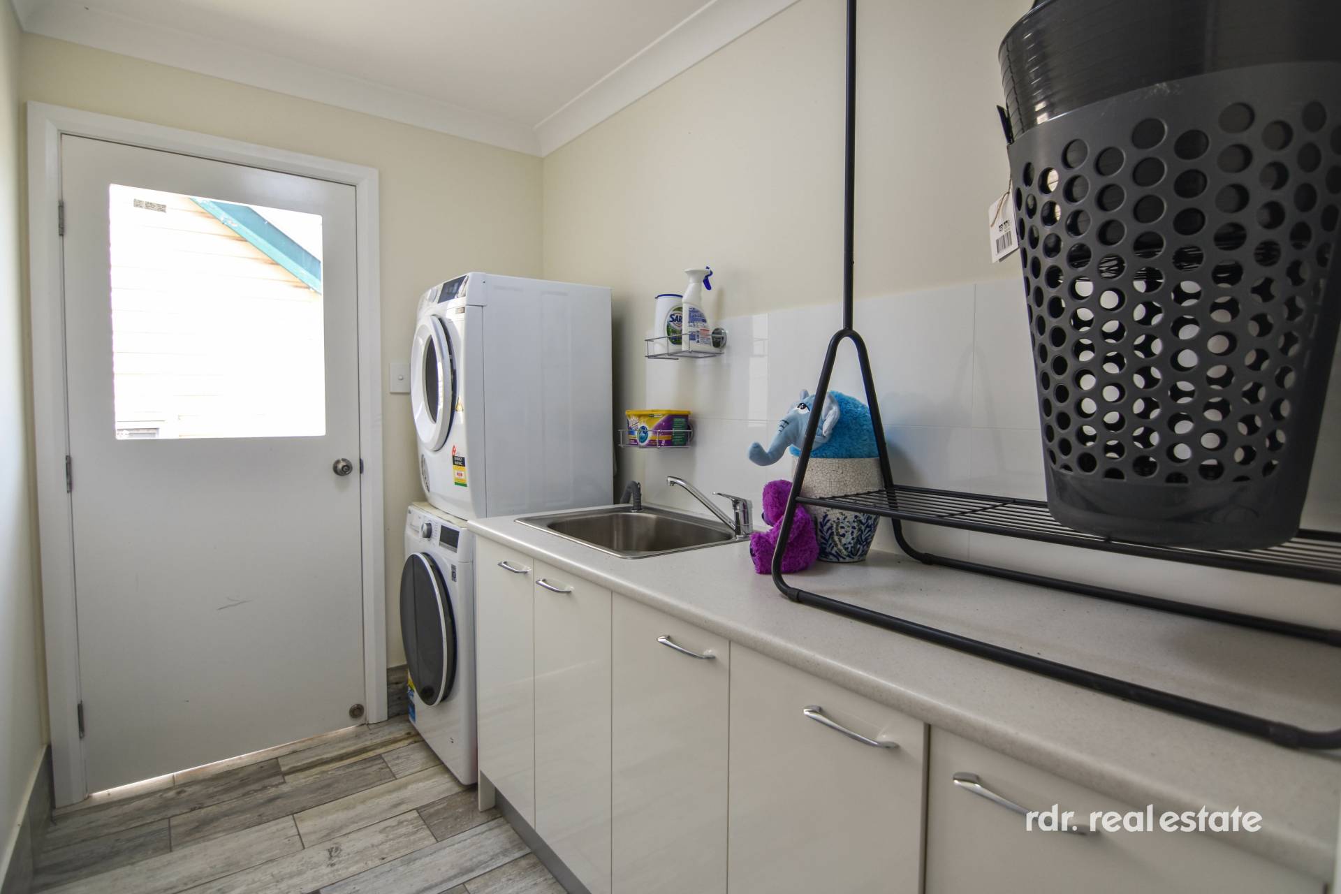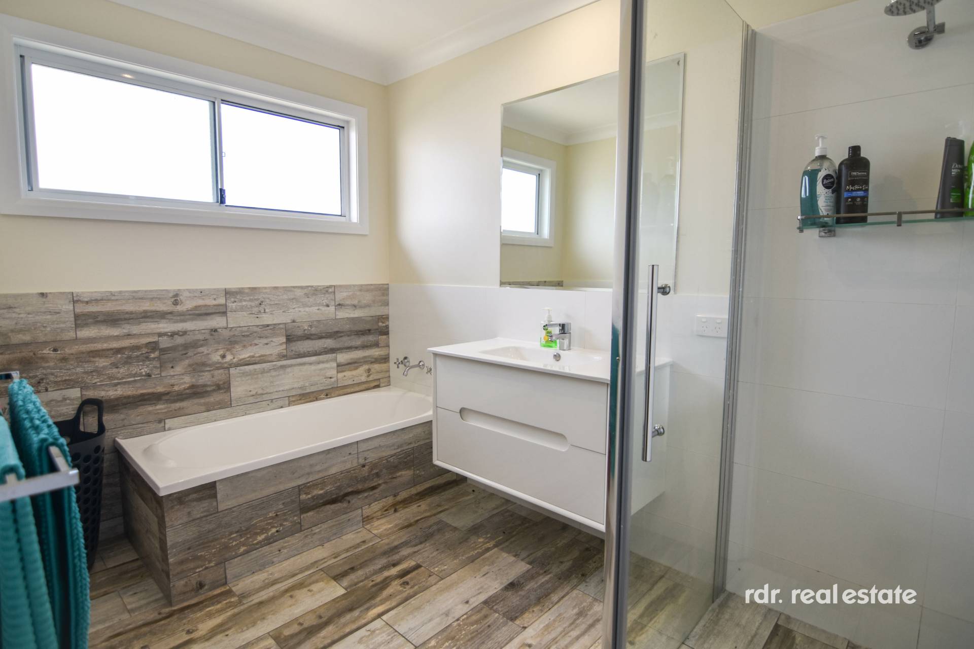 The main bathroom is large in size and contains bathtub, vanity, shower and separate toilet. Laundry has of plenty of storage, bench space and external access.