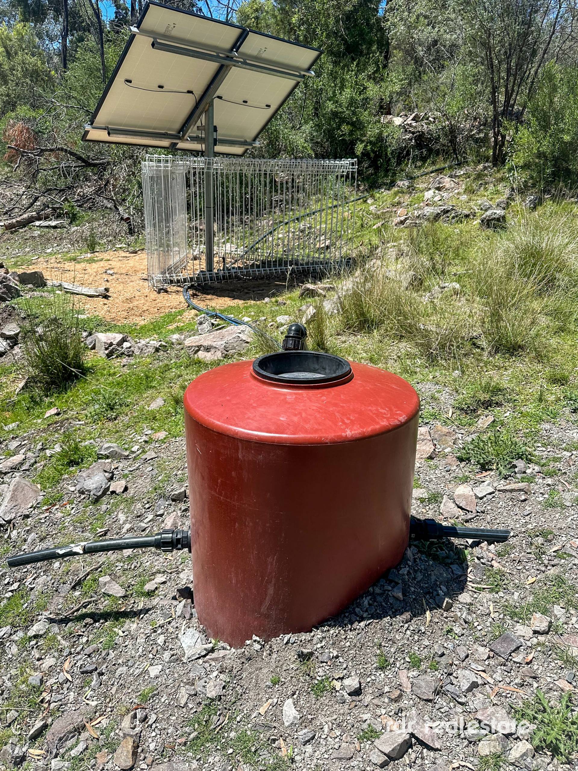 WATER:  1 dam, 2 troughs. Spring fed Scrub Hut Creek with swimming holes. Solar pump on spring pumping to 10,000L tank.