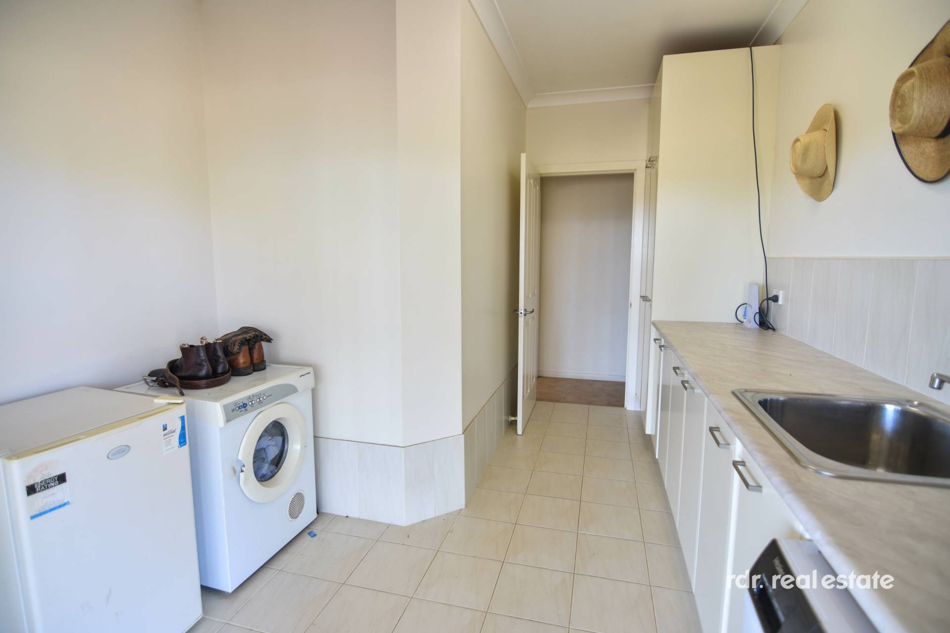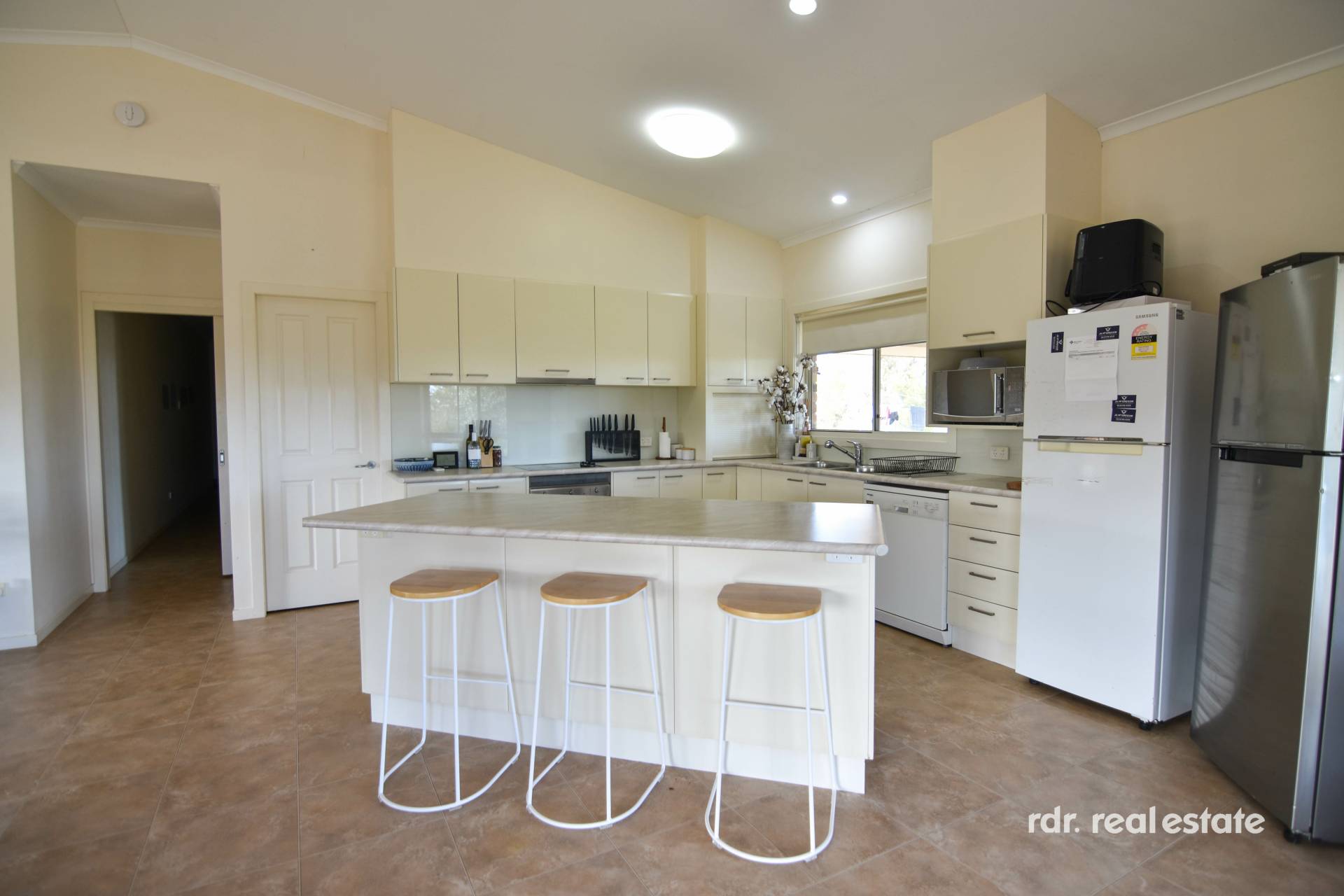 IMPROVEMENTS:  * 5 bedroom, 2 bathroom homestead built in 2005. Steel frame construction, with 9ft ceilings throughout, and 11ft raked ceiling in kitchen/family area & main bedroom. Reverse cycle air conditioning & ceiling fans in every room. Glass sliding doors & floor-to-ceiling windows throughout allow natural light and views in. Kitchen contains generous walk-in pantry, dishwasher, induction 4 burner cooktop & oven, appliance cupboard with roller door, and island bench.