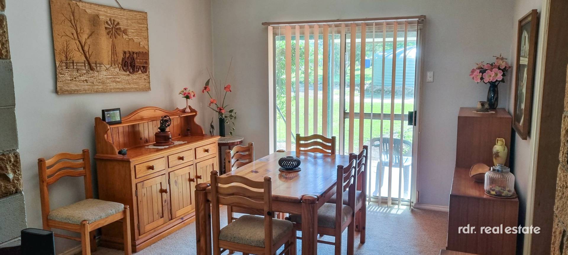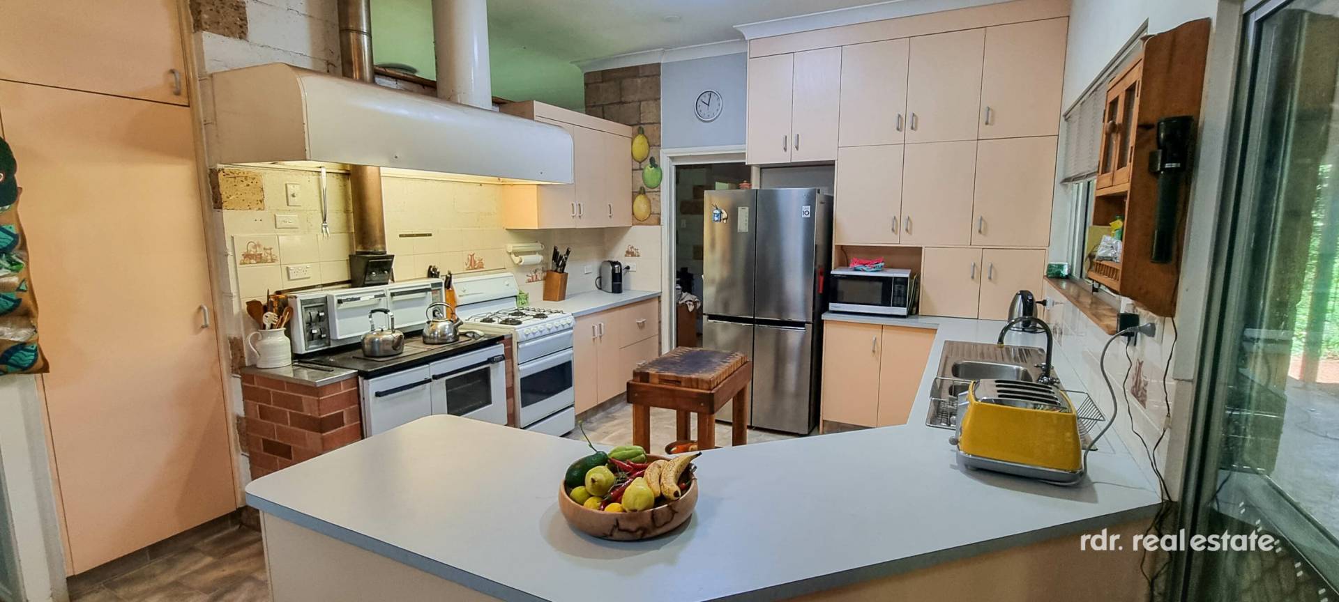 IMPROVEMENTS:  4 bedroom, 3 bathroom sandstone-block home with wraparound verandah and south-facing views over the Auburn Vale valley. Large lounge area with wood heater, kitchen with abundant cupboards and slow combustion stove, sitting area, dining room, 4 bedrooms- main with walk-in robe & ensuite, plus an office. Each room of this home opens out to the wraparound verandah. For heating and cooling, this home has ceiling fans throughout, as well as 3 wood heaters.