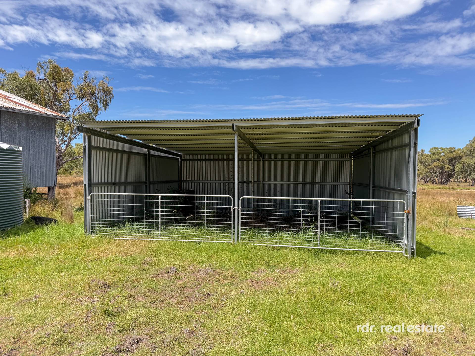 MACHINERY SHED:  18m x 12m drive-through shed with power. 10m x 10m 3-sided machinery shed with gates.