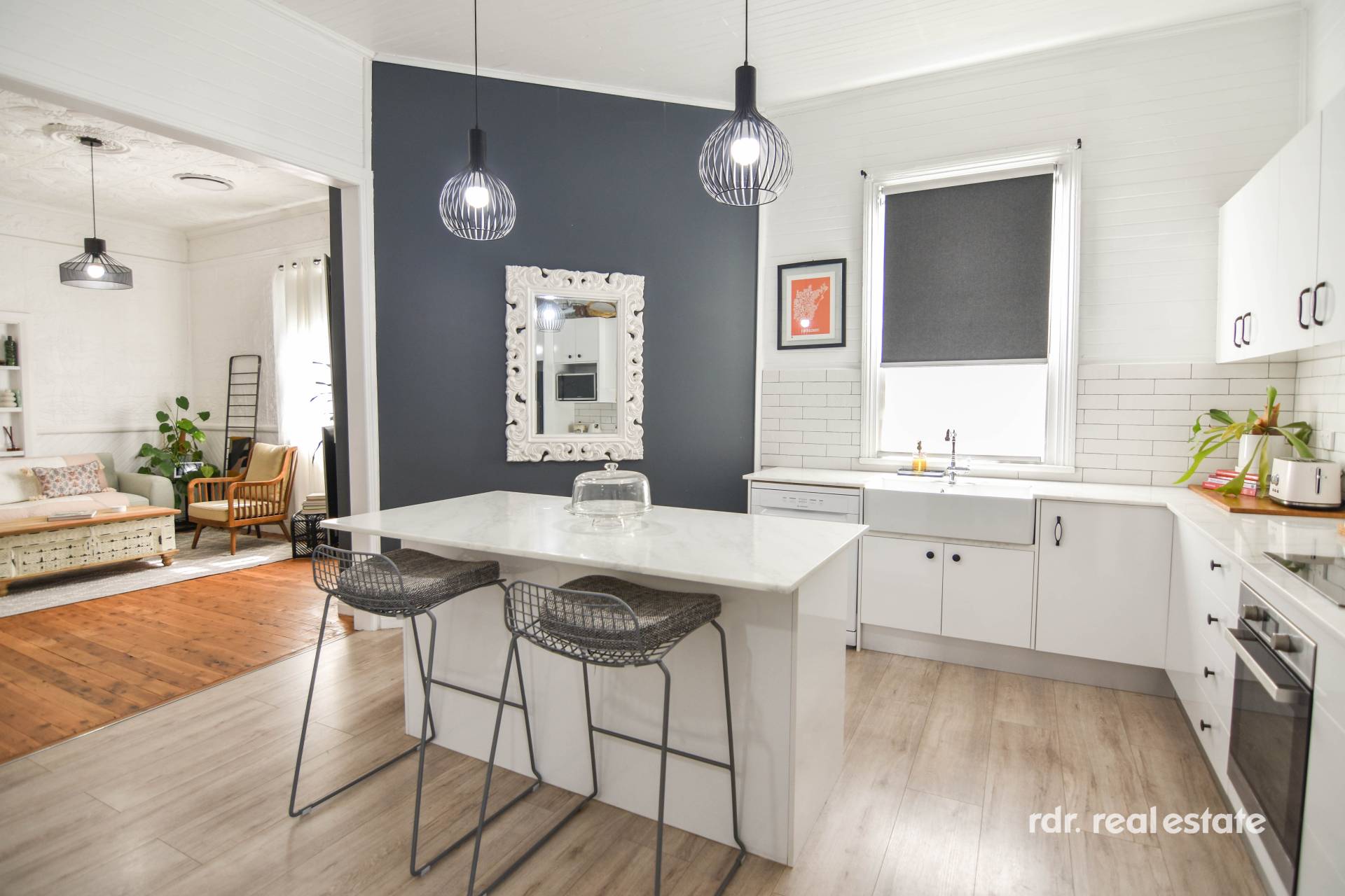 From the moment you arrive, the classic Federation façade and inviting wraparound verandah creates a warm and welcoming first impression. Beyond its charming façade, the home unfolds into a generous and versatile floorplan designed for relaxed modern living. Period details, such as soaring pressed metal ceilings, polished timber floors, bay windows and a wide L-shaped hallway that immediately showcases the home’s timeless elegance.
