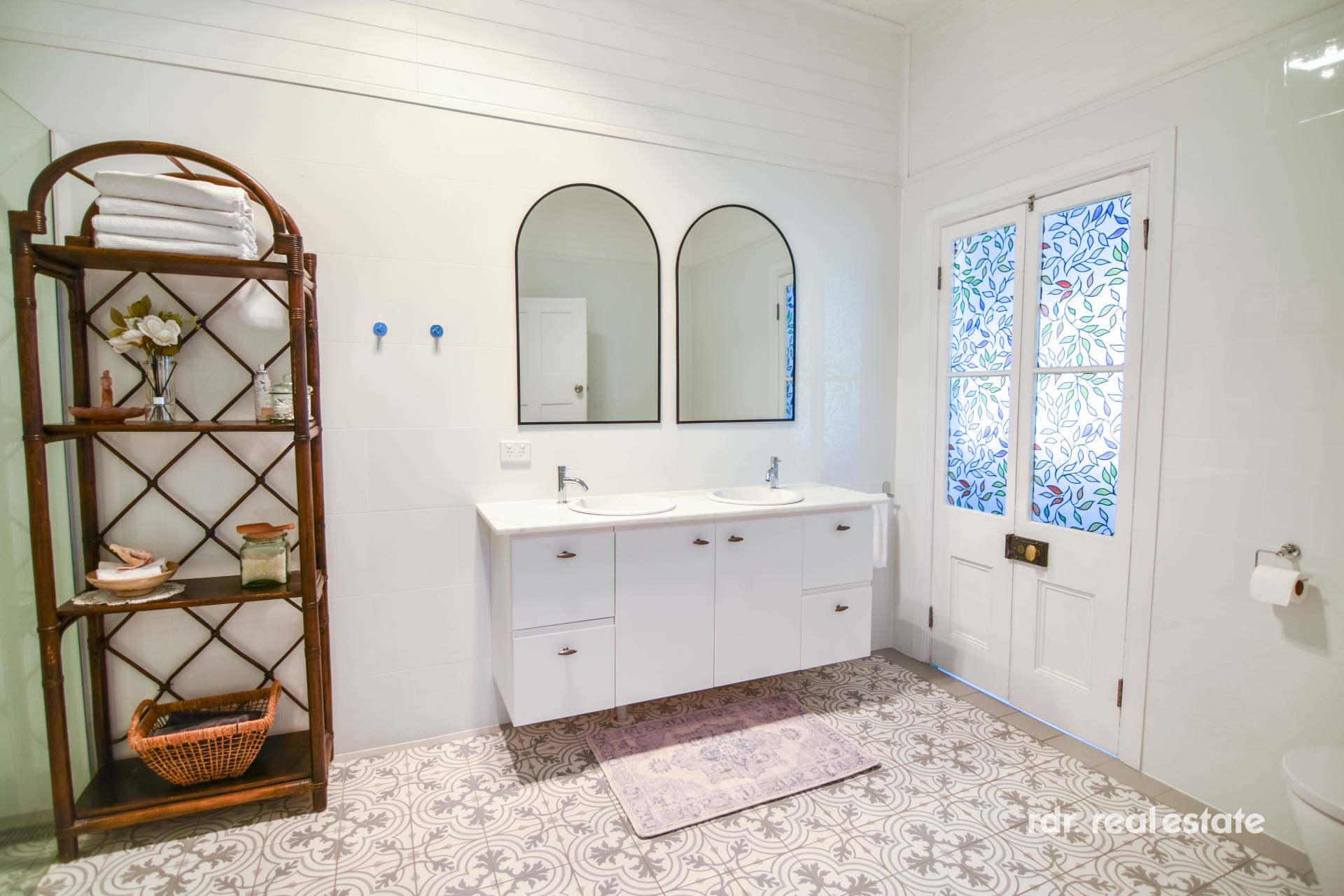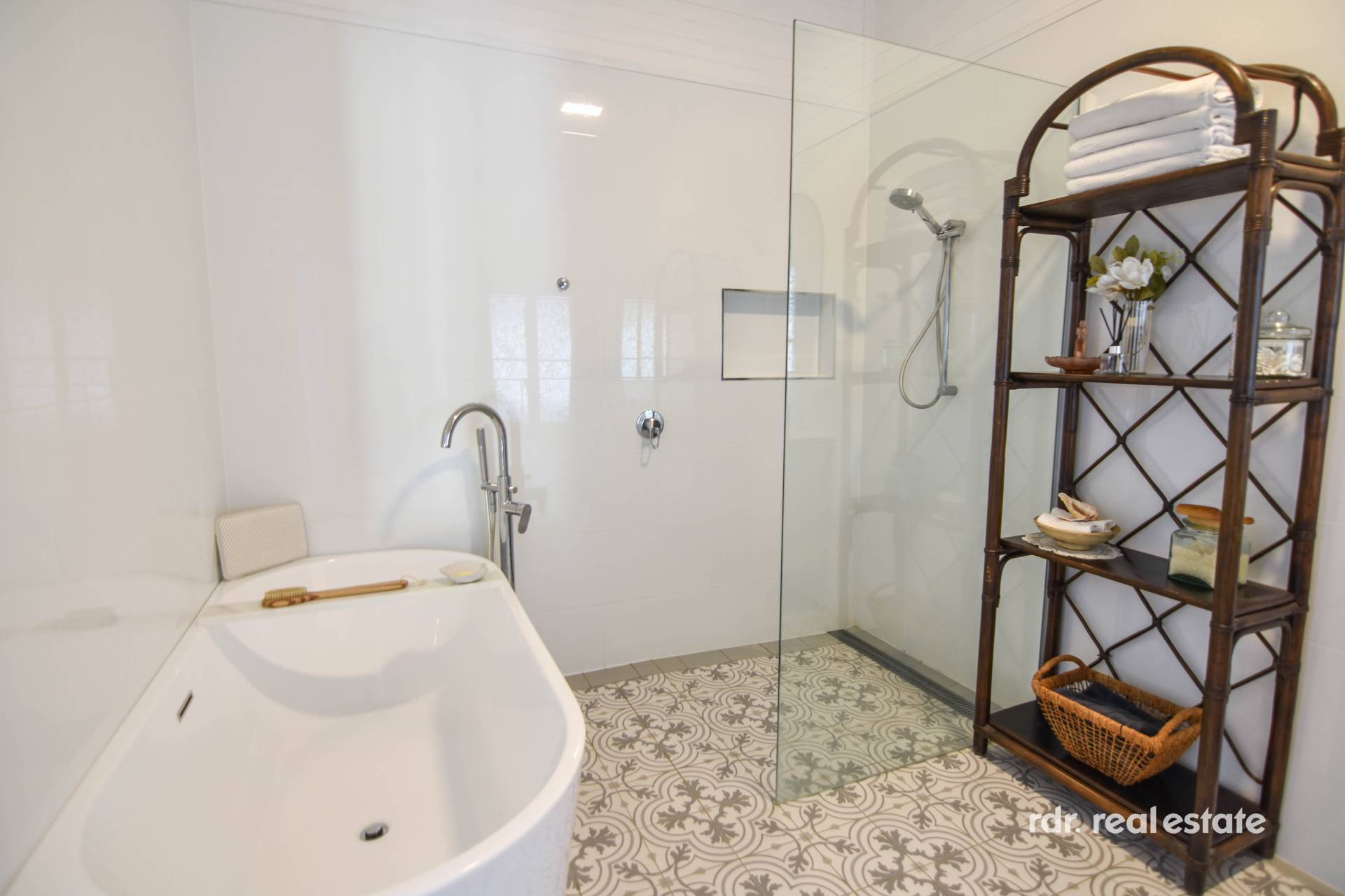 The spacious family bathroom provides a true sanctuary, showcasing an elegant eggshell bathtub, generous walk-in shower, double marble-top vanity and toilet. A second bathroom and internal laundry add further everyday practicality.