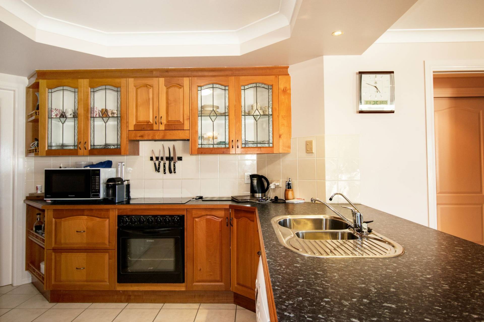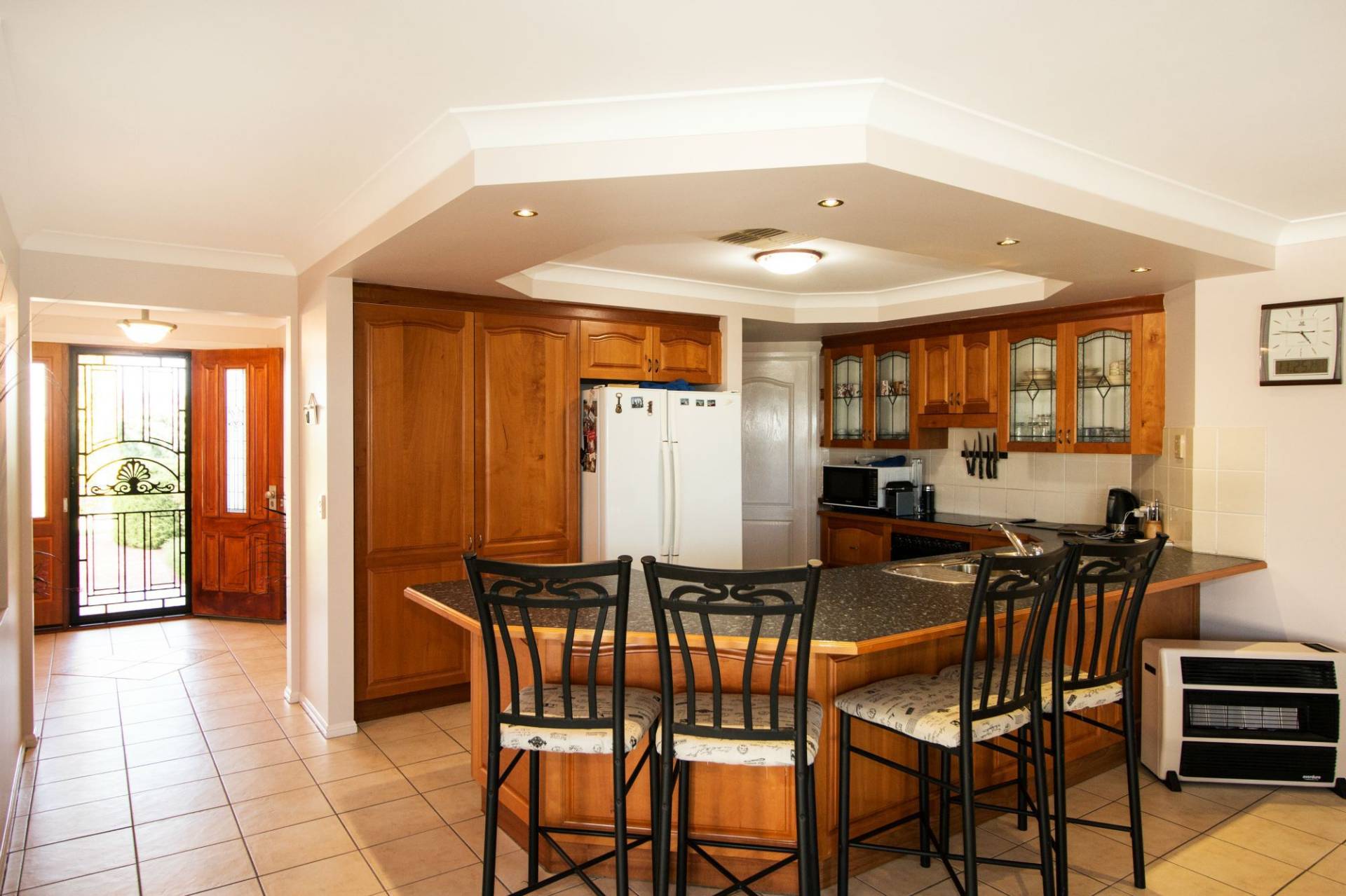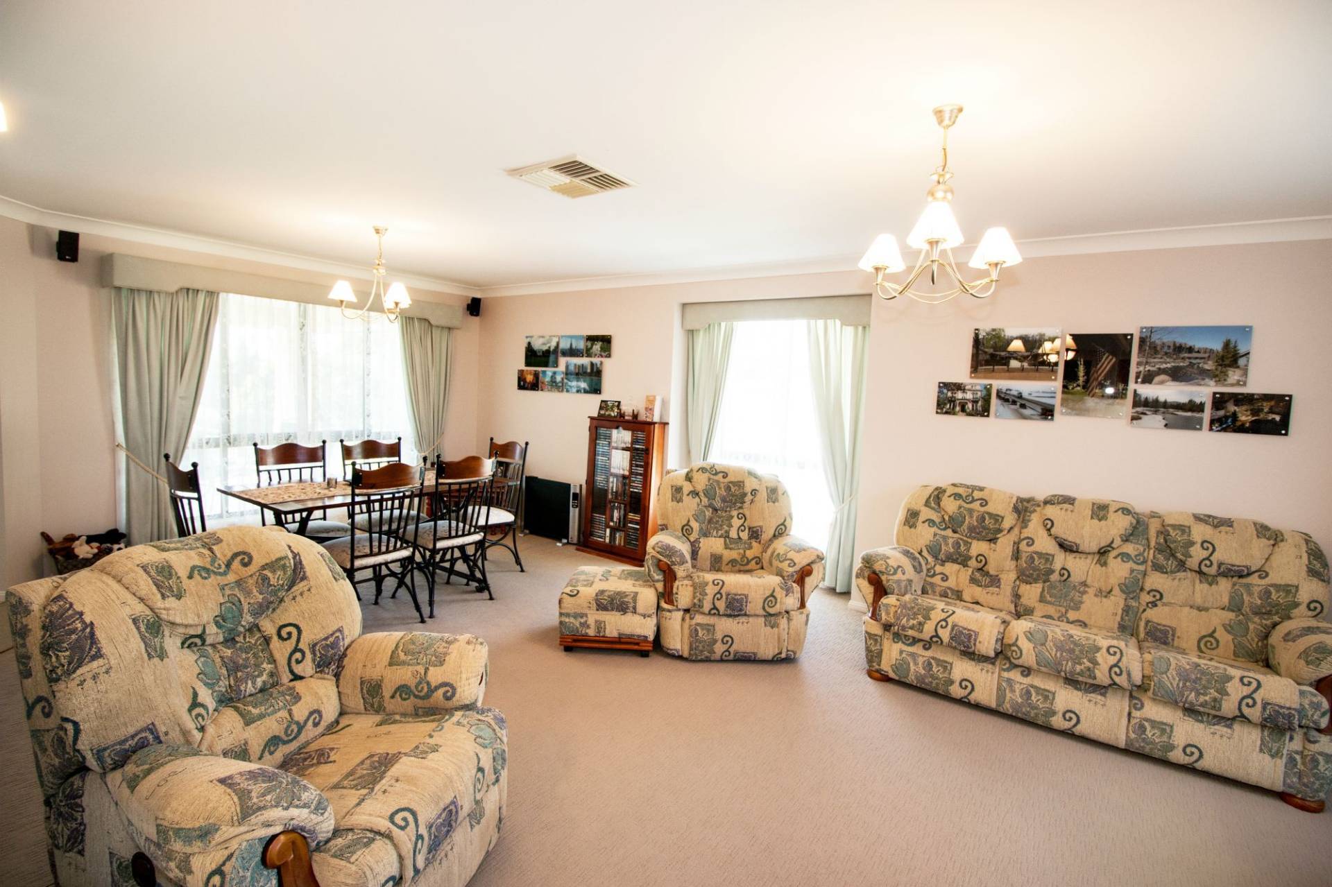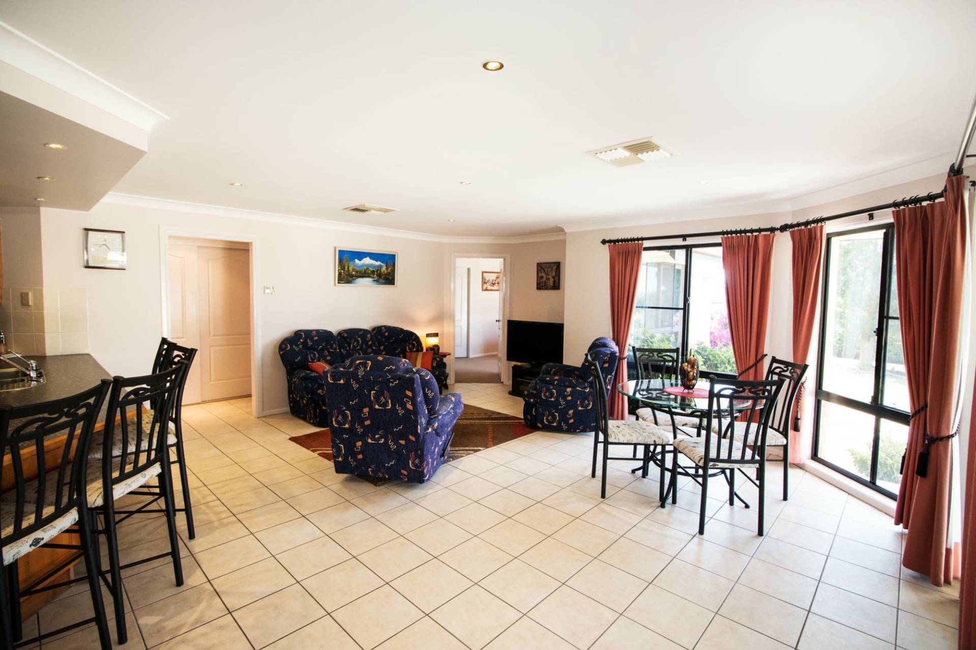 Spacious combined lounge & dining area complete with quality carpet, custom made curtains & north easterly rural views.