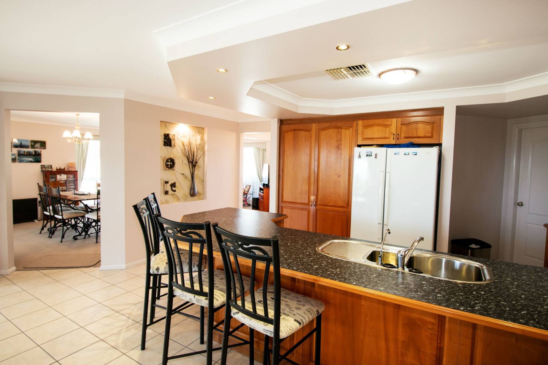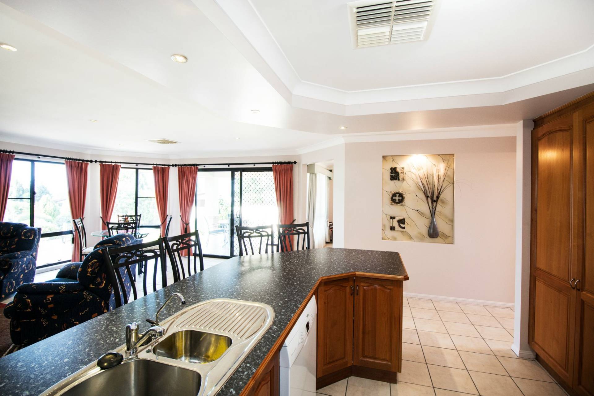 This home boasts a fantastic entertainers kitchen, with quality appliances, solid myrtle timber cupboards, pantry & down lights. The tiled kitchen is open to the homes second dining & family room, with impressive views and lots of natural light, this is a great space.