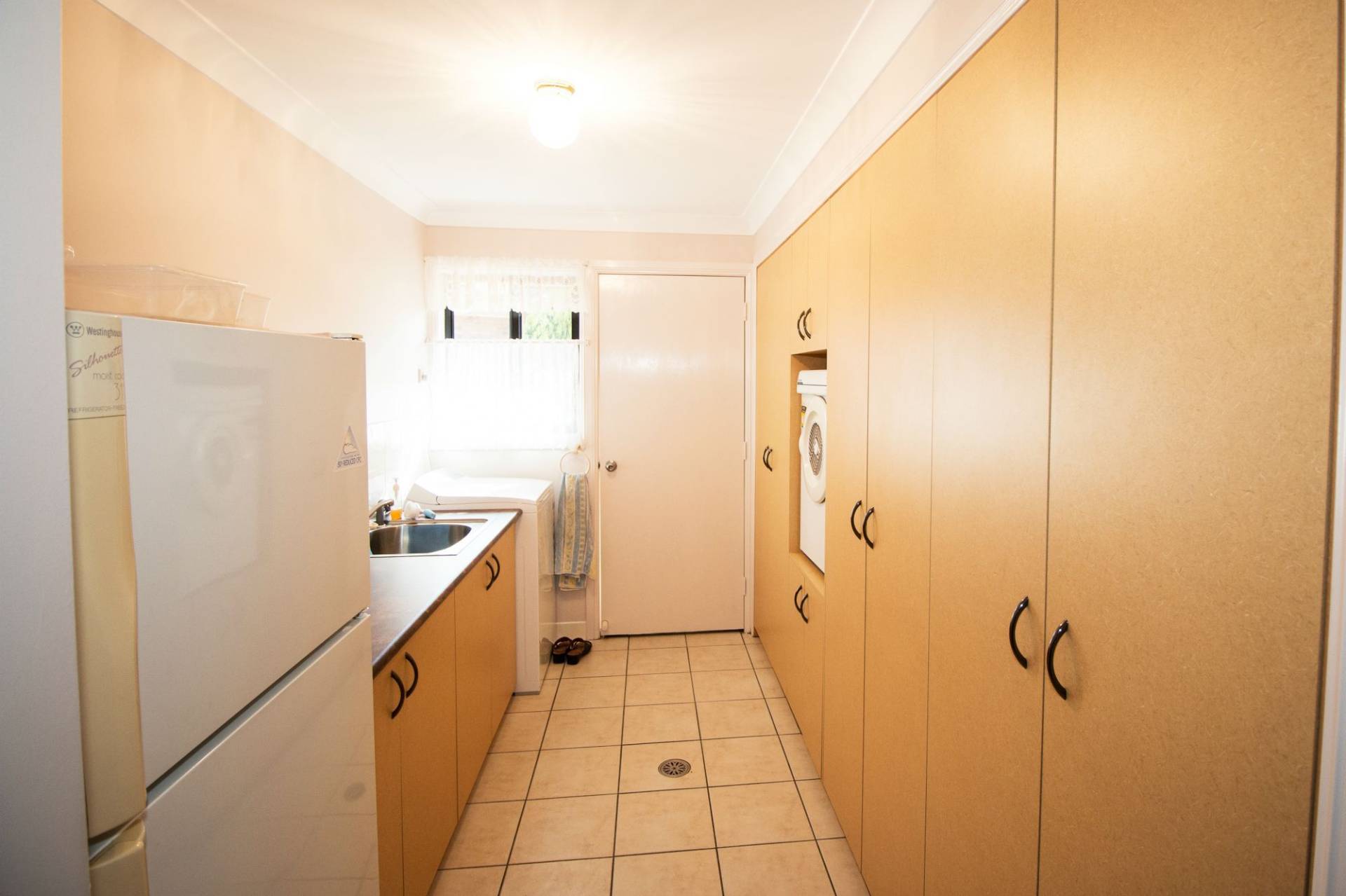 Large tiled main bathroom with shower, vanity and toilet. Large laundry, with an abundance of storage space. Laundry has direct access outside to the clothesline. Two linen cupboards.
