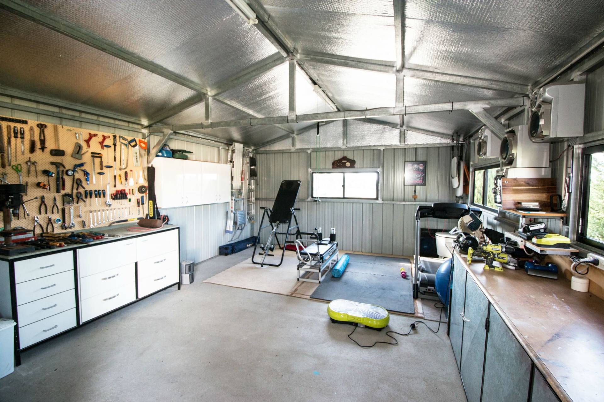 9.3m x 4.7m detached workshop with concrete floor, power, lighting & water connected.