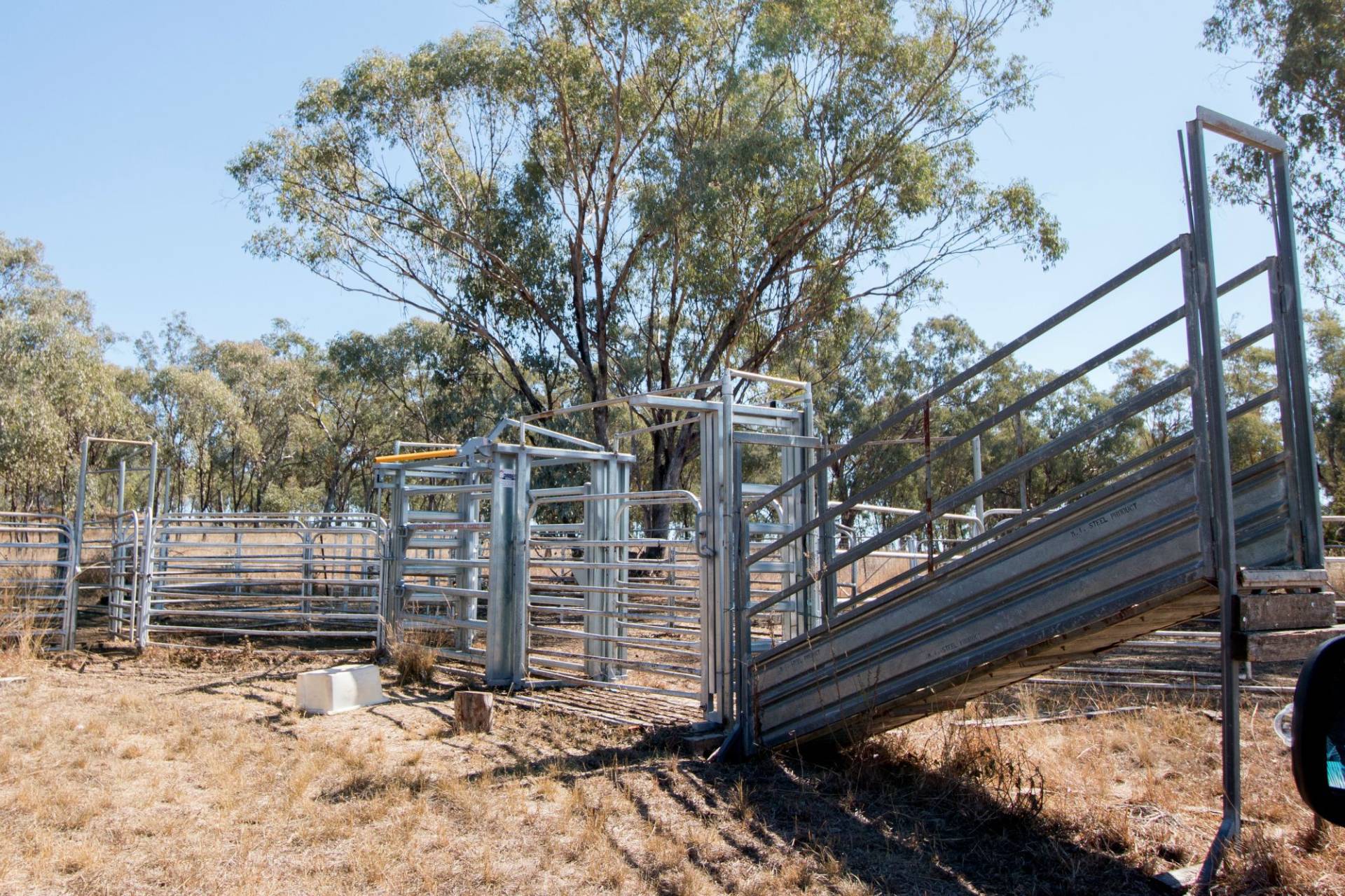 STOCK YARDS: Steel panel cattle yards with crush and loading ramp. Small set of sheep yards.