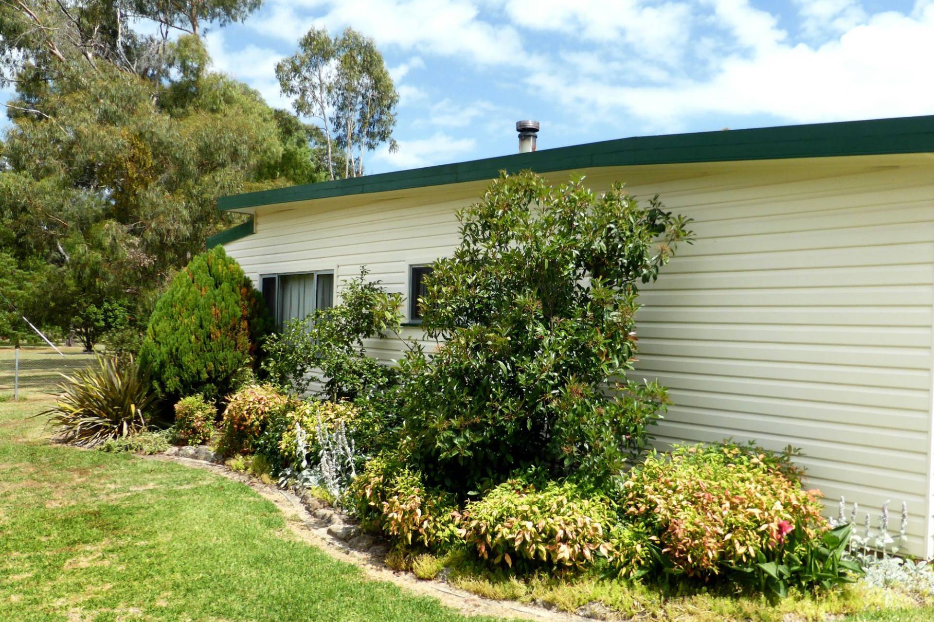 IMPROVEMENTS: Extremely well presented weatherboard 4 bedroom home. Large family room, separate dining room area, modernised all electric kitchen, tiled bathroom, laundry, 2 toilets and enclosed back verandah. Garage, 2 rain water tanks, pressure system from dam to toilets, pressure system from tank to house. Well established gardens. 2nd Garage, Wood shed.
