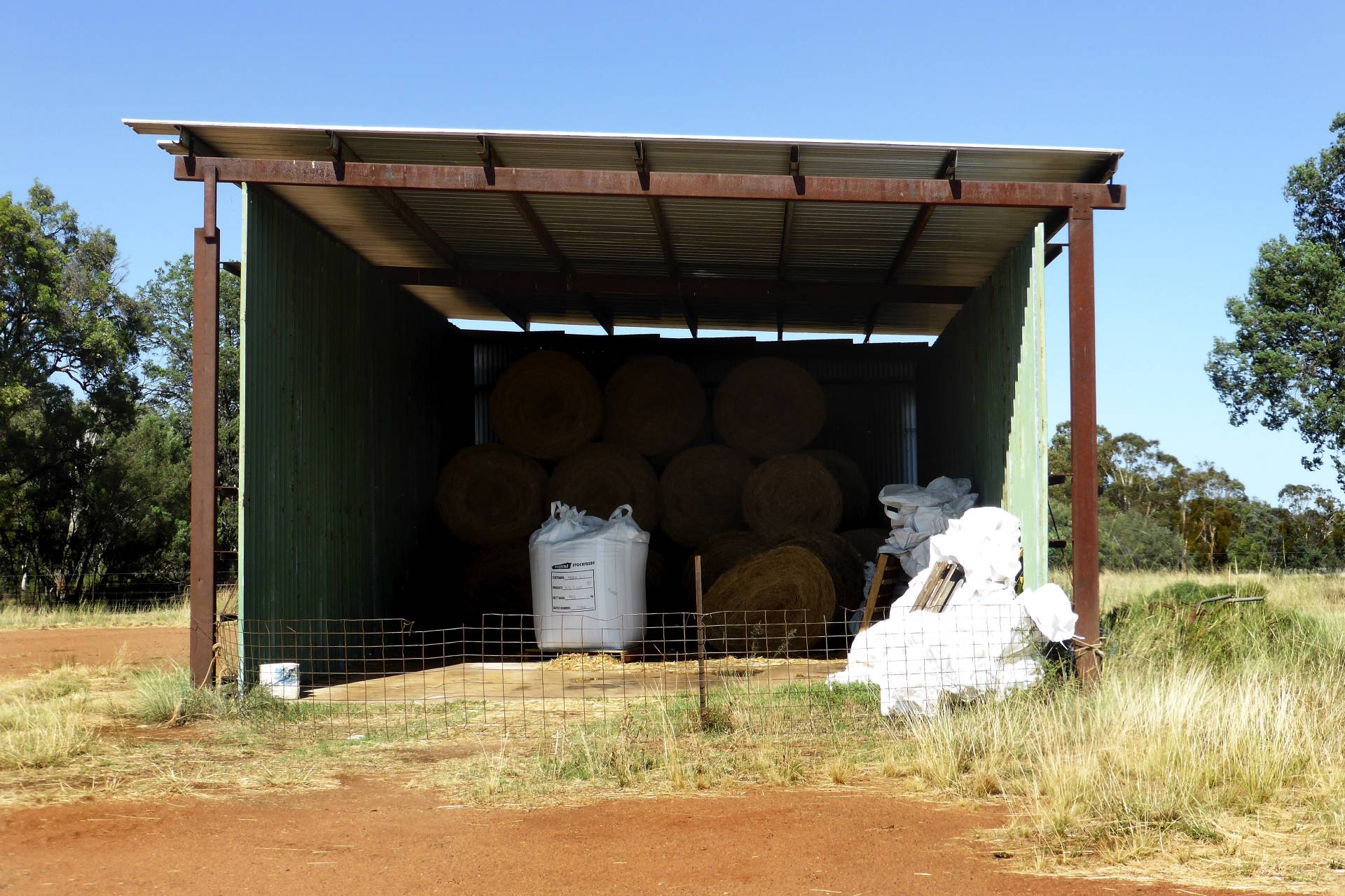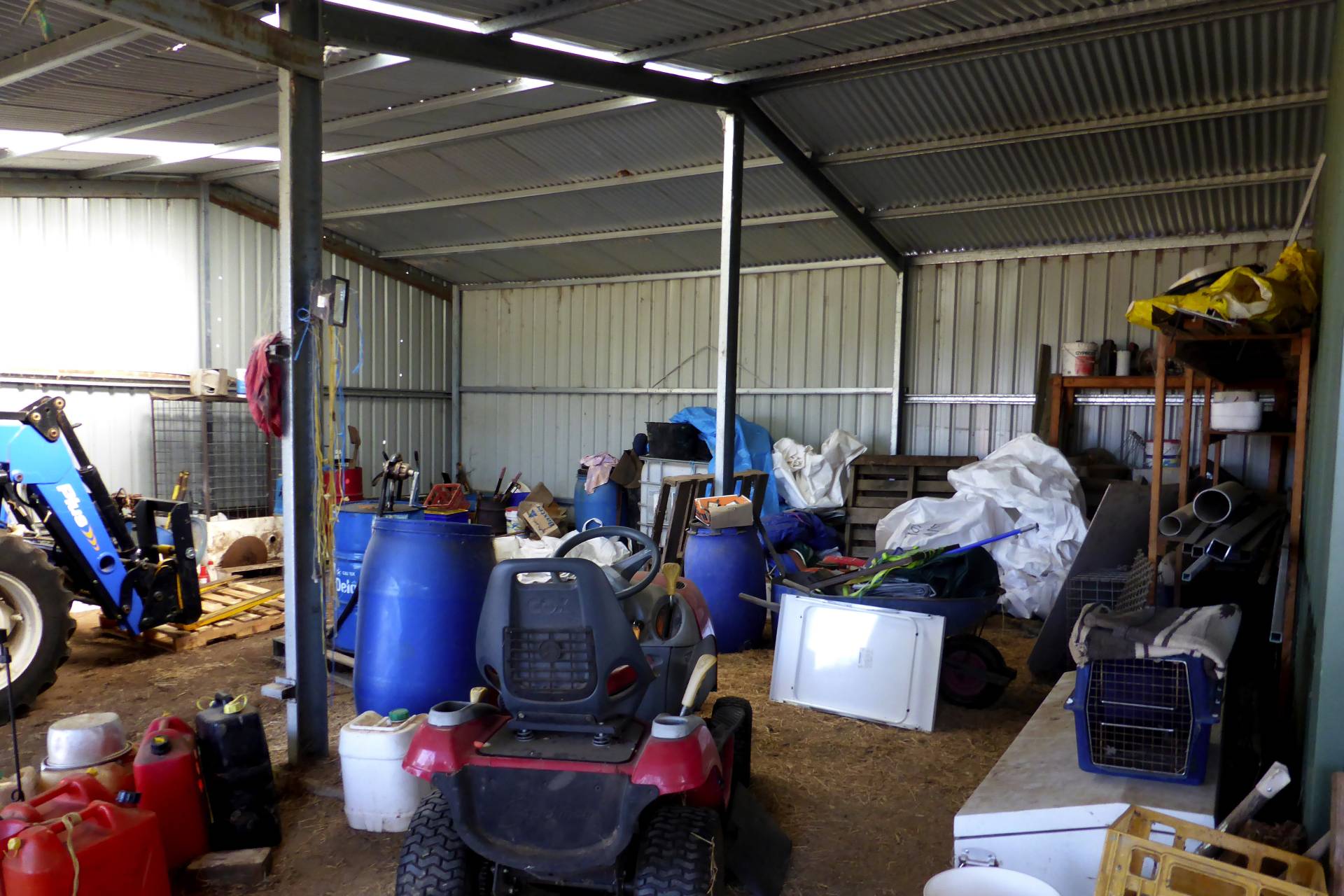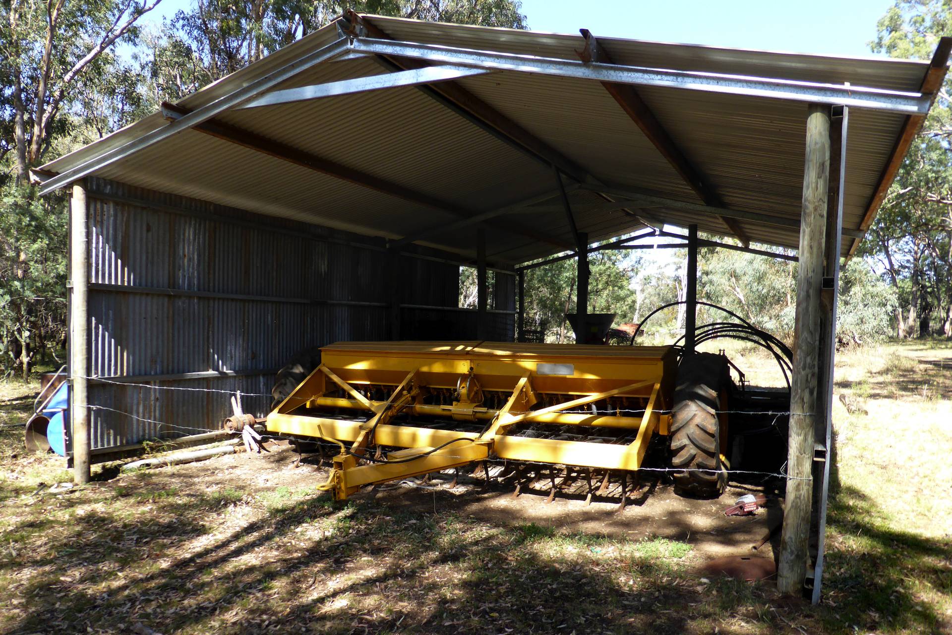 MACHINERY SHEDS:  4 Bay machinery shed with raised board, 2 bay feed shed, 4 bay shed with 2 bay lock-up power.